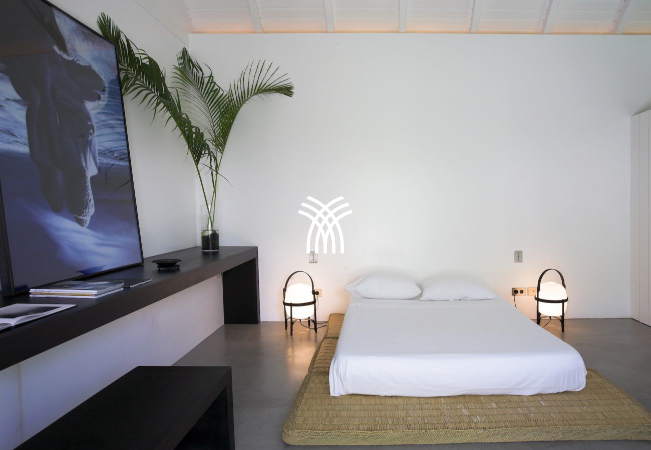 Conçue pour accueillir confortablement 7 couples ou un grand groupe d’amis, la villa séduit par ses proportions généreuses et son atmosphère raffinée. Le salon spacieux et baigné de lumière invite à des moments conviviaux, tandis qu’une salle TV climatisée permet de profiter d’instants plus intimes dans un confort absolu. La cuisine moderne et l’espace repas extérieur sous terrasse couverte offrent un cadre idéal pour savourer des repas en toute convivialité, face à l’atmosphère paisible de l’île.