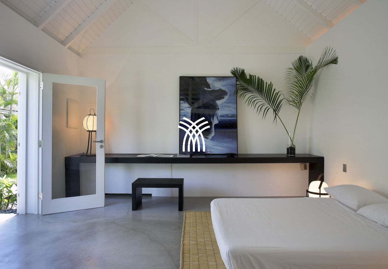 Nichée dans le prestigieux Domaine privé du Levant à Petit Cul-de-Sac, la Villa Lagon Vert illustre l’art de la location de villa luxe à Saint-Barth. Récemment rénovée, cette propriété d’exception dispose désormais de 7 suites élégantes, chacune dotée de hauts plafonds, de larges ouvertures laissant entrer une abondance de lumière naturelle, d’une salle de bain privative et de lits king-size modulables en lits jumeaux selon vos besoins.