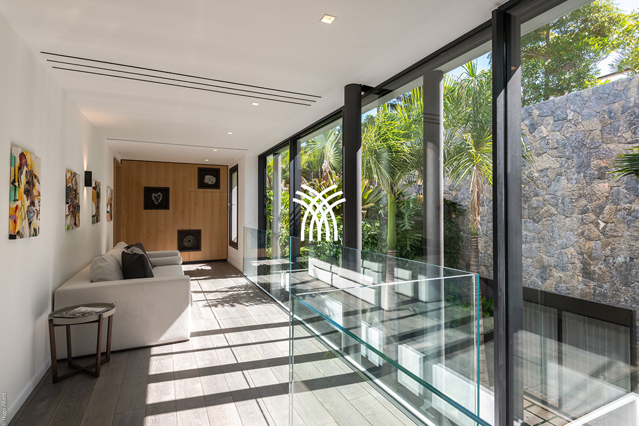 La propriété est composée de la villa principale, moderne et contemporaine, et de deux bungalows indépendants de style Balinais, situés dans le jardin tropical