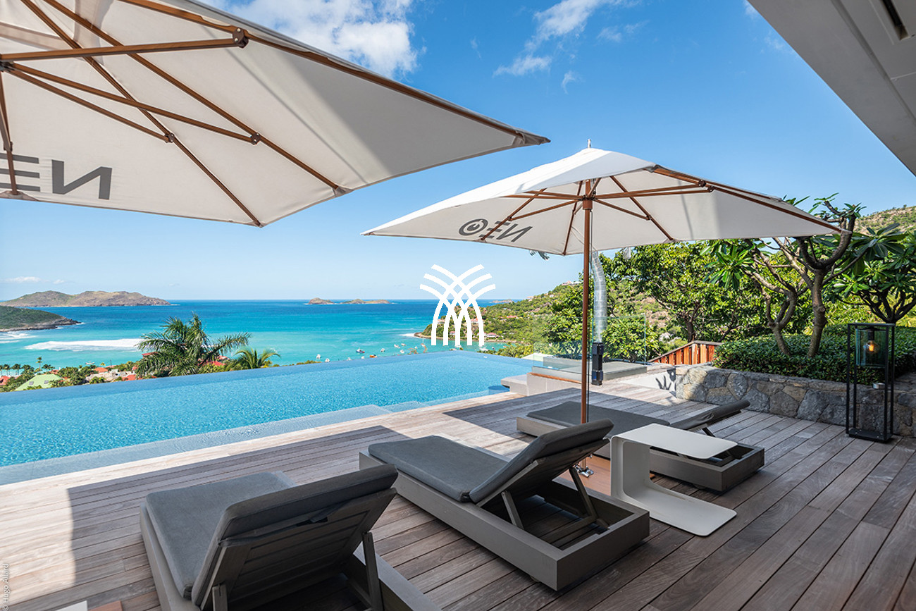 La Villa Néo incarne le summum du luxe et de la modernité à Saint-Barthélemy. Située dans le quartier exclusif de Saint-Jean, cette villa exceptionnelle offre une vue panoramique spectaculaire sur la mer des Caraïbes et les îles environnantes. Son architecture contemporaine, subtilement inspirée du charme caribéen, crée un univers raffiné où design, confort et nature s’harmonisent parfaitement.