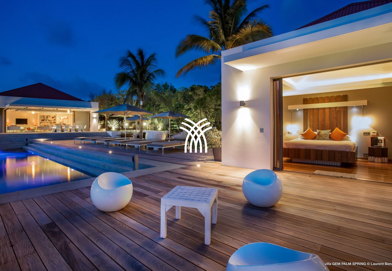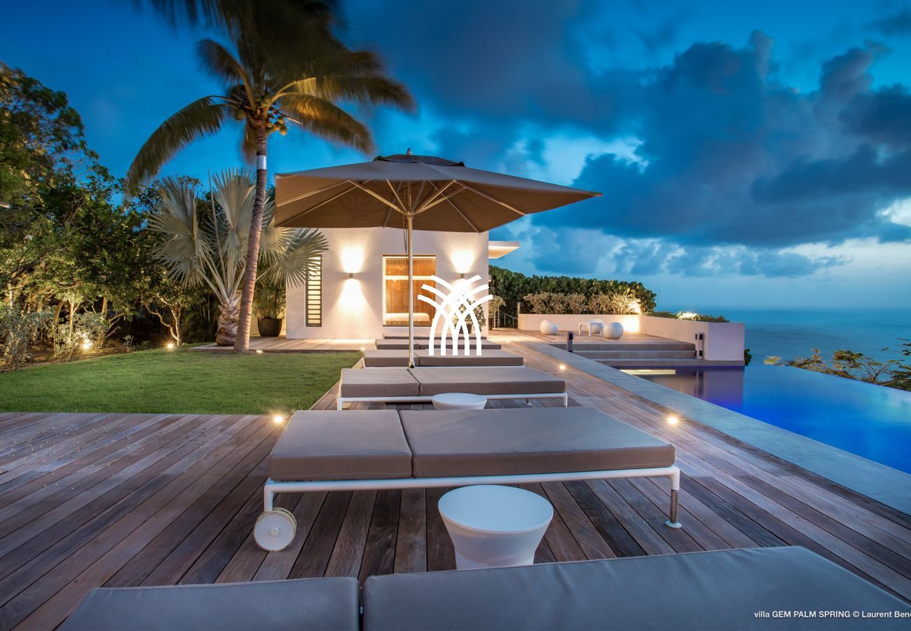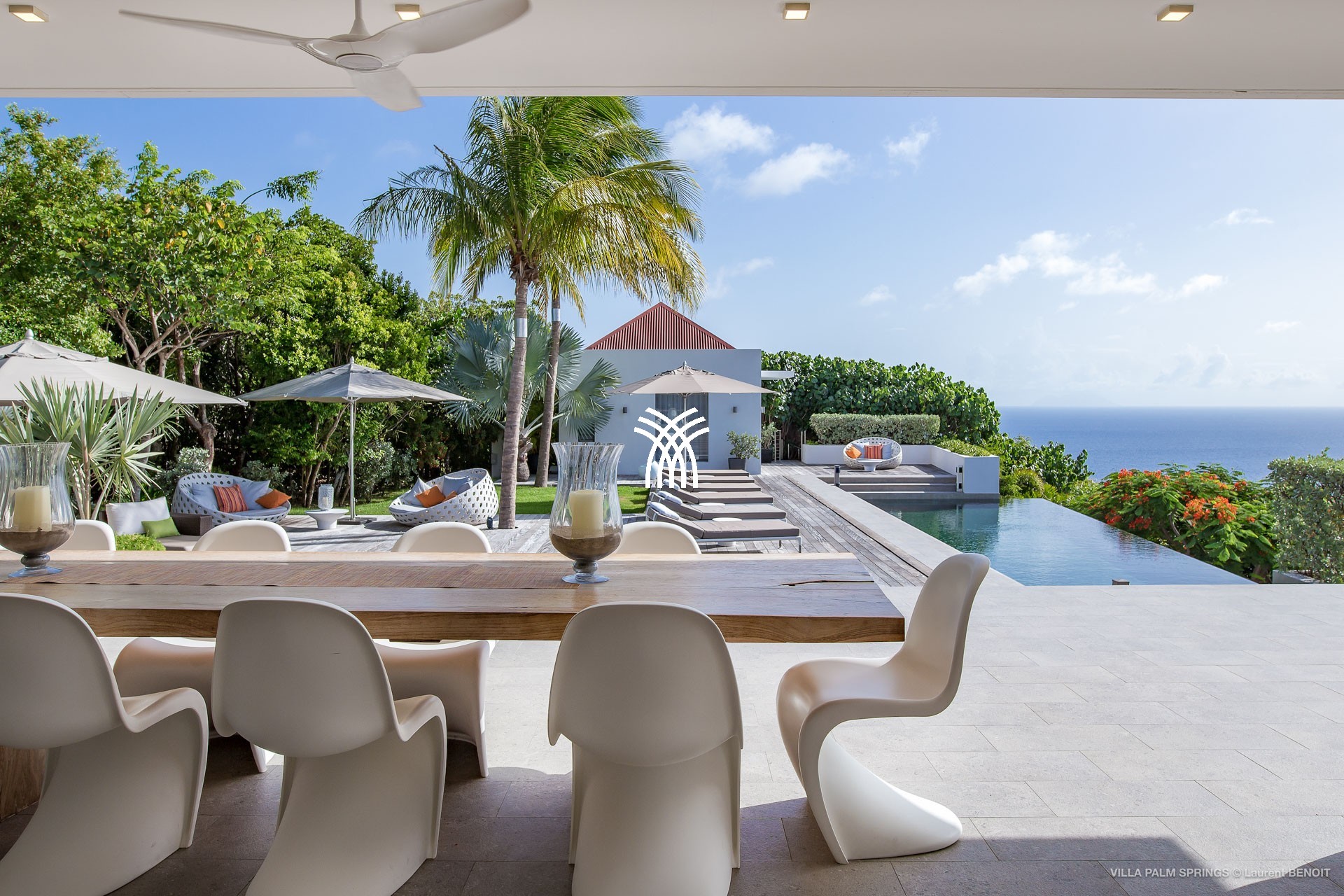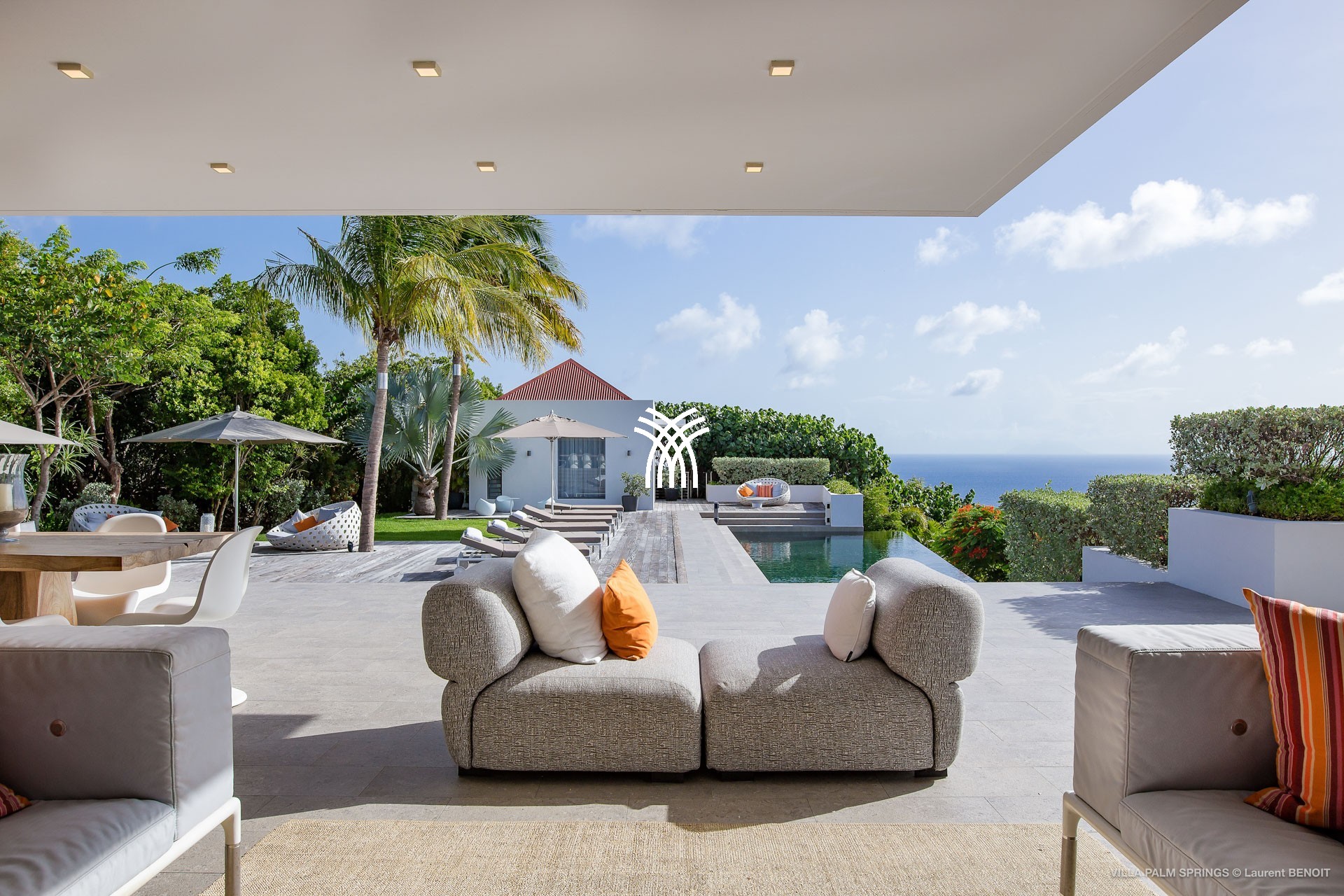 Idéalement située à Gouverneur, la Villa Palm Springs St Barth offre une vue spectaculaire sur le coucher de soleil et l'océan.
