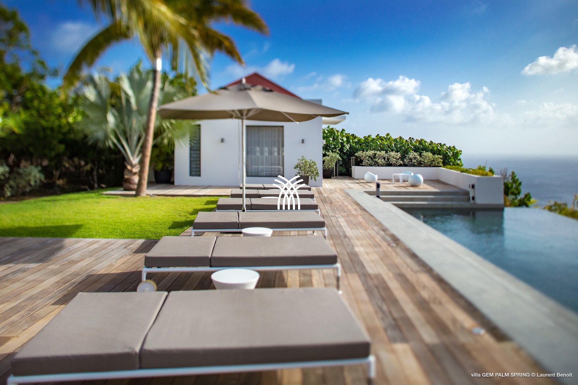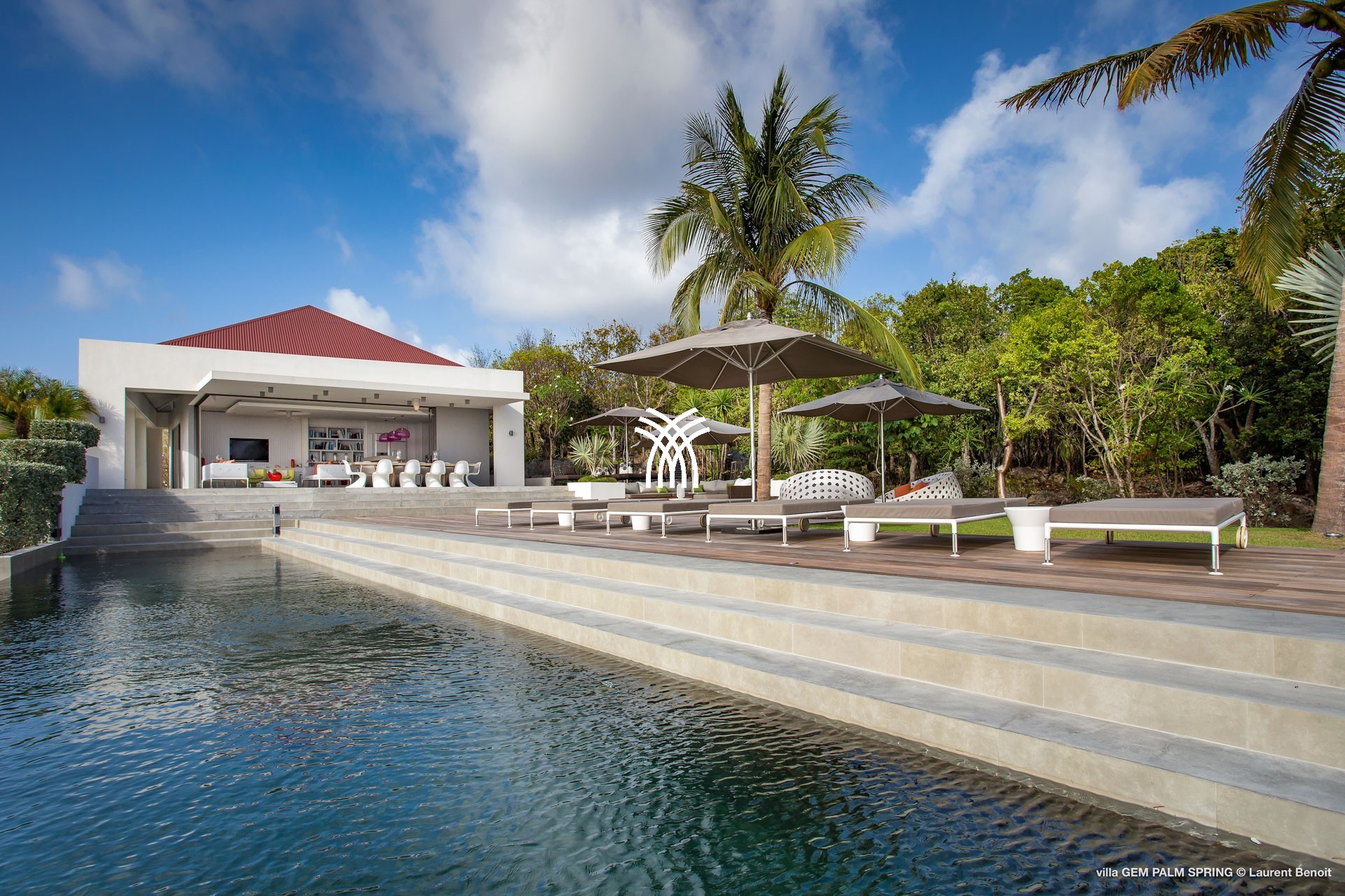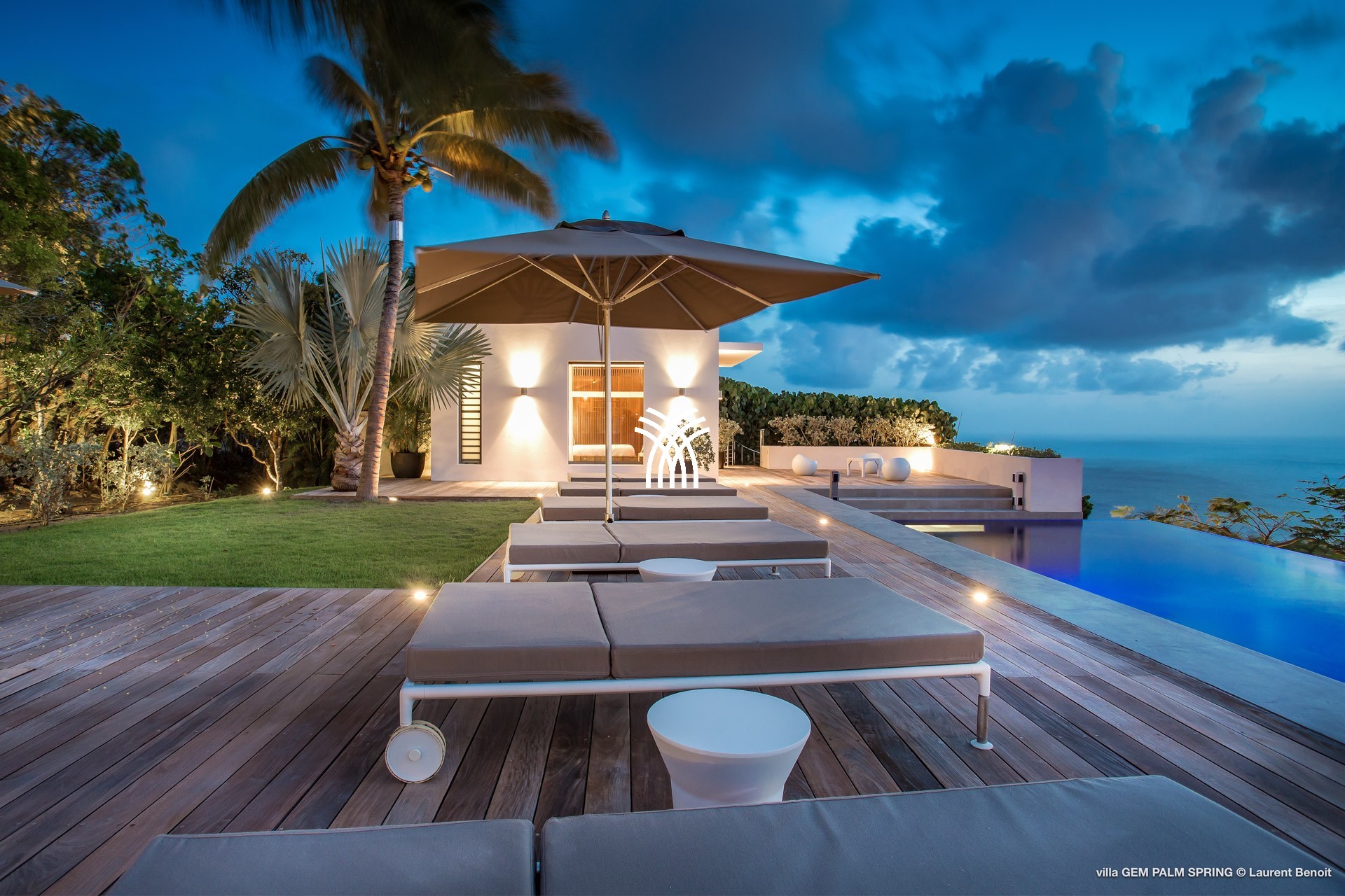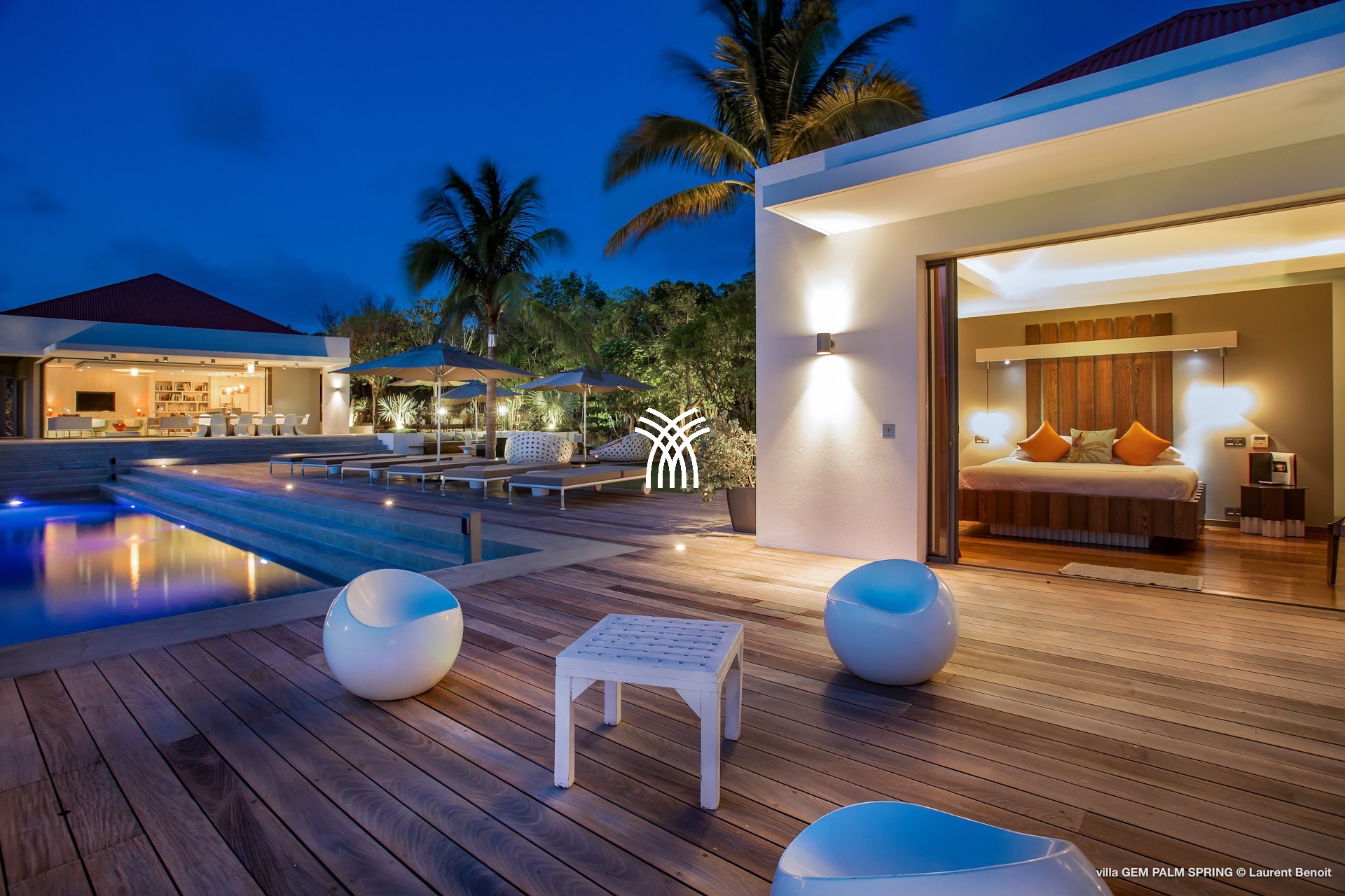 Idéalement située à Gouverneur, la Villa Palm Springs St Barth offre une vue spectaculaire sur le coucher de soleil et l'océan.