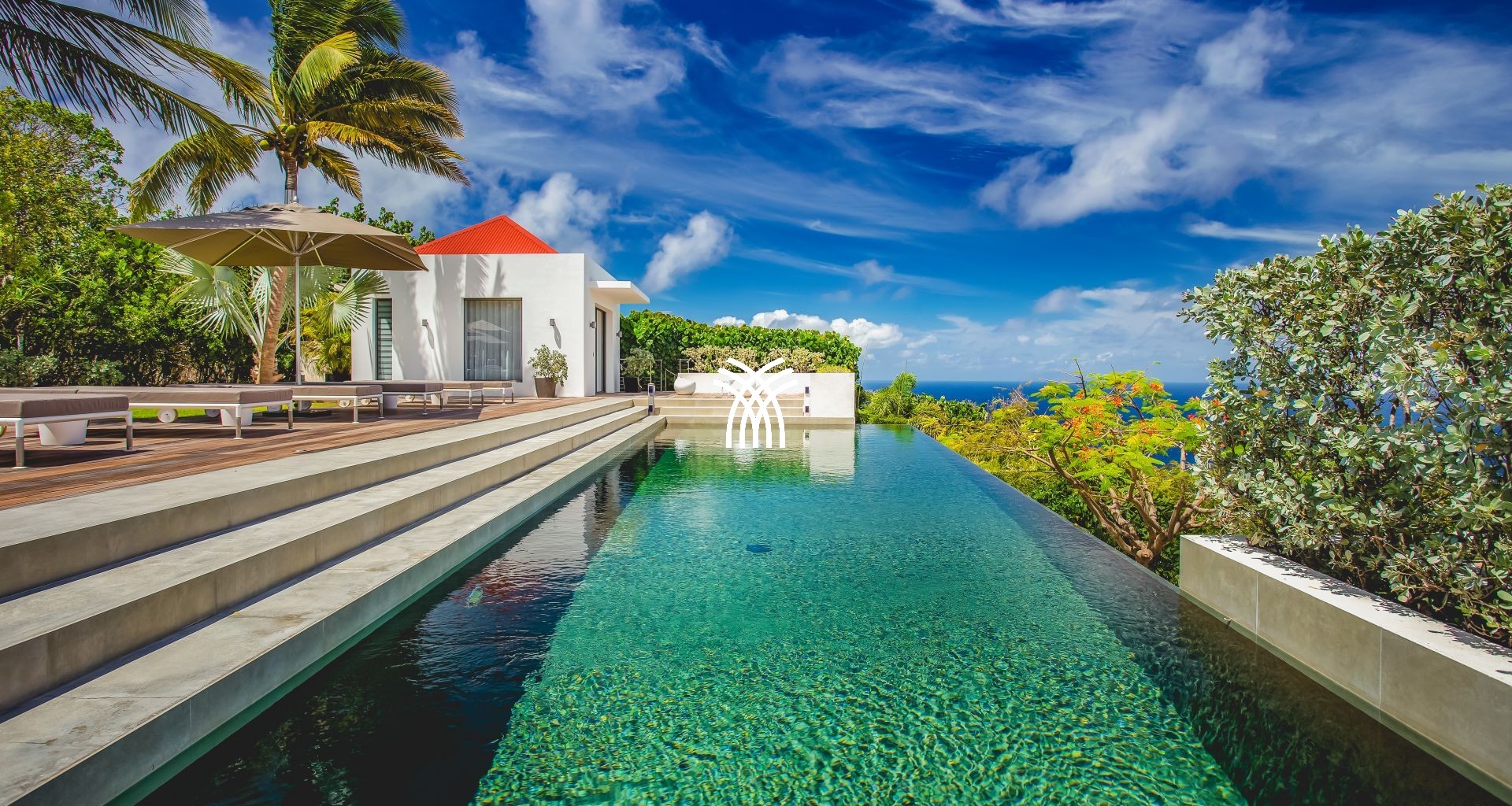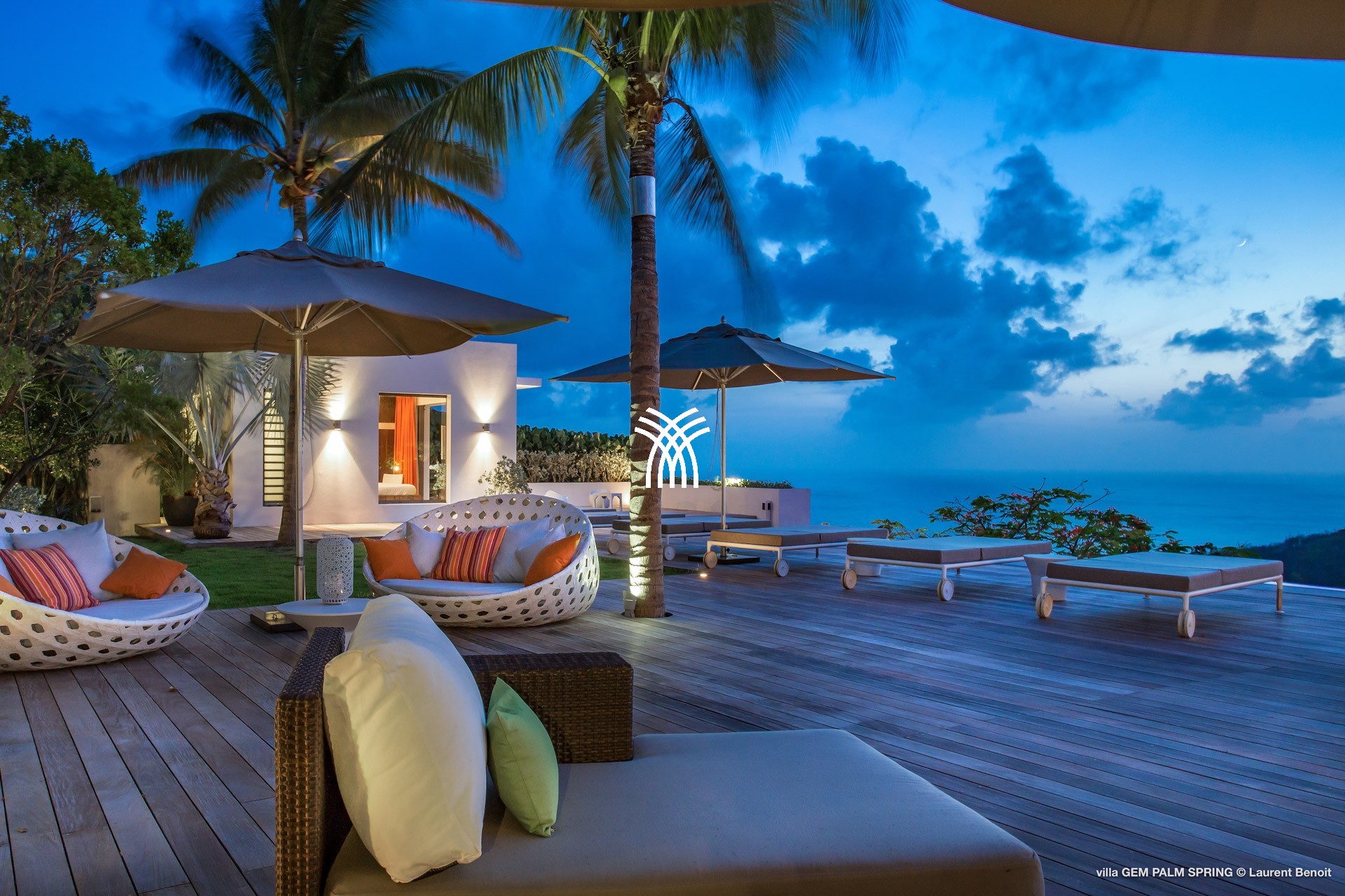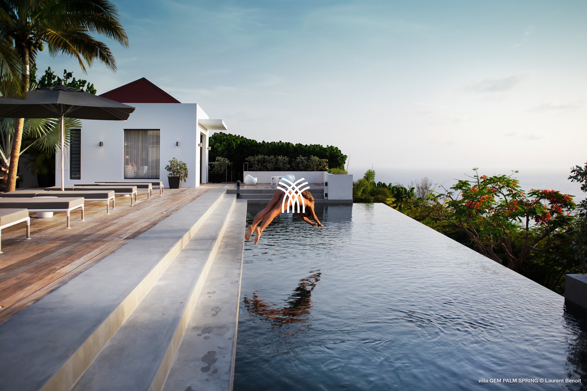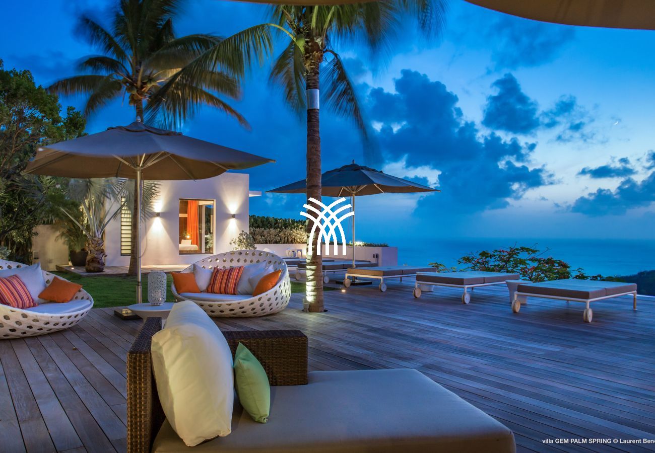 Idéalement située à Gouverneur, la Villa Palm Springs St Barth offre une vue spectaculaire sur le coucher de soleil et l'océan.