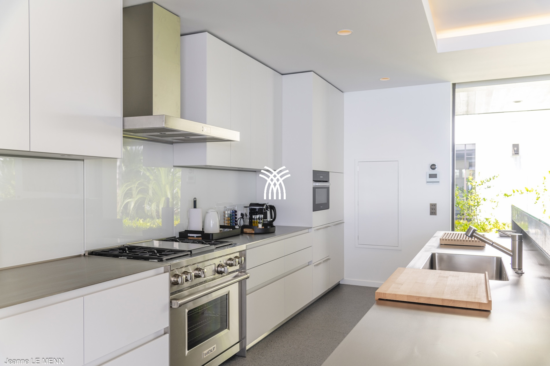 La cuisine entièrement équipée, au design élégant et fonctionnel, permet de préparer de délicieux repas dans un cadre convivial, ou de faire appel à un chef privé pour une expérience culinaire raffinée. À l’extérieur, la vaste terrasse se prolonge par une piscine chauffée scintillante, idéale pour se rafraîchir tout en profitant du panorama grandiose. Les espaces lounge et repas en plein air invitent à savourer l’instant dans une atmosphère paisible et luxueuse.