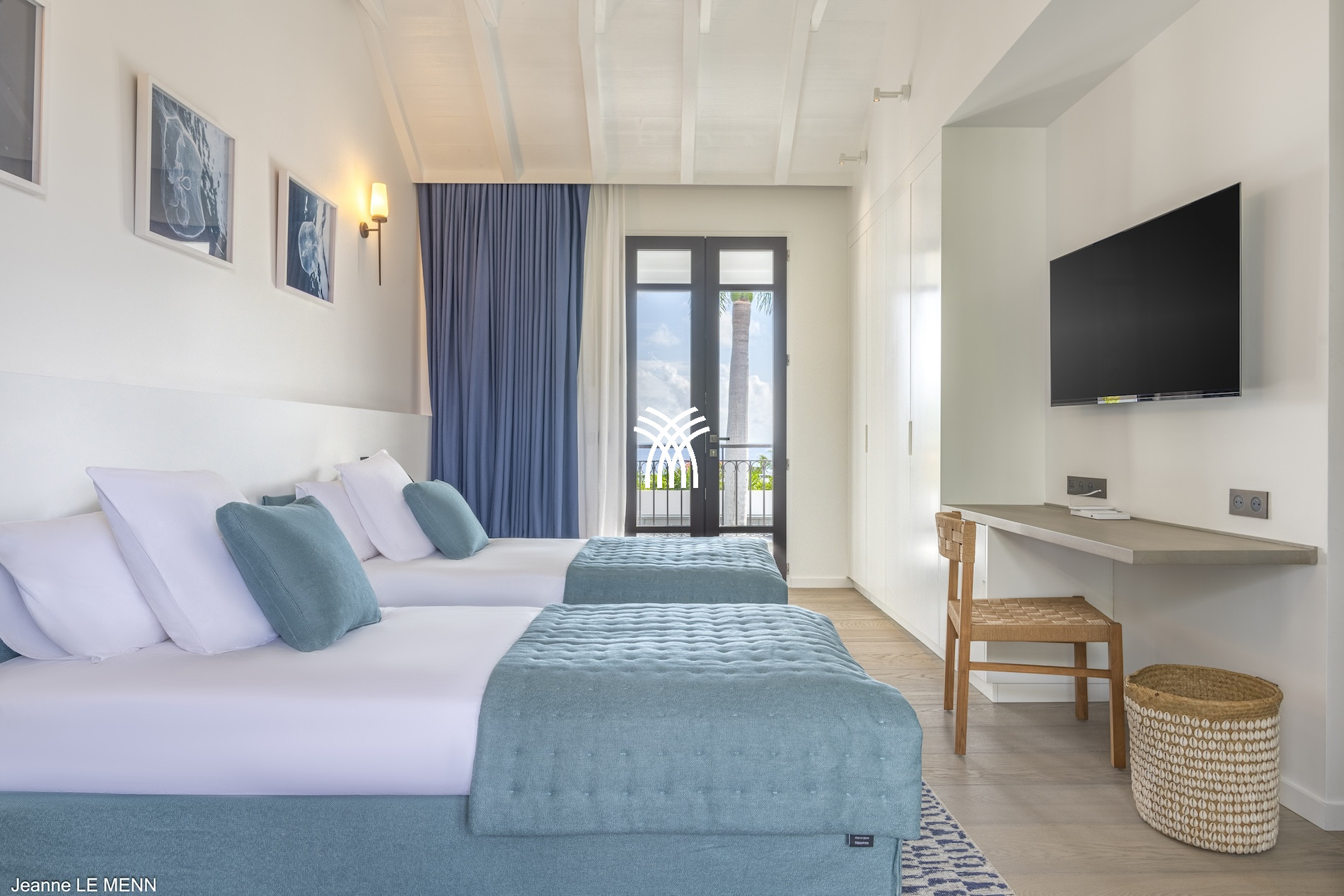 Avec ses six chambres spacieuses et ses six salles de bains attenantes, la Villa Blanc Bleu garantit un confort absolu et une parfaite intimité à ses hôtes. Chaque chambre est décorée avec goût, mêlant design contemporain et touches tropicales, et s’ouvre sur une terrasse ou un balcon, invitant à la contemplation de l’horizon azur. L’espace généreux de la villa permet d’accueillir aussi bien des familles que des groupes d’amis en quête d’un cadre exclusif et harmonieux.
