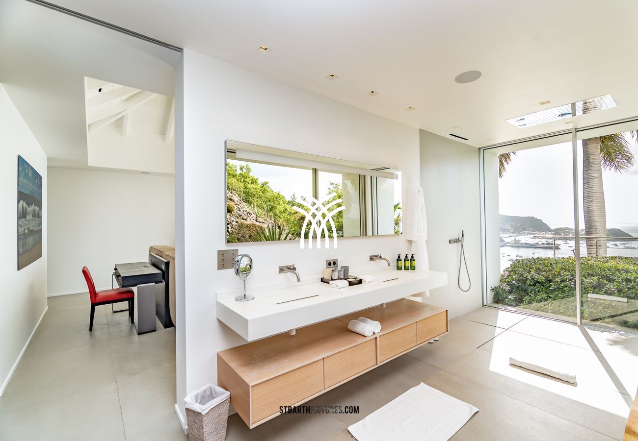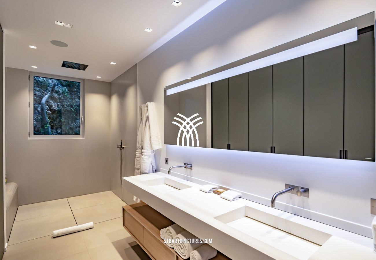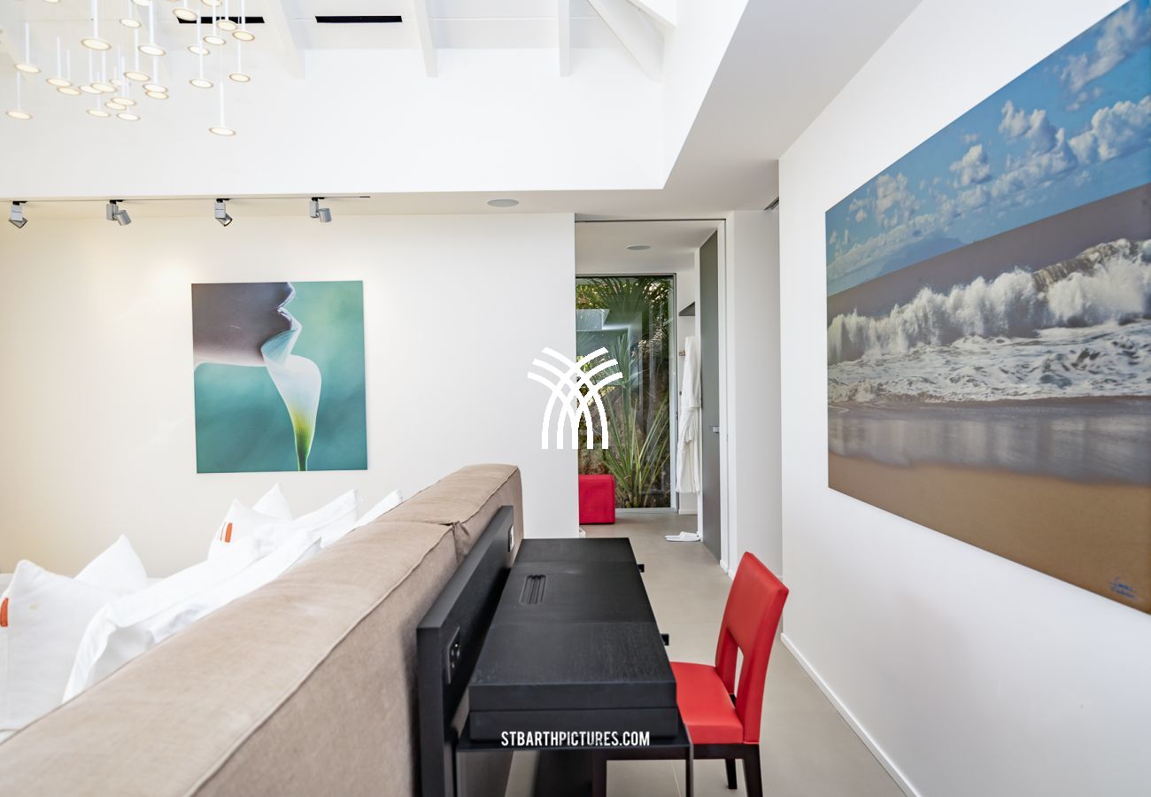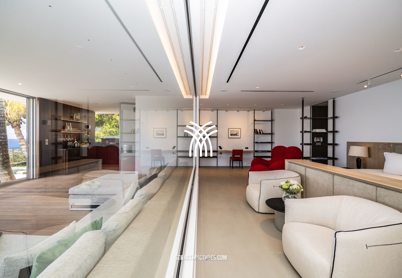 A seulement quelques minutes en voiture de la magnifique plage de Gouverneur et de Gustavia, la propriété de luxe est ultra moderne mixant parfaitement la technologie et les espaces de détente.