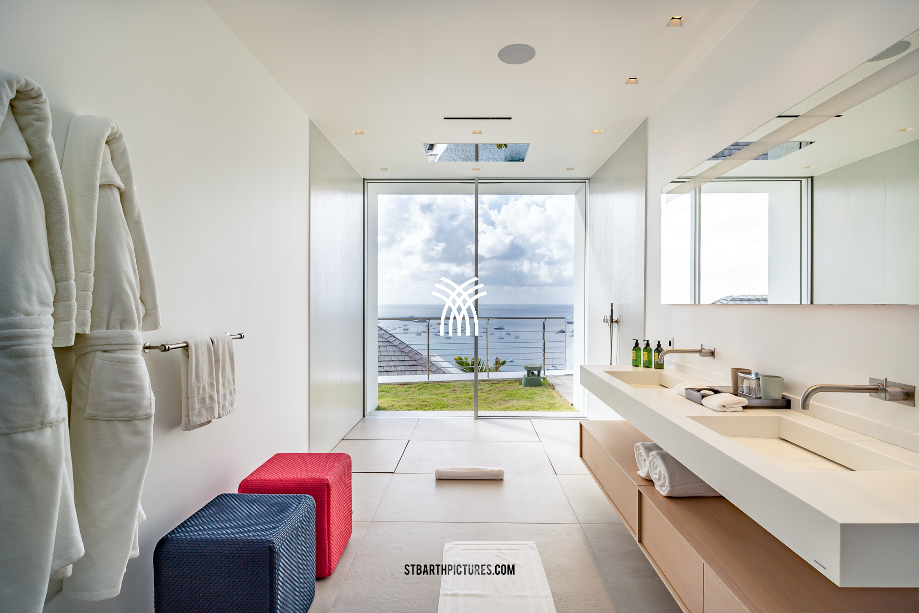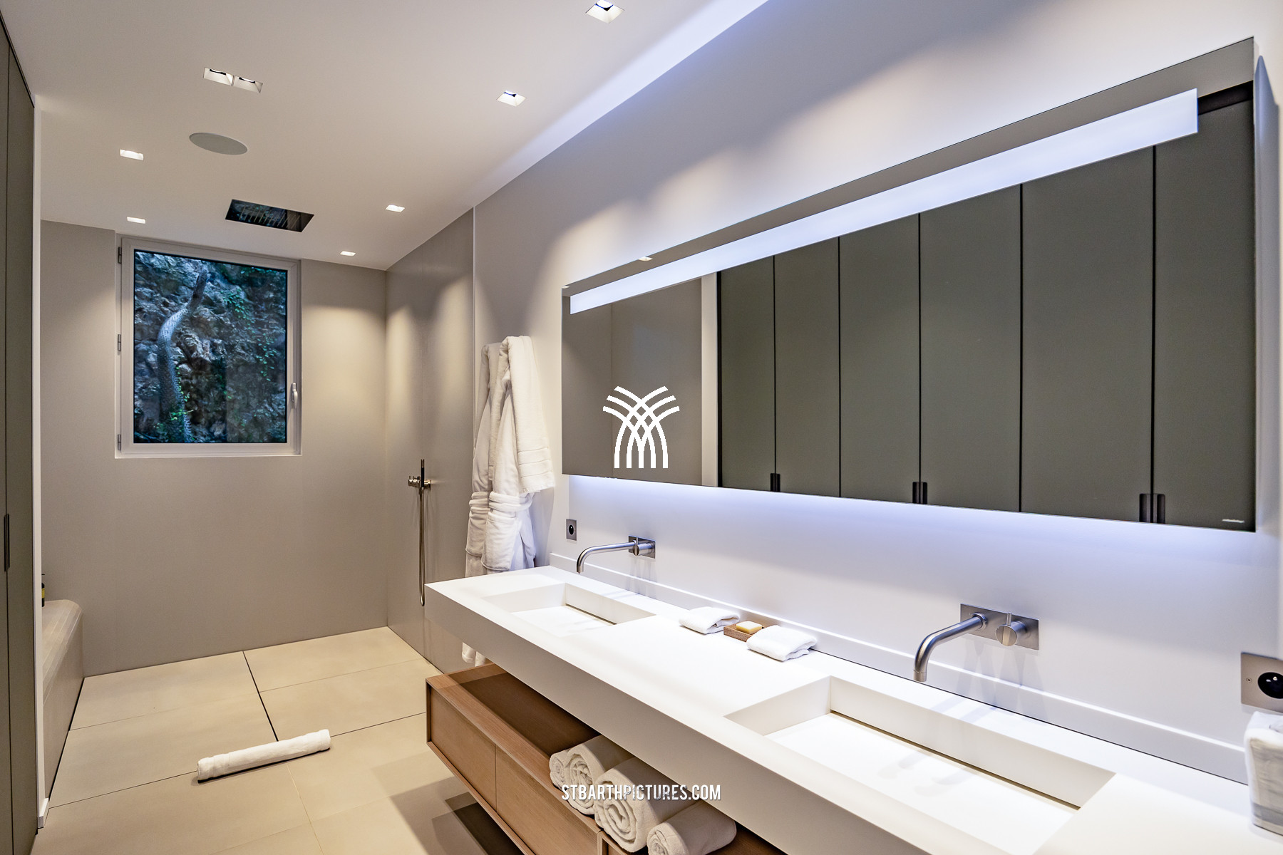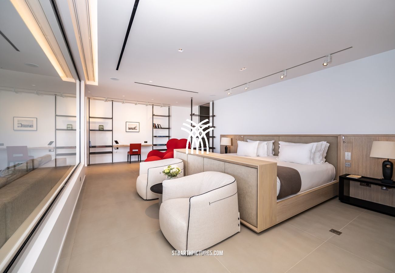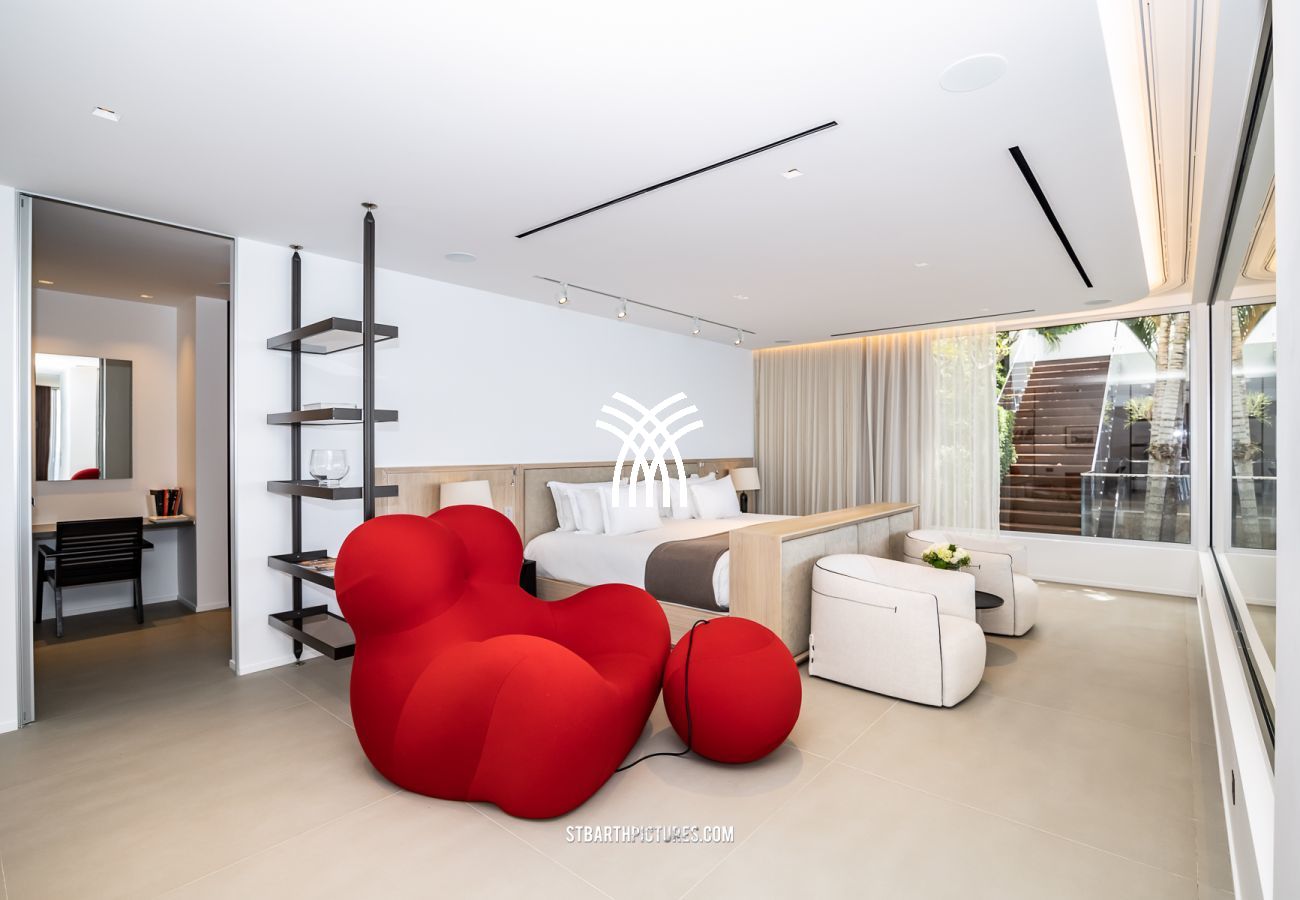 A seulement quelques minutes en voiture de la magnifique plage de Gouverneur et de Gustavia, la propriété de luxe est ultra moderne mixant parfaitement la technologie et les espaces de détente.