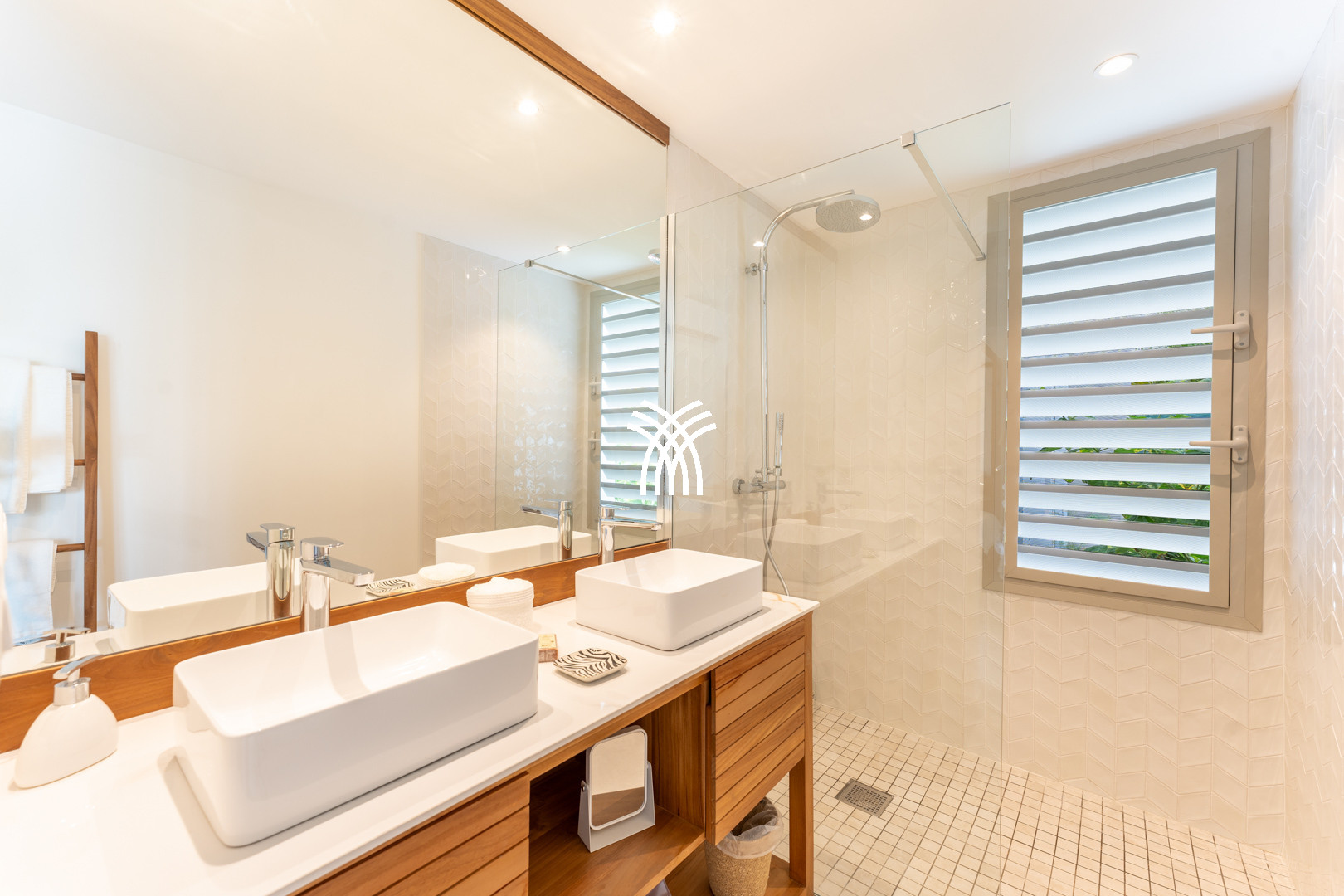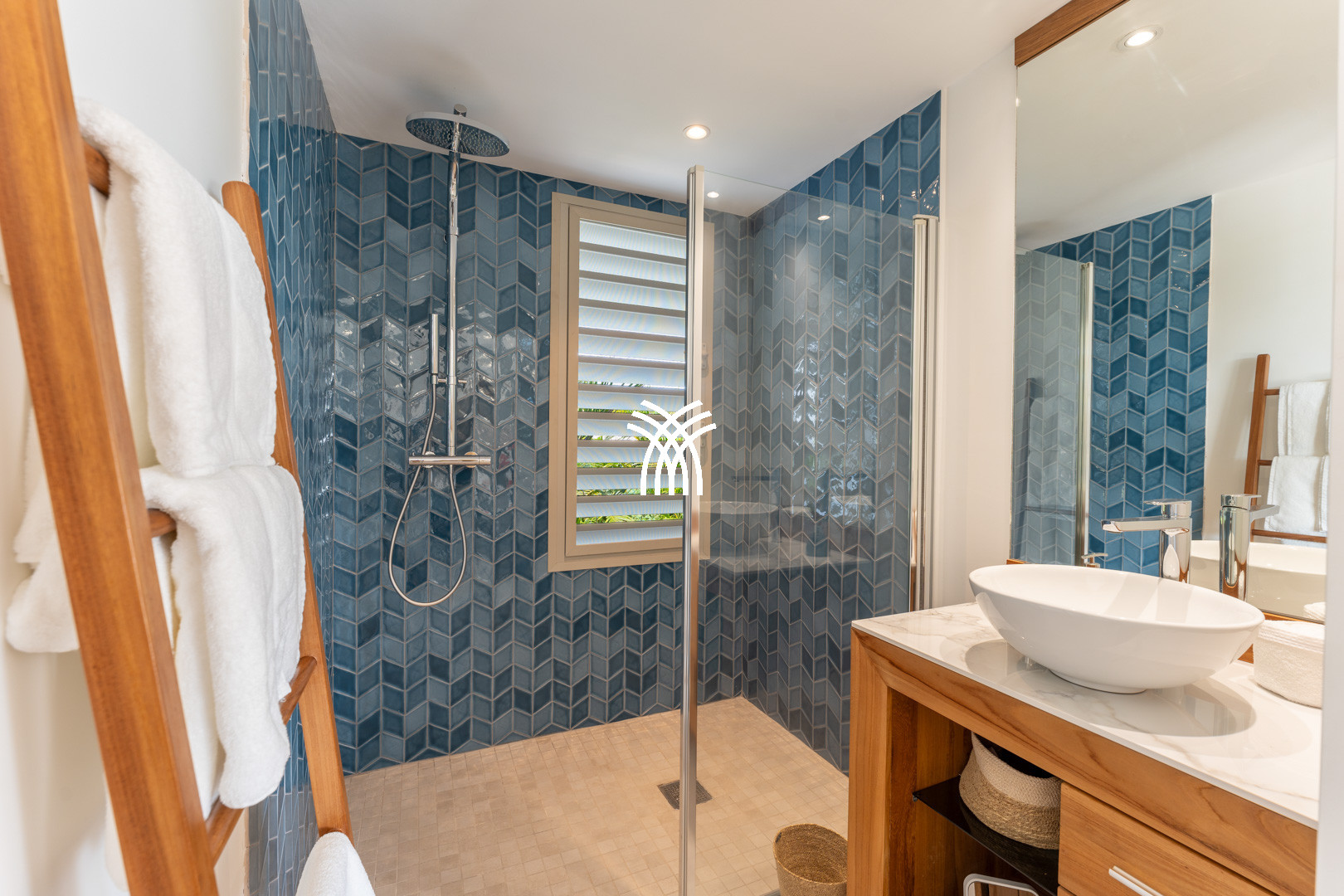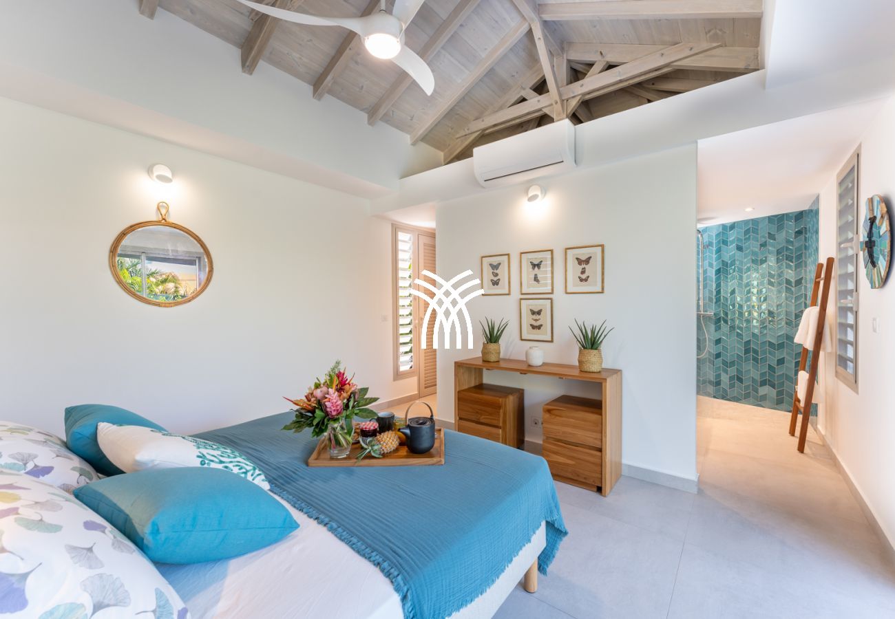 La villa Abawak, de plain-pied, dispose de 4 chambres climatisées décorées avec goût pour offrir confort et sérénité. La suite parentale principale est un véritable cocon avec lit king-size, dressing et salle d'eau privée. Une seconde suite parentale offre une expérience unique avec une douche en plein air sous le ciel étoilé de la Guadeloupe.