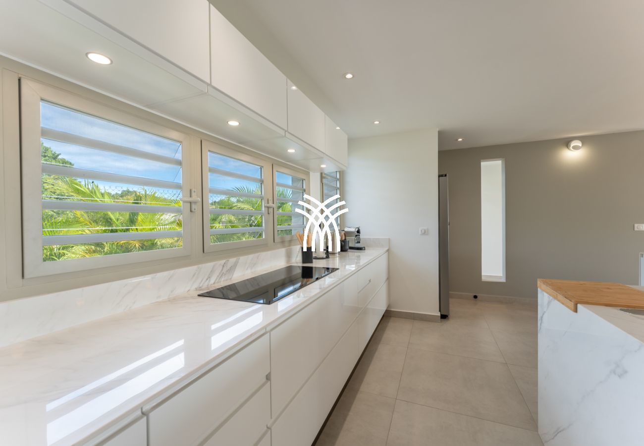 La cuisine américaine toute équipée s'ouvre sur le salon et la terrasse pour des moments farniente garantis. La jacuzzi est un des plus de cette villa qui fera le bonheur de tous les invités. La villa Bellini Guadeloupe, proche des plus belles plages comme Anse à la Gourde, plage des Salines, vous invite à la détente pour des vacances sous le signe de la relaxation.