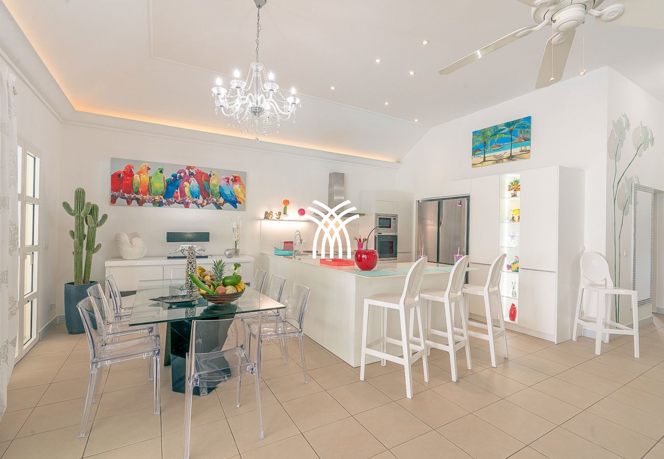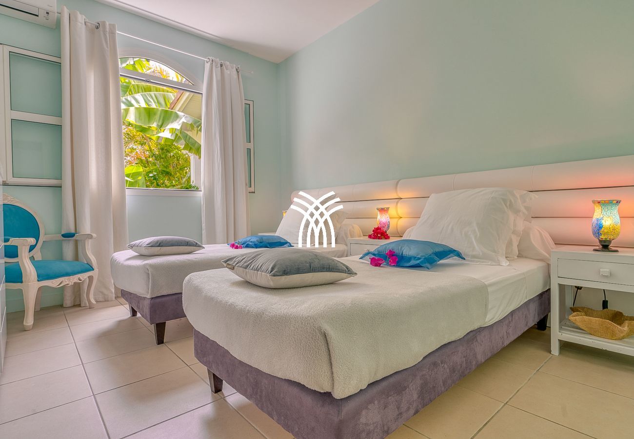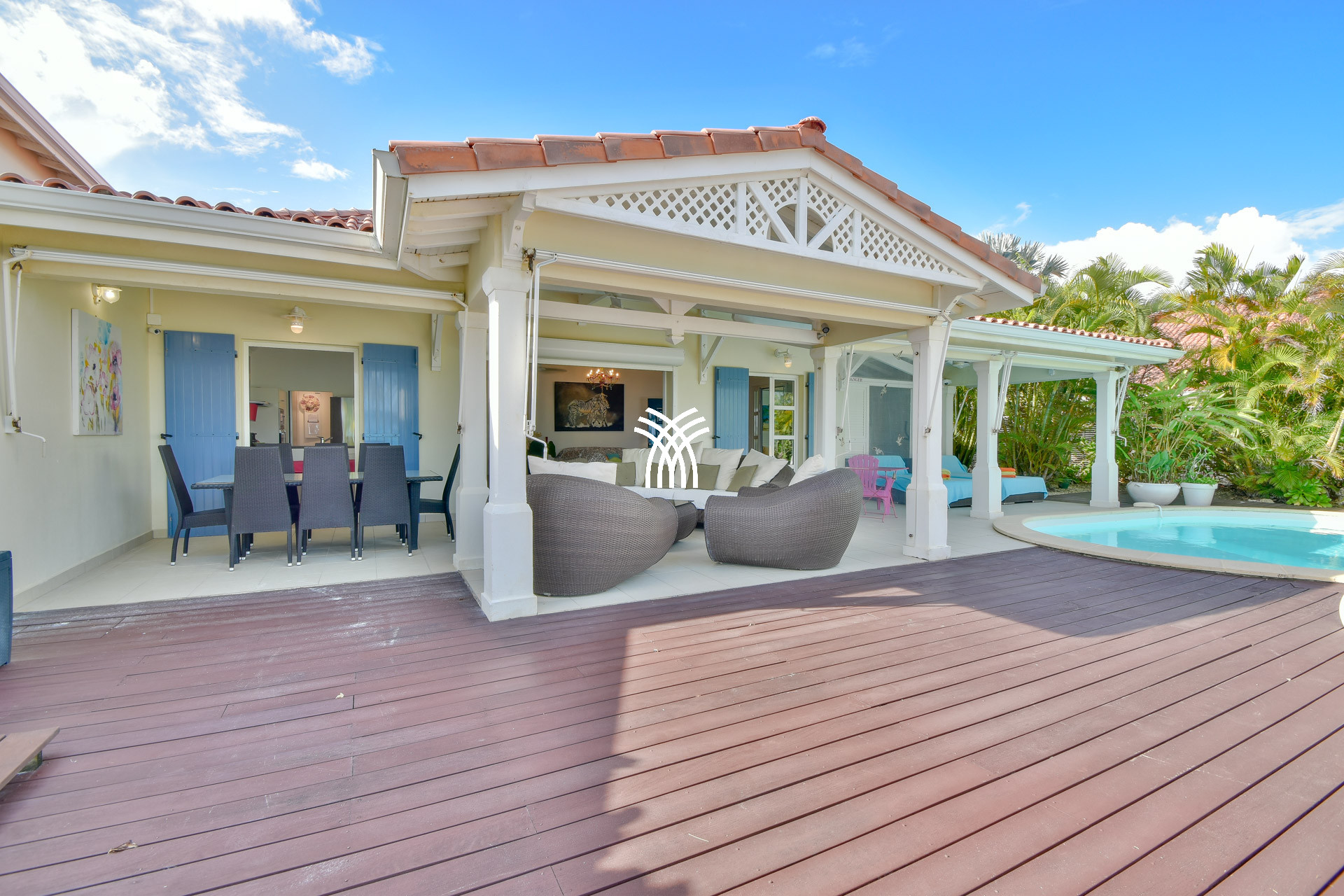 Bénéficiant d'une vue mer exceptionnelle, d'un grand jardin, d'une terrasse avec carbet et d'une piscine, cette propriété dispose de trois chambres climatisées et 3 salles de bain pouvant accueillir confortablement 7 personnes (6 adultes et 1 enfant). La cuisine aménagée et équipée d’un bar ouvrant sur la terrasse vous permettra de siroter cocktails tout en profitant du cadre idyllique. La ville Iguana Bay Guadeloupe est une invitation au voyage avec, à la clef, des souvenirs plein la tête.