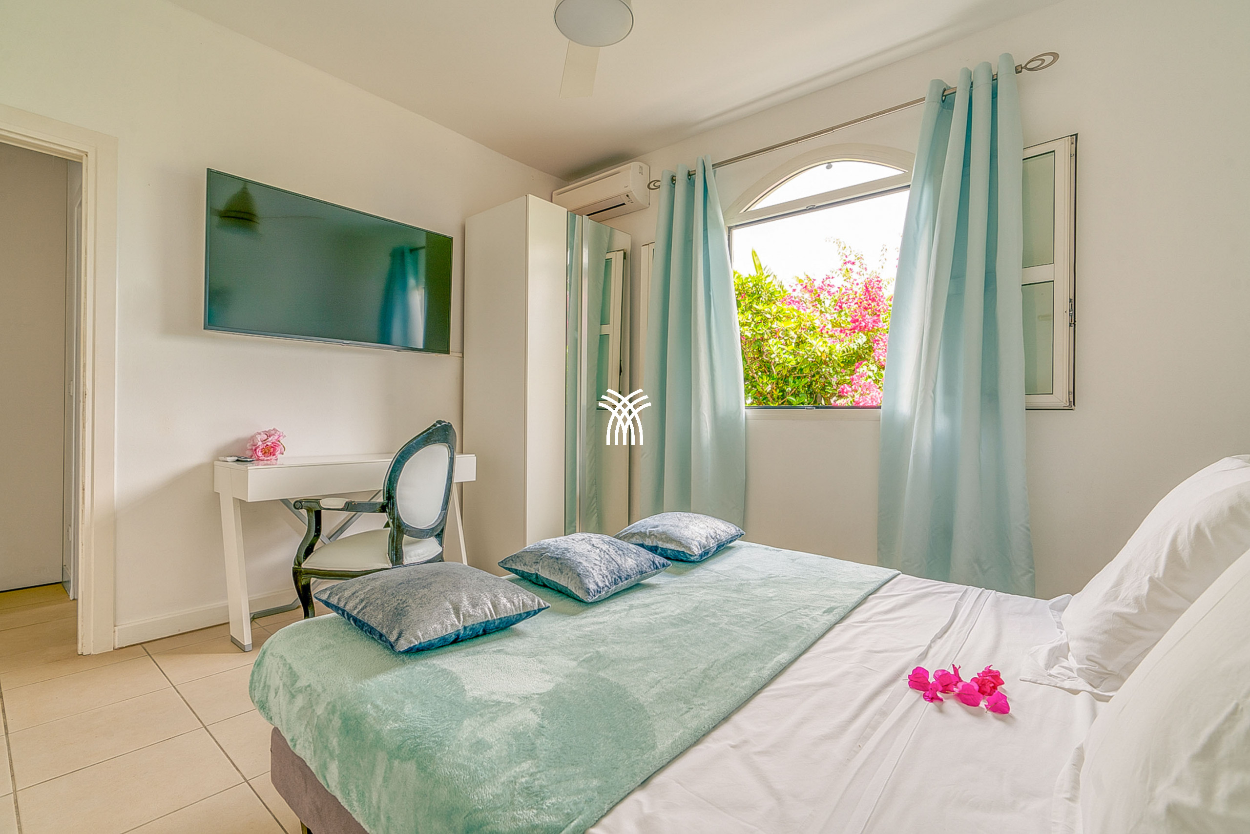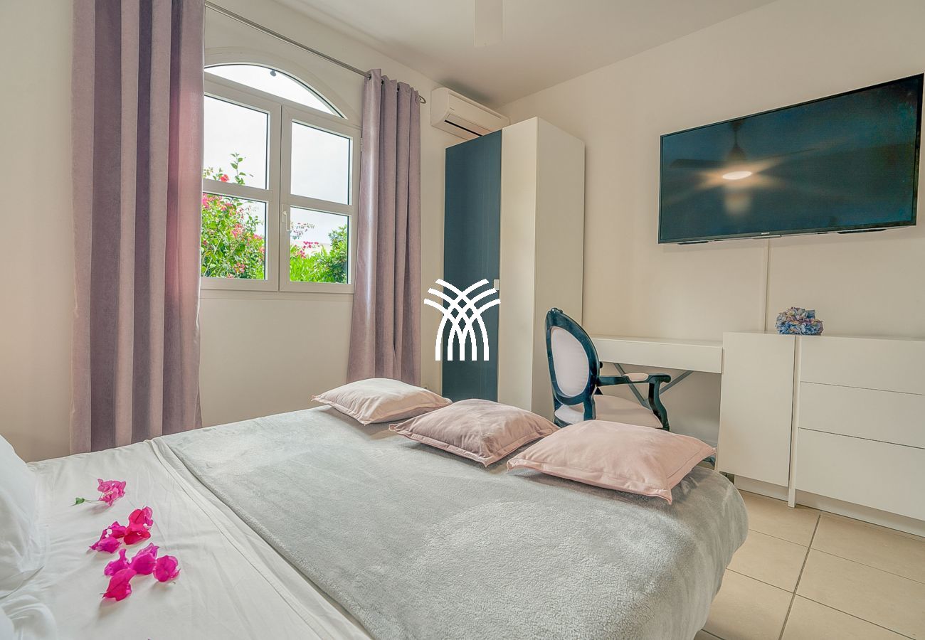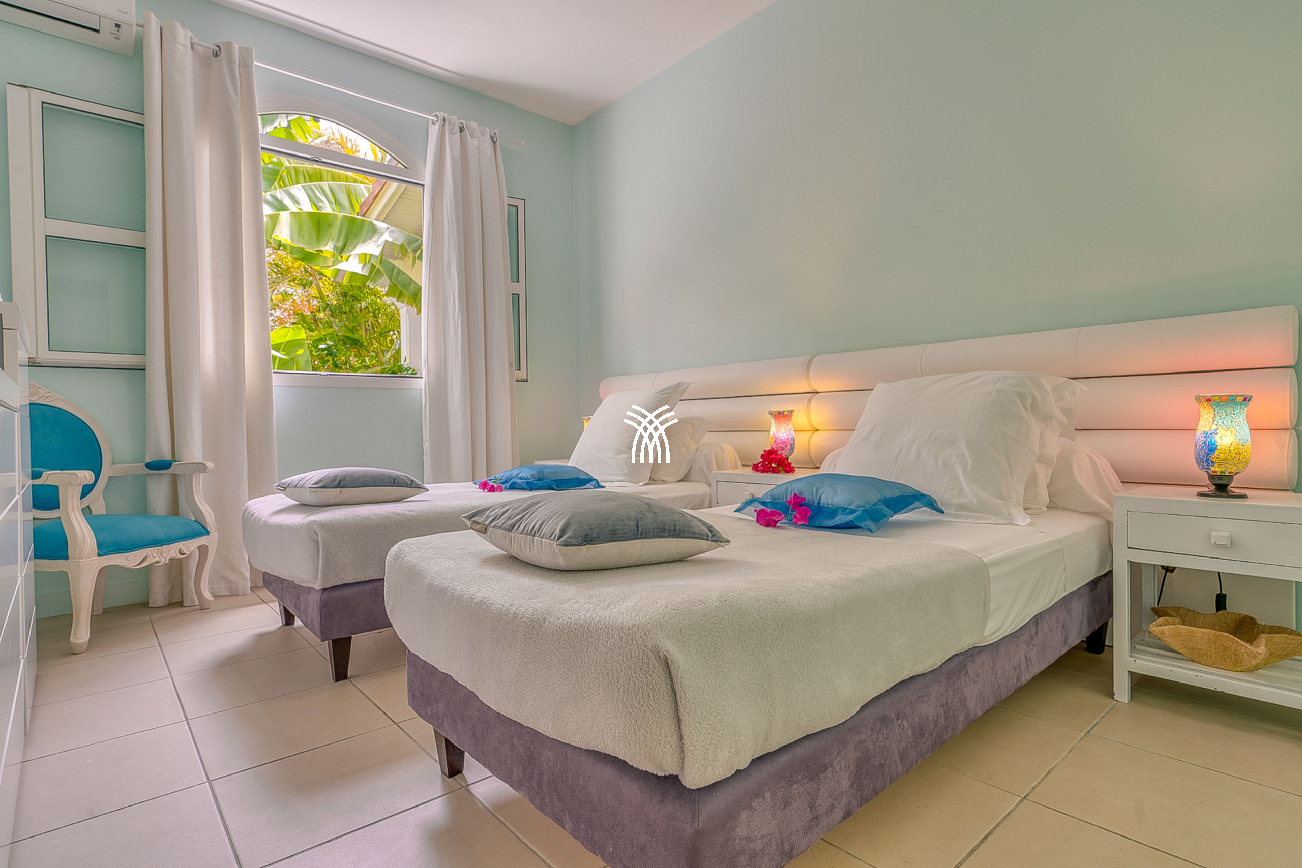 Bénéficiant d'une vue mer exceptionnelle, d'un grand jardin, d'une terrasse avec carbet et d'une piscine, cette propriété dispose de trois chambres climatisées et 3 salles de bain pouvant accueillir confortablement 7 personnes (6 adultes et 1 enfant). La cuisine aménagée et équipée d’un bar ouvrant sur la terrasse vous permettra de siroter cocktails tout en profitant du cadre idyllique. La ville Iguana Bay Guadeloupe est une invitation au voyage avec, à la clef, des souvenirs plein la tête.