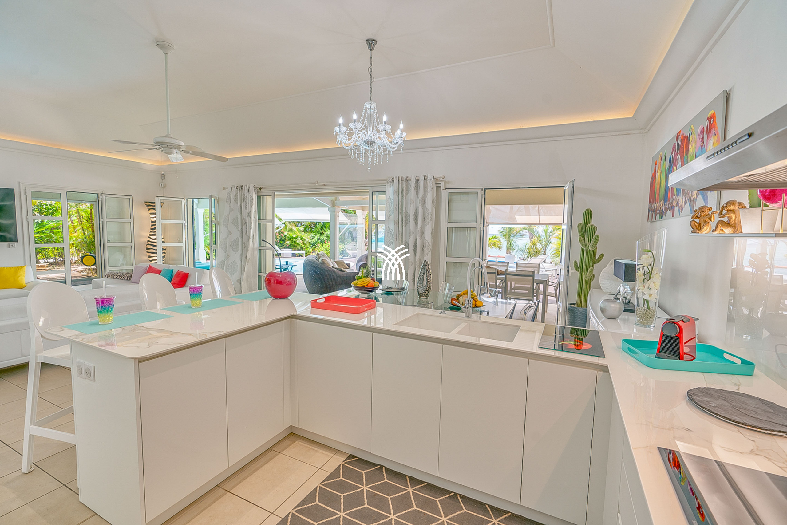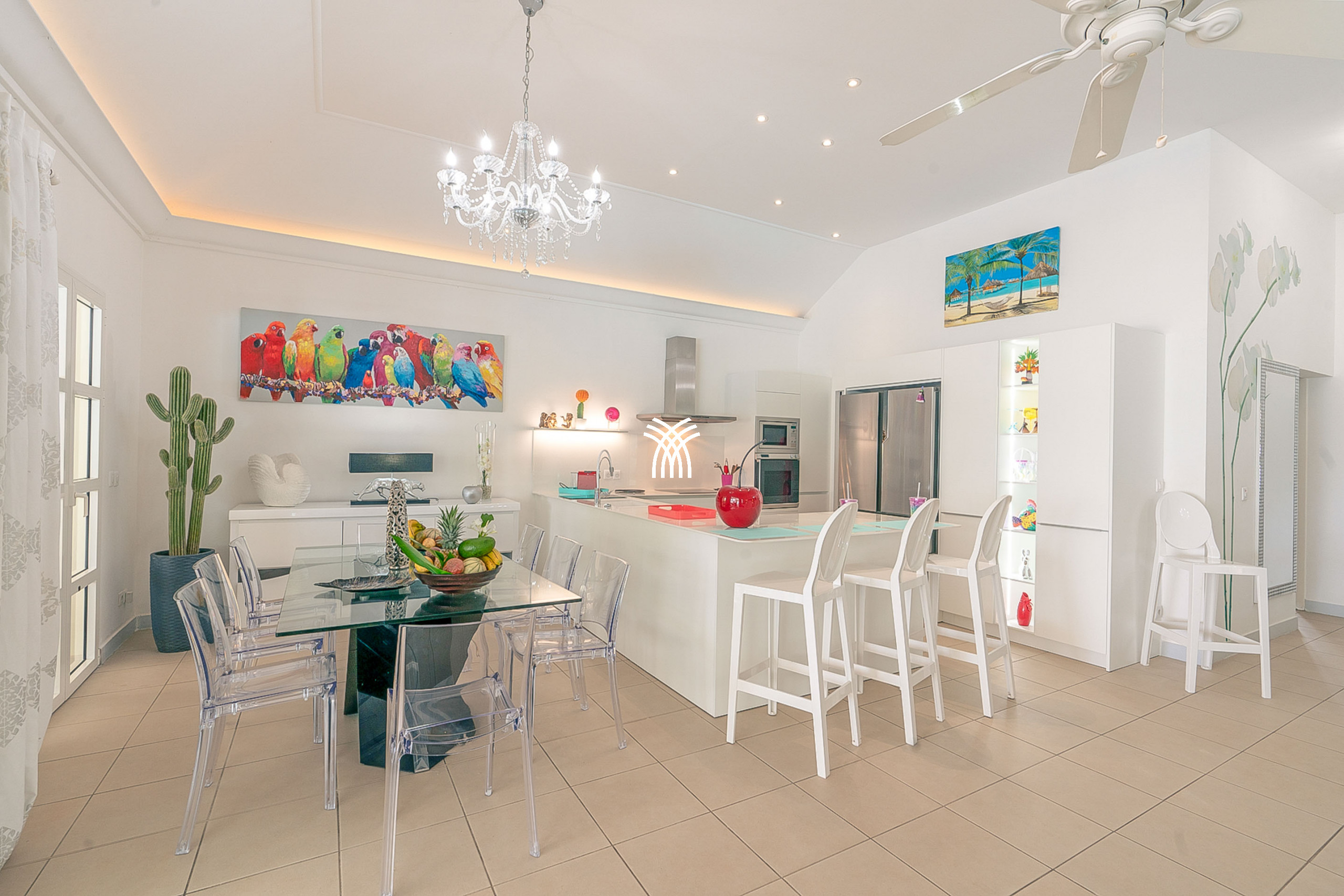 La cuisine américaine toute équipée s'ouvre sur le salon et la terrasse pour des moments farniente garantis. La jacuzzi est un des plus de cette villa qui fera le bonheur de tous les invités. La villa Bellini Guadeloupe, proche des plus belles plages comme Anse à la Gourde, plage des Salines, vous invite à la détente pour des vacances sous le signe de la relaxation.