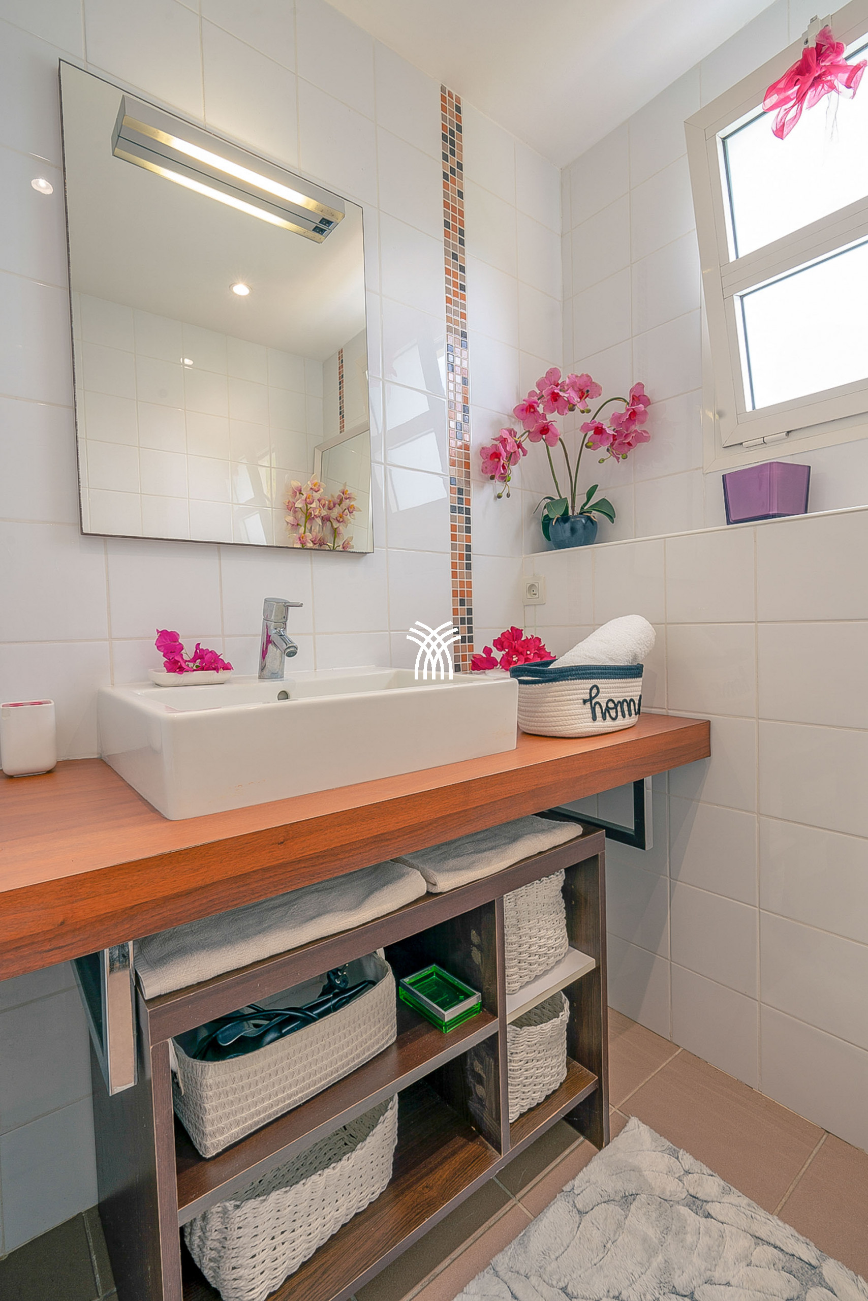Pouvant accueillir jusqu'à 8 personnes, cette propriété présente 4 chambres climatisées, décorées avec soin ainsi que 3 salles de bains.