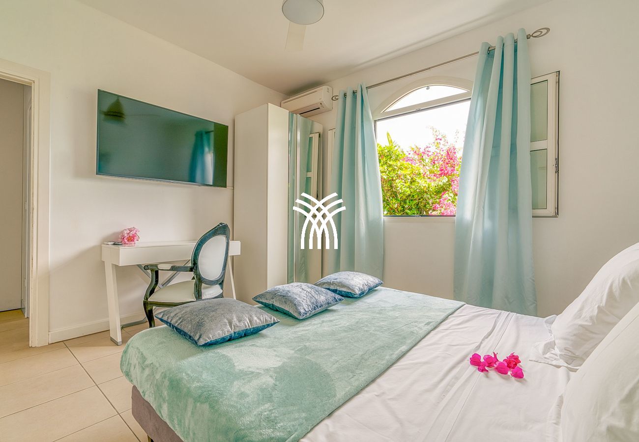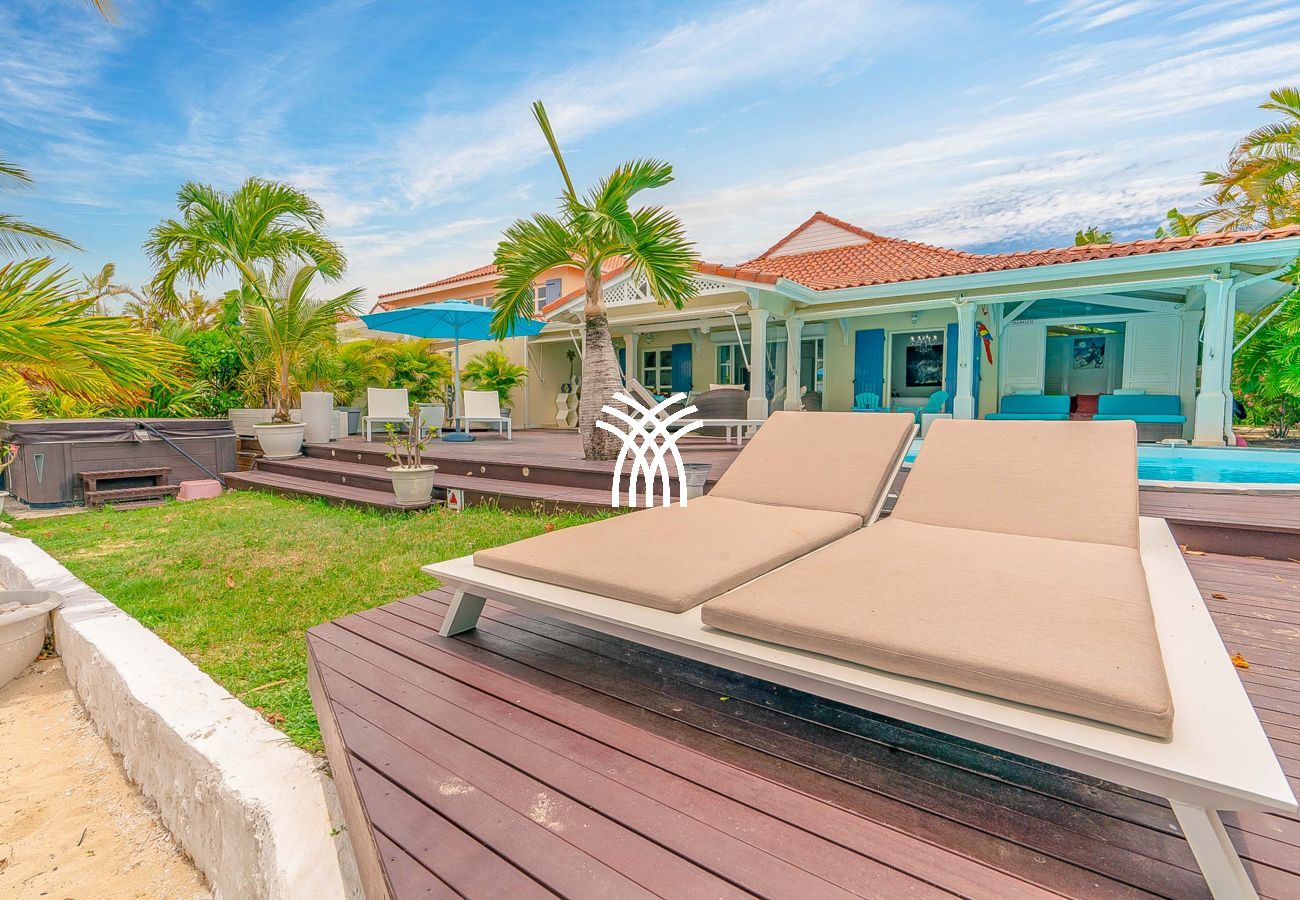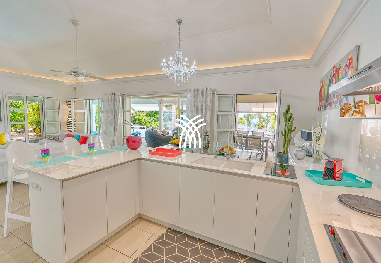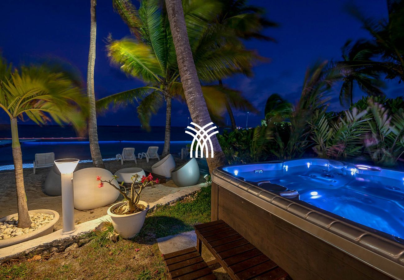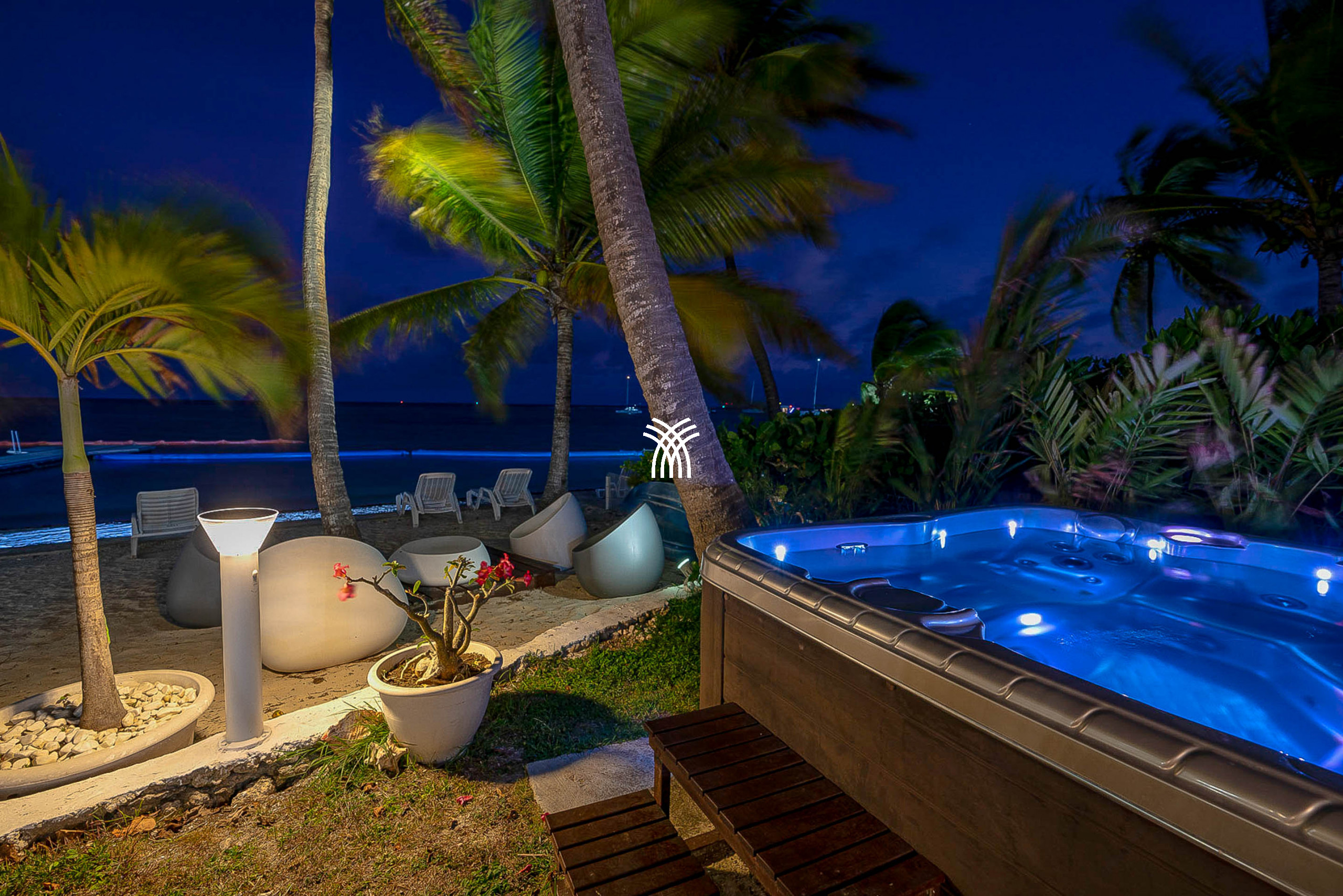 La Villa Beach 8 Guadeloupe est une maison de vacances de prestige, offrant un accès direct sur le lagon de Saint-François. Vous pourrez profiter de toutes les commodités à pied : le logement se situant à une centaine de mètres de la marina et ses commerces. Pouvant accueillir jusqu’à 6 personnes et 1 enfant, vous trouverez dans la maison, trois chambres climatisées dont une avec sa propre salle d'eau. Les deux autres chambres se partageant une salle de bain. La Villa Beach 8 Guadeloupe, spacieuse et lumineuse, dispose d’une large terrasse avec piscine et se son tout nouveau jacuzzi. La cuisine américaine entièrement équipée et la table extérieure vous raviront pour des repas locaux savoureux. De nombreuses ouvertures vous permettent de profiter de la vue mer et du jardin. Cette villa pieds dans l'eau sera le lieu parfait pour des vacances en Guadeloupe.