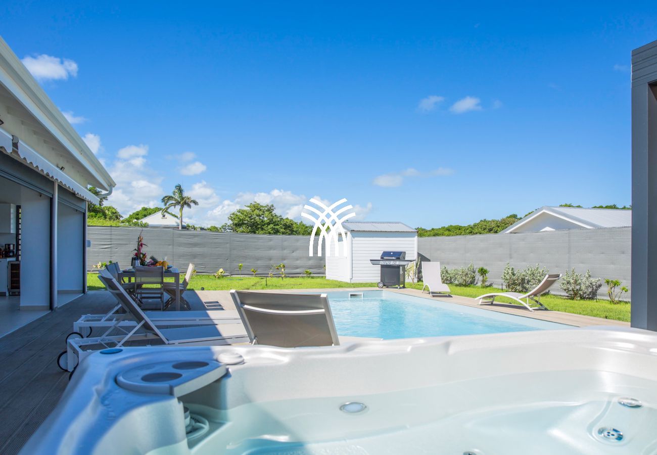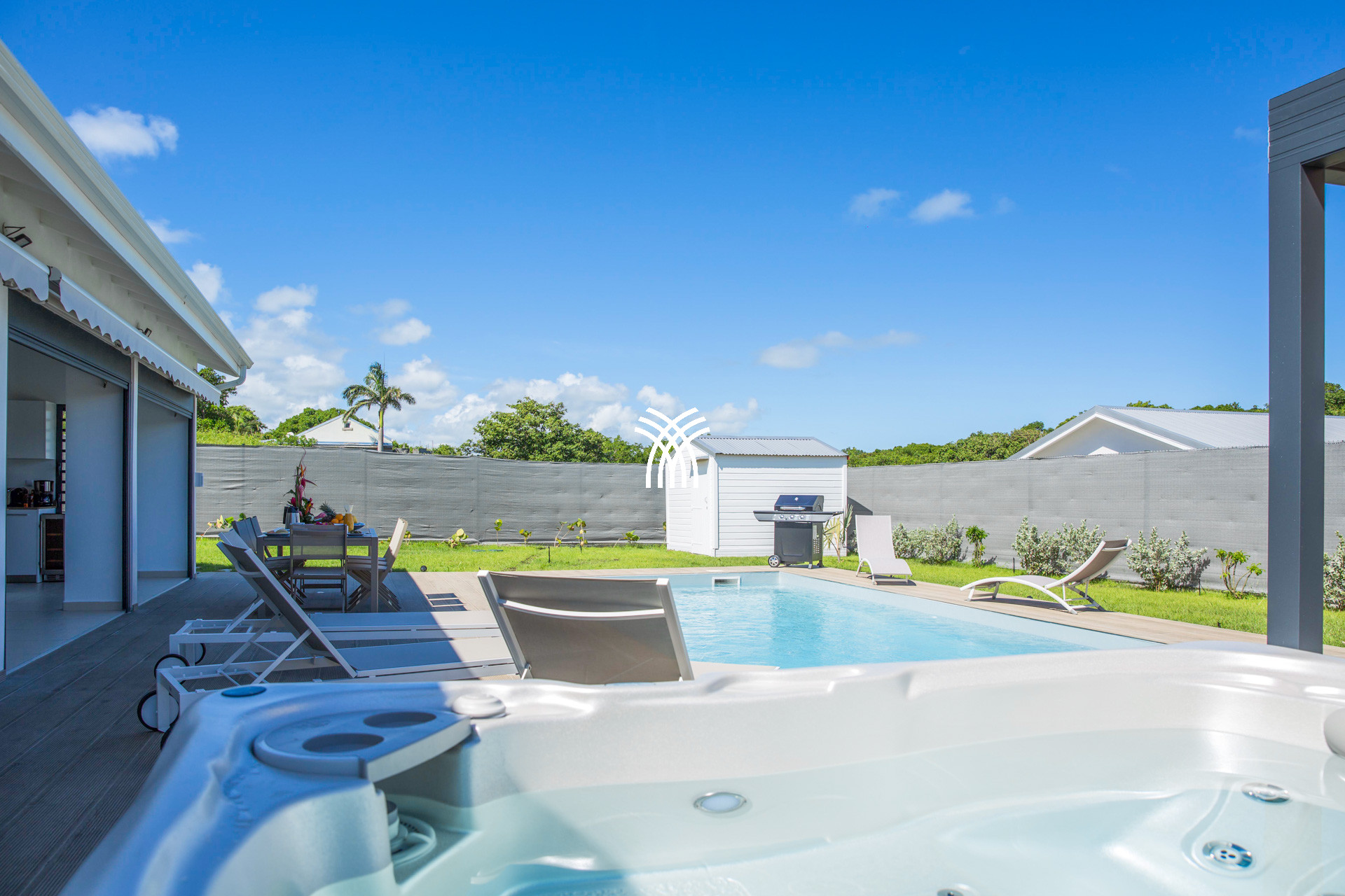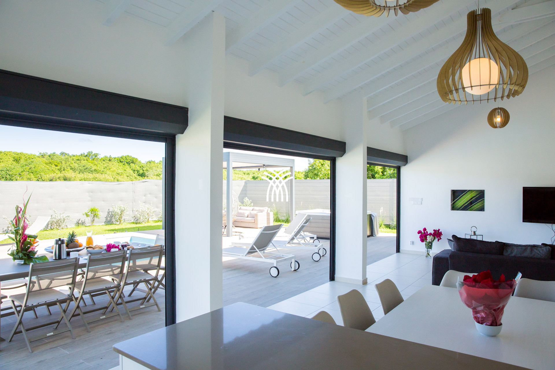 Située sur les hauteurs de Saint François, la Villa Uhaina Guadeloupe est située à seulement 2 minutes en voiture du centre de St François, le casino et la Marina. Cette nouvelle villa d'architecte est également à 3 minutes en voiture seulement de la plage de La Coulée. Villa Uhaina Guadeloupe offre une atmosphère zen paisible inspirée par la culture balinaise, indienne et des Caraïbes dans 145 m² d'espace. La propriété a été construite en 2 unités: la maison principale et un bungalow, pouvant accueillir jusqu'à 8 personnes. Les 4 chambres sont toutes climatisées et tournées sur la piscine. Vous pourrez profiter de l'aération ventilée de la maison, le gazebo à côté de la piscine, qui offre une baignoire spa. Villa Uhaina Guadeloupe est idéal pour des vacances reposantes en Guadeloupe ou si vous préférez pratiquer le sport et les activités nautiques (surf, kitesurf, parachutisme, canoë, golf, vélo).
