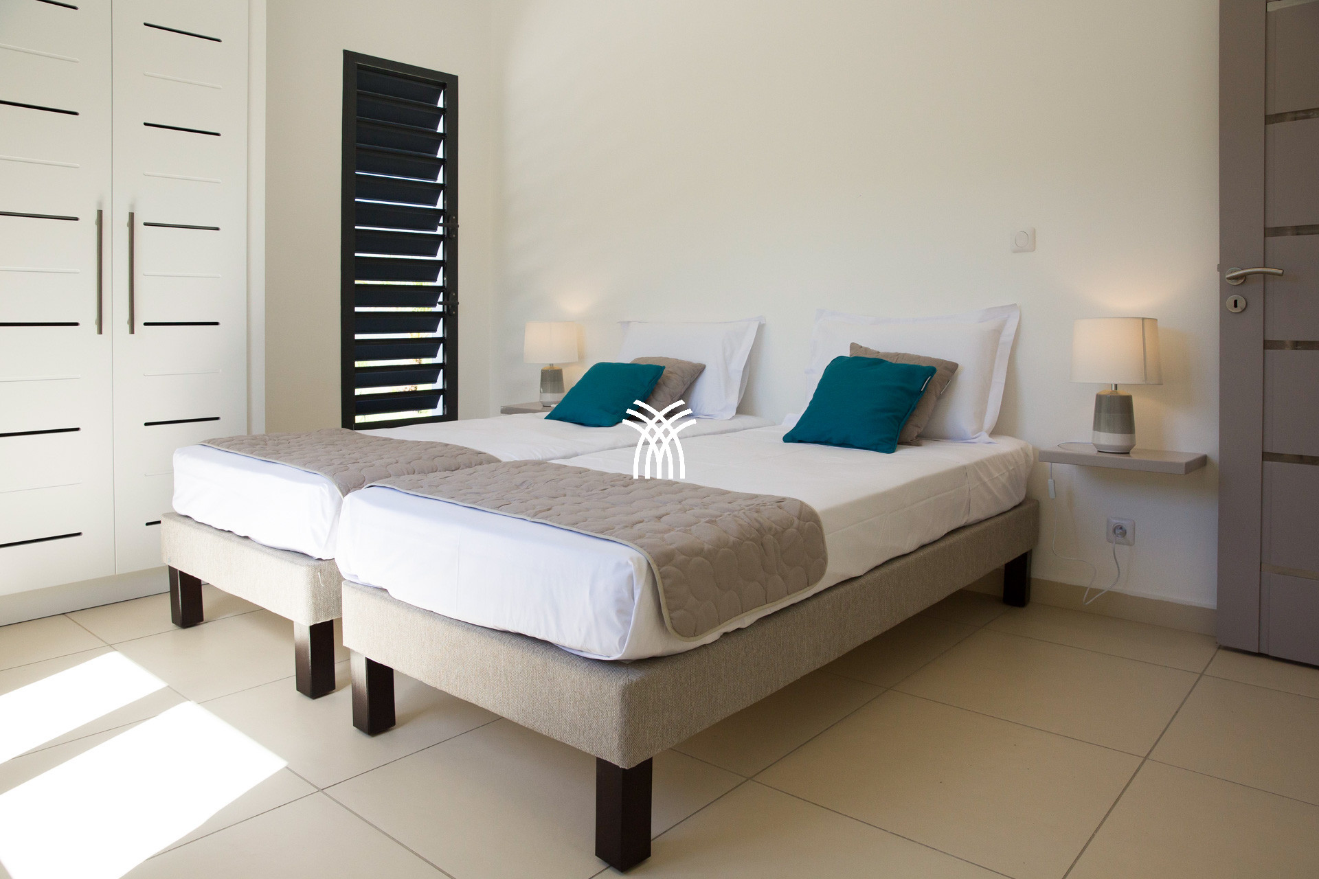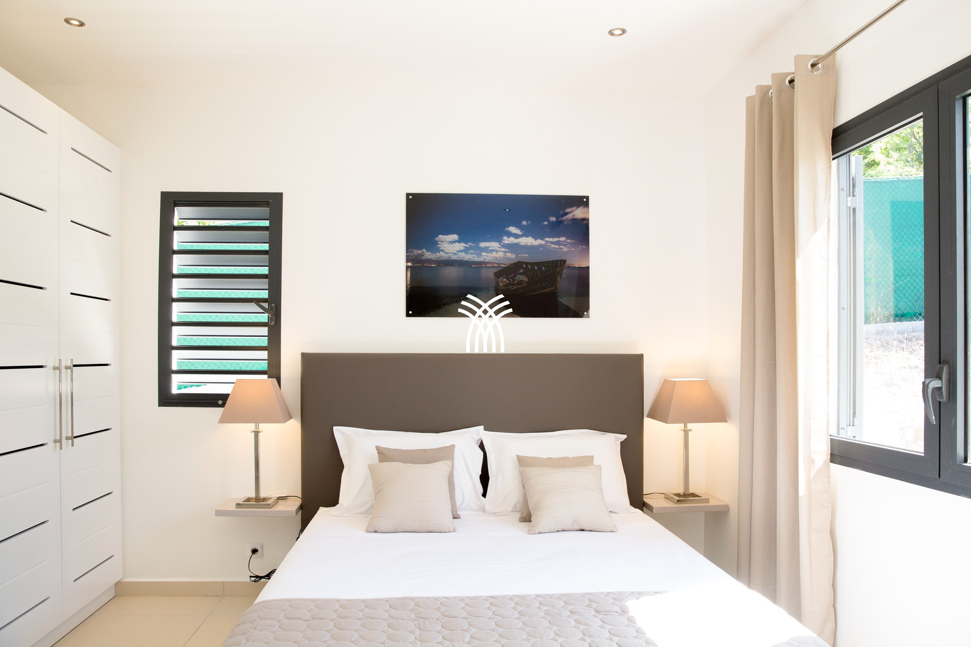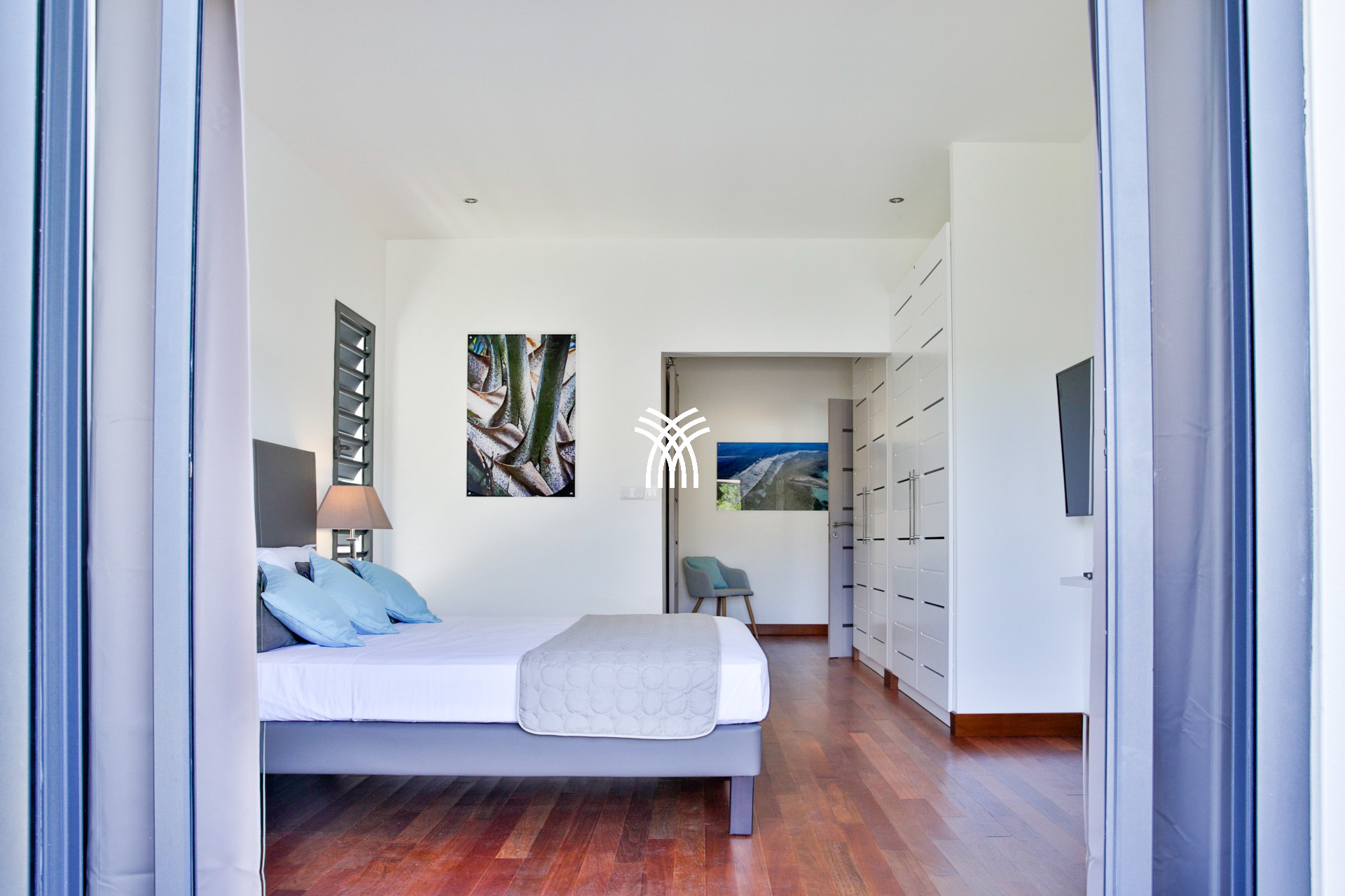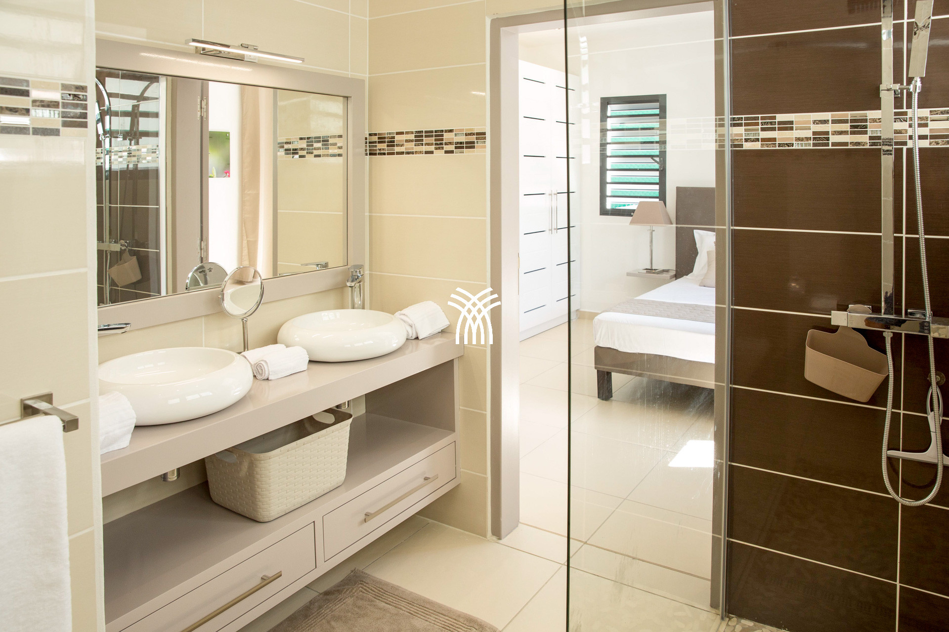 La villa Abawak, de plain-pied, dispose de 4 chambres climatisées décorées avec goût pour offrir confort et sérénité. La suite parentale principale est un véritable cocon avec lit king-size, dressing et salle d'eau privée. Une seconde suite parentale offre une expérience unique avec une douche en plein air sous le ciel étoilé de la Guadeloupe.