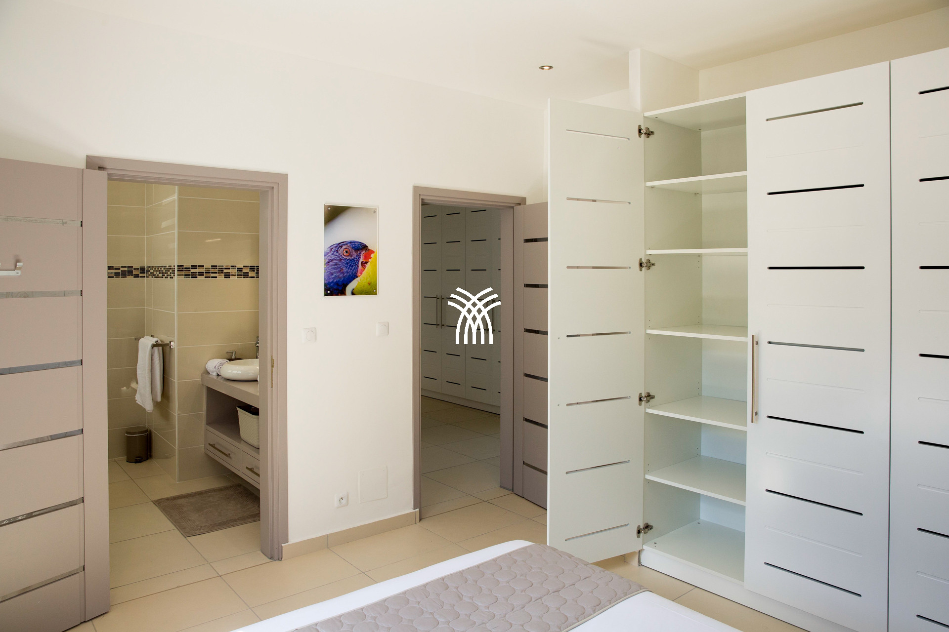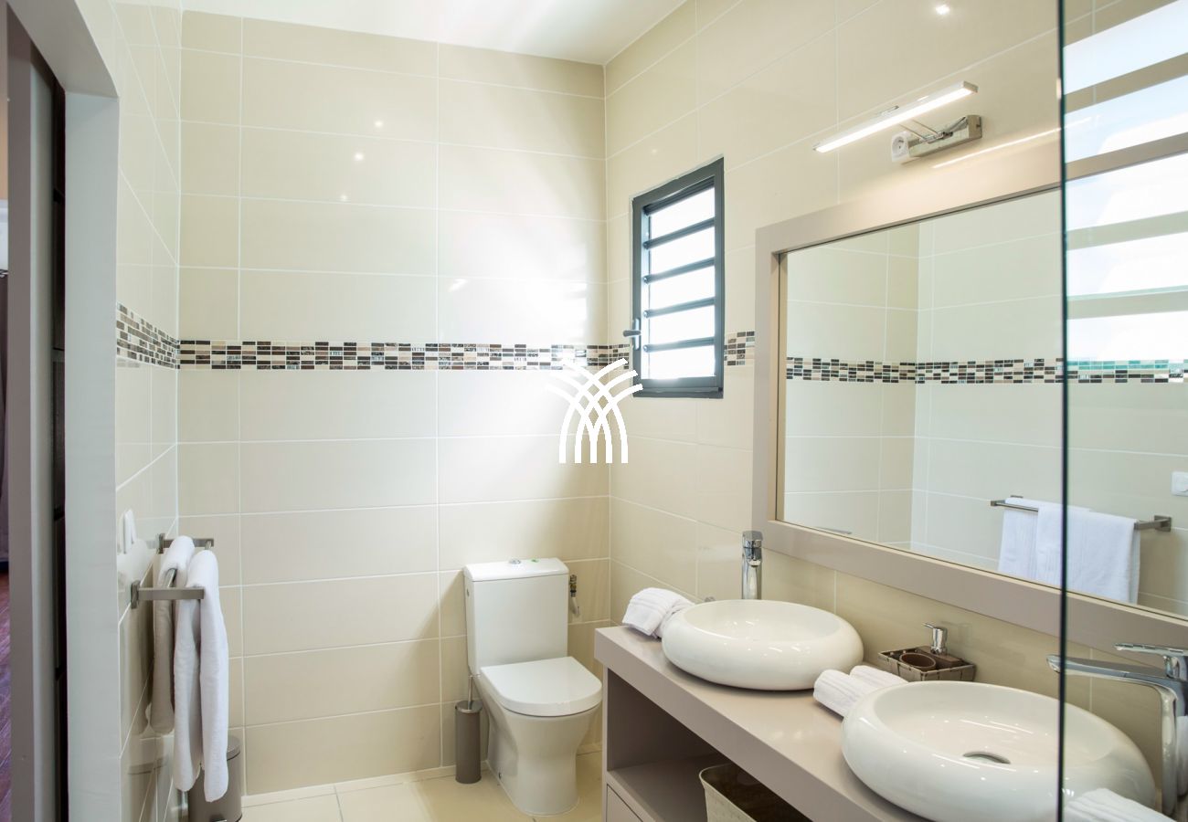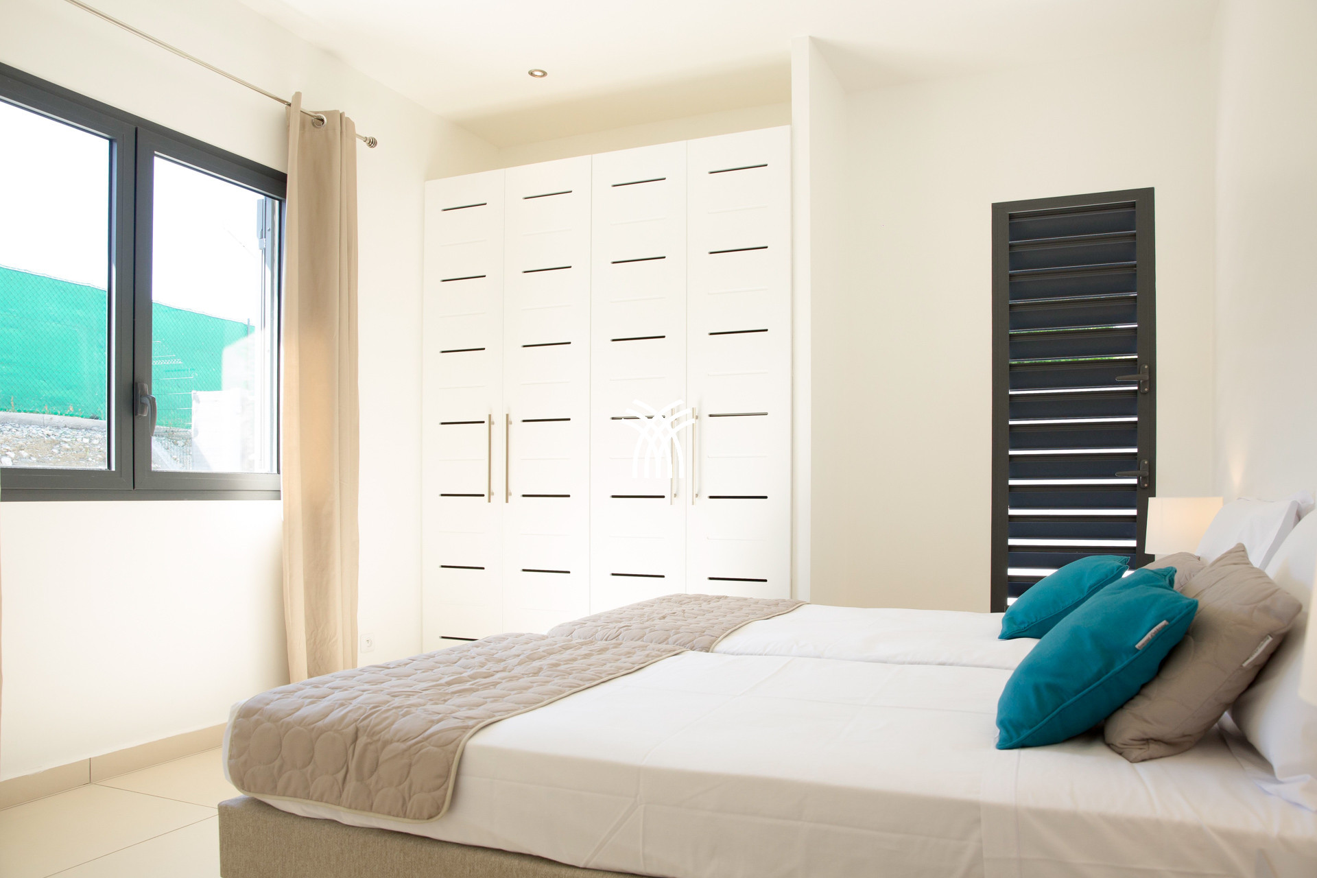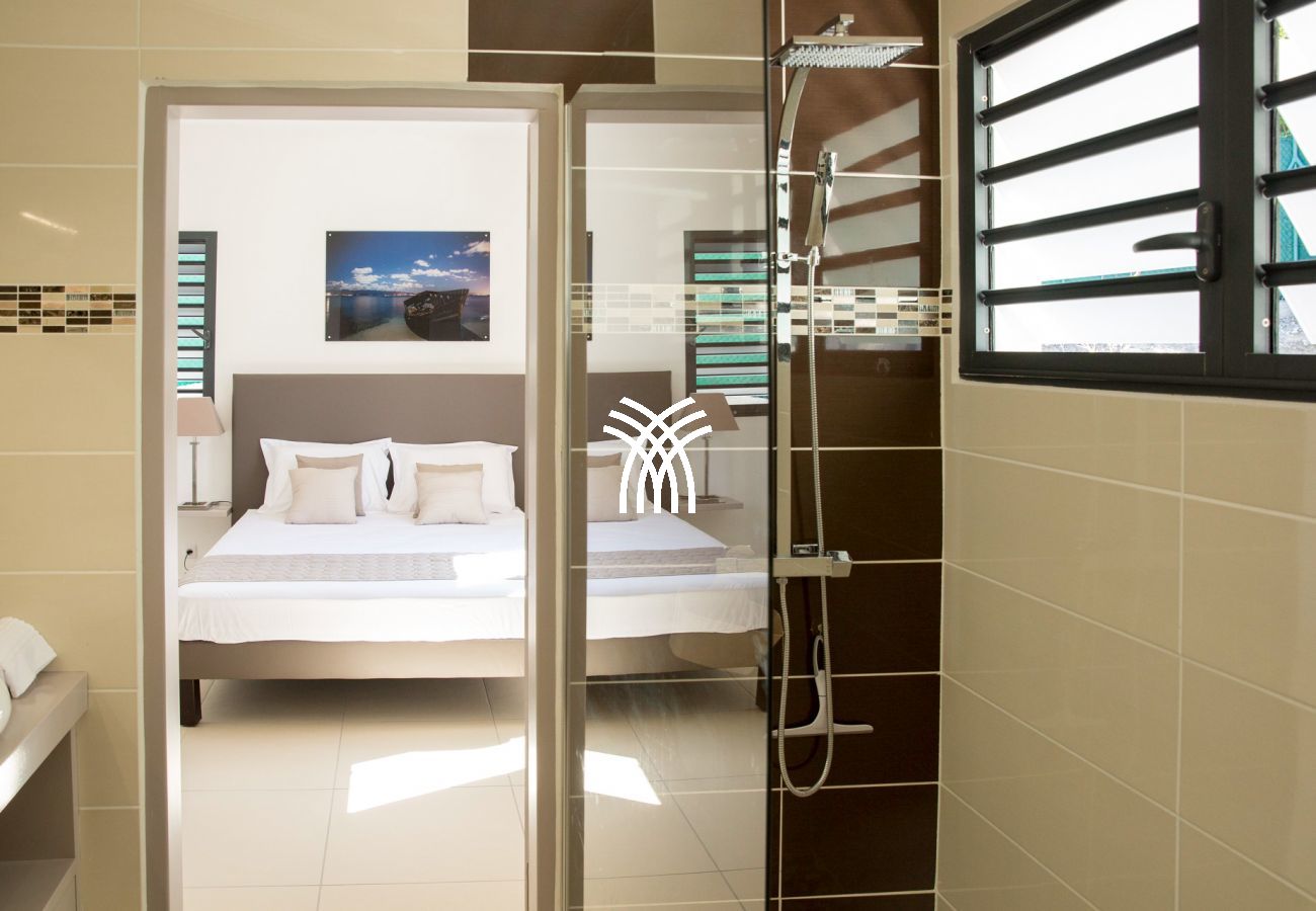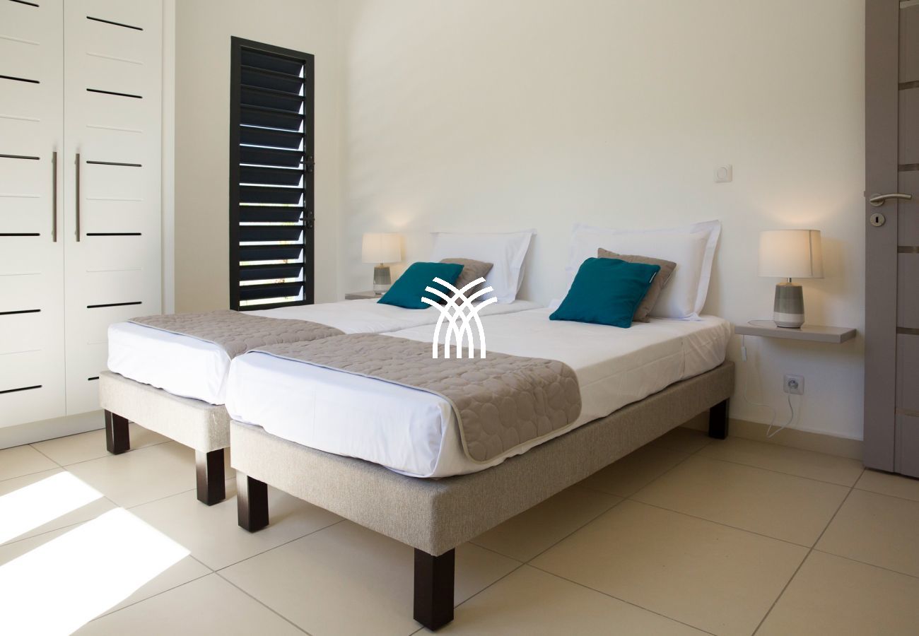 La villa Abawak, de plain-pied, dispose de 4 chambres climatisées décorées avec goût pour offrir confort et sérénité. La suite parentale principale est un véritable cocon avec lit king-size, dressing et salle d'eau privée. Une seconde suite parentale offre une expérience unique avec une douche en plein air sous le ciel étoilé de la Guadeloupe.