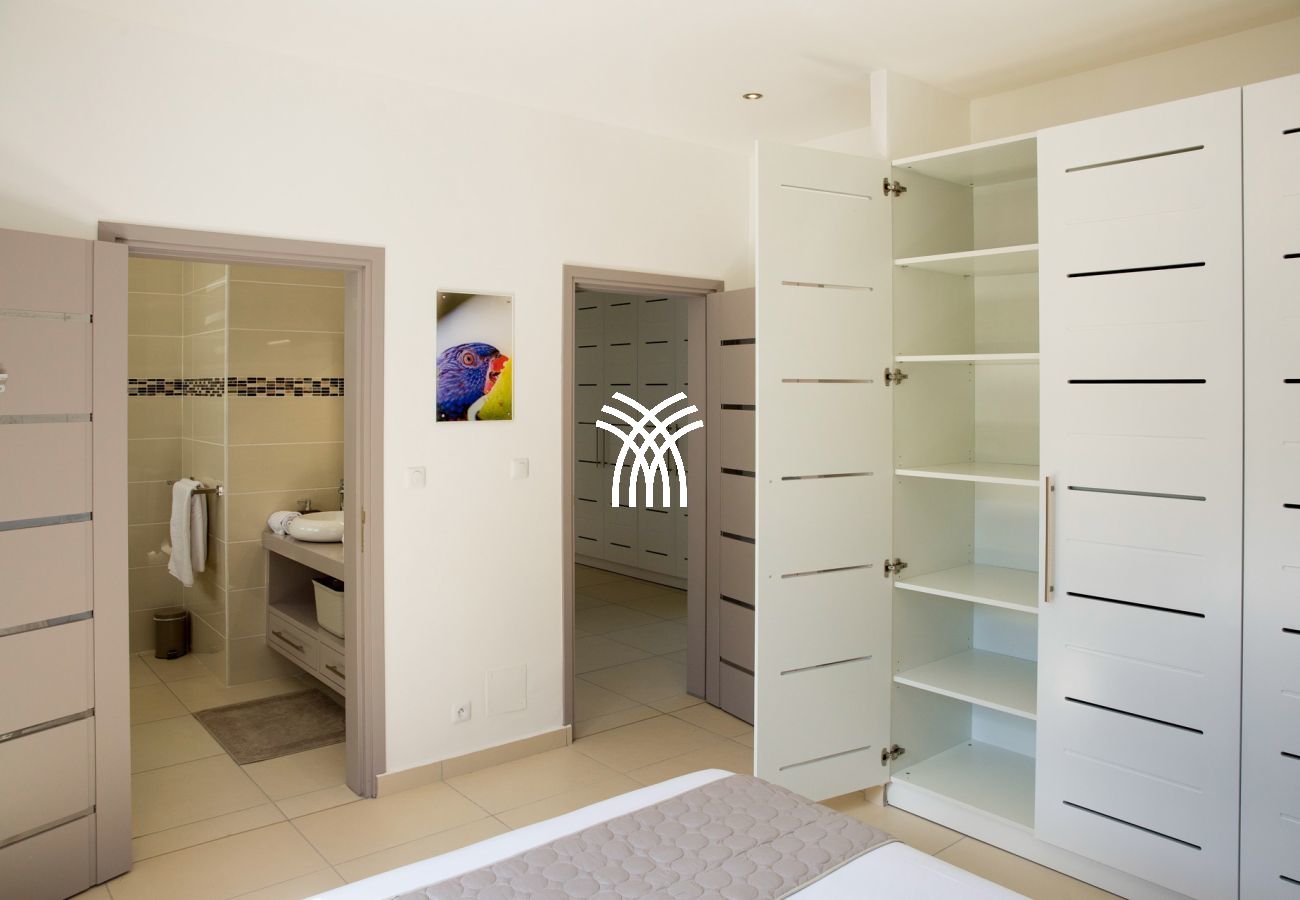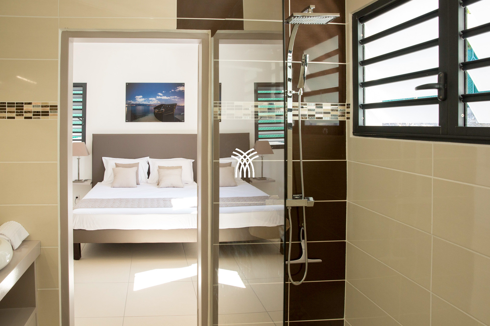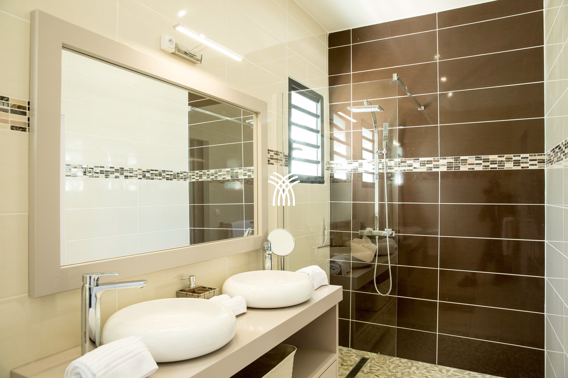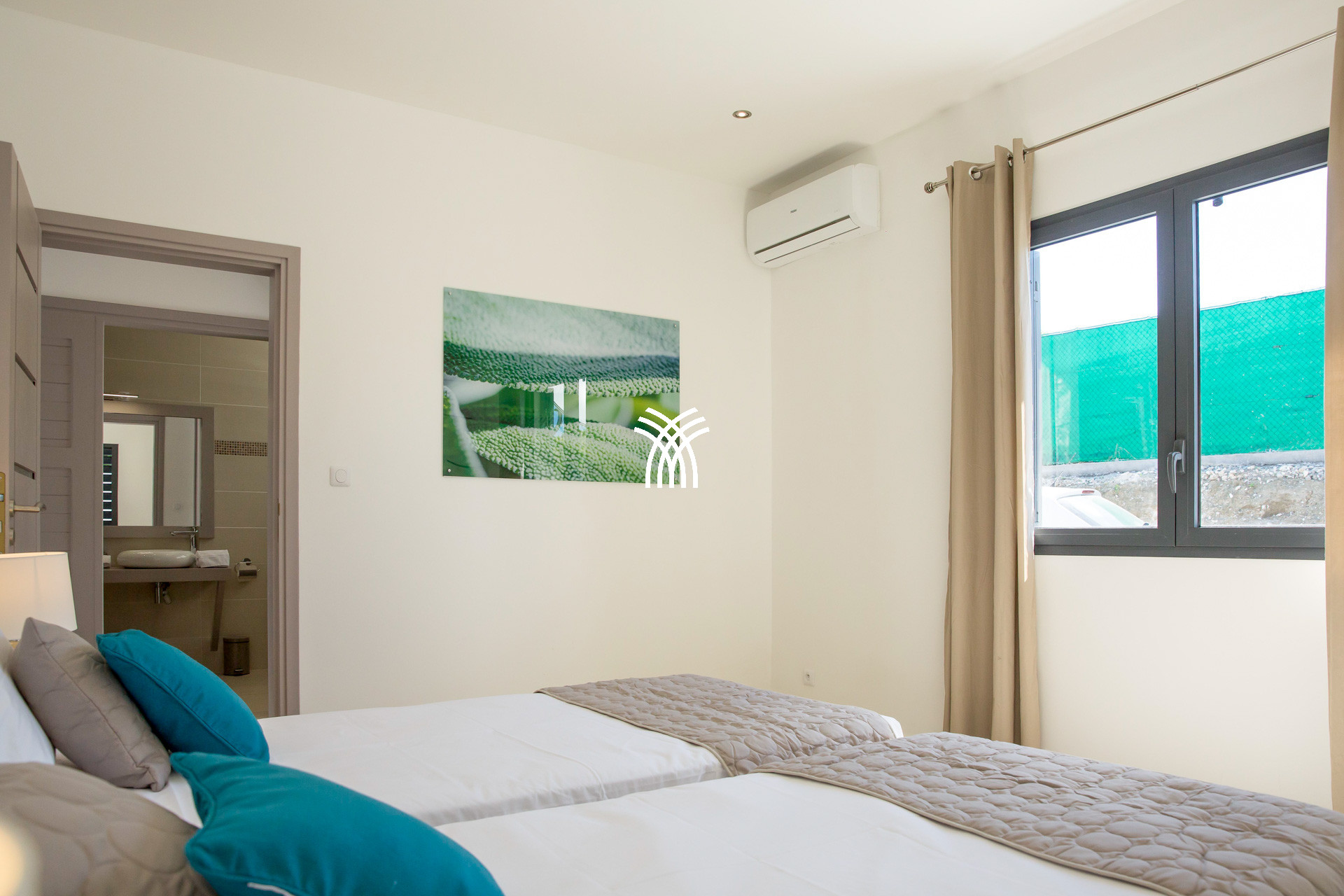 La villa Abawak, de plain-pied, dispose de 4 chambres climatisées décorées avec goût pour offrir confort et sérénité. La suite parentale principale est un véritable cocon avec lit king-size, dressing et salle d'eau privée. Une seconde suite parentale offre une expérience unique avec une douche en plein air sous le ciel étoilé de la Guadeloupe.
