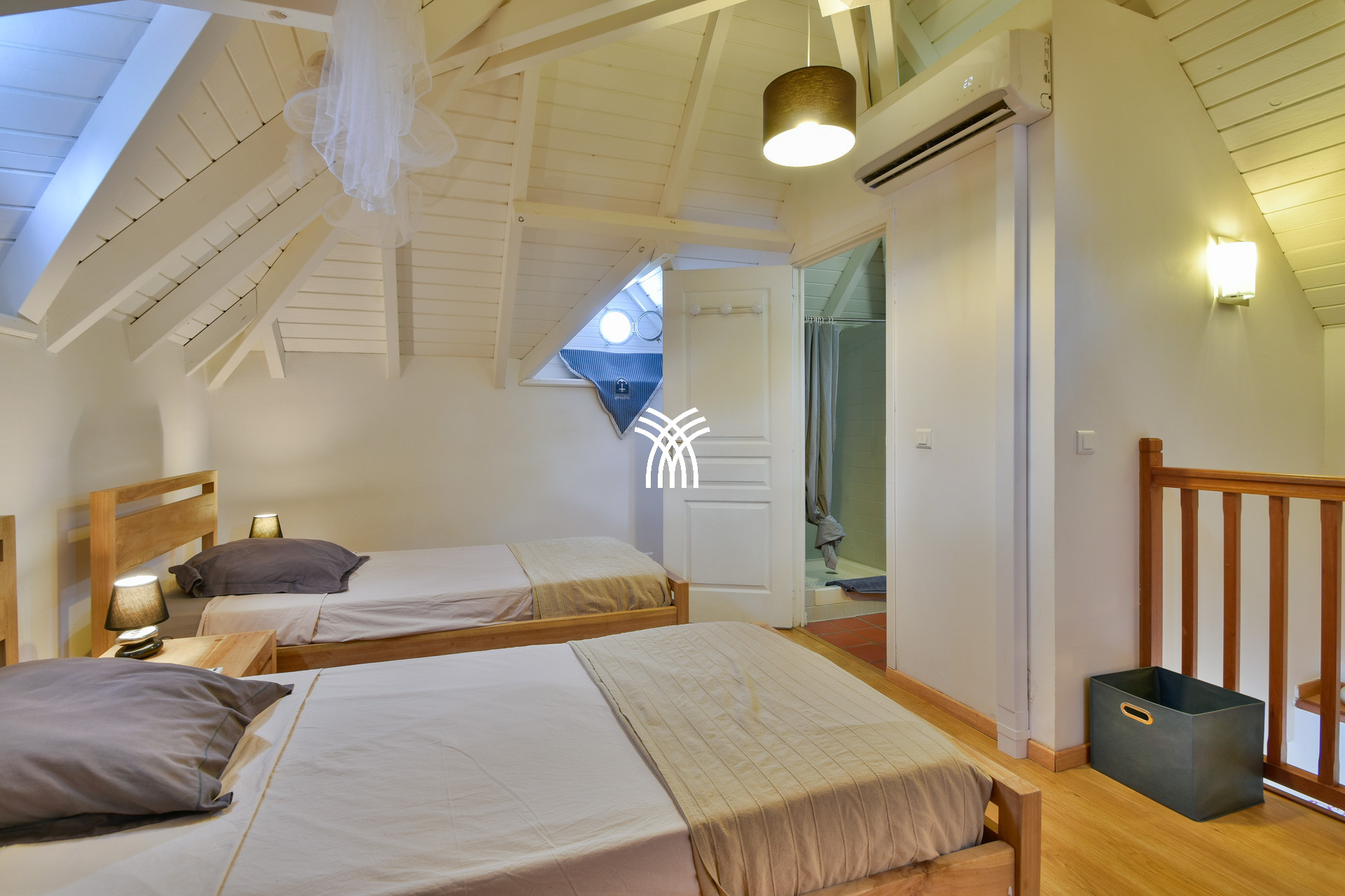 Elle dispose de 3 chambres climatisées dont une mezzanine avec 3 salles de bain attenantes permettant d’offrir à chacun de l’intimité. Nichée entre les palmiers, l’extérieur offre une belle piscine pour des moments détente garantis. La villa Cattleya Guadeloupe est une location de vacances idéale pour un séjour aux Caraïbes.