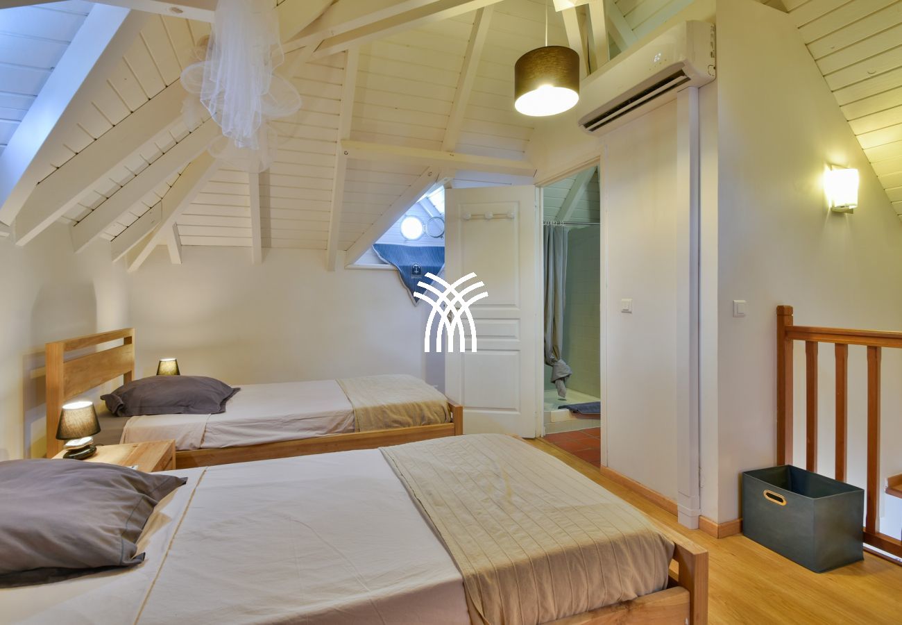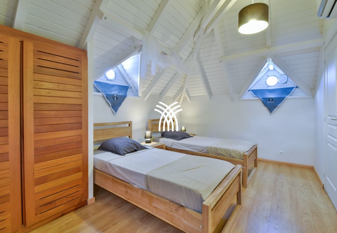 La Villa Katorz est une villa de charme en Guadeloupe située à Saint-François, offrant une vue mer panoramique et une belle piscine privée au sel de 5x10m. Pensée pour des séjours en toute sérénité, cette location de villa à Saint-François combine confort moderne et ambiance créole dans un cadre verdoyant et intime. La pièce de vie spacieuse s’ouvre sur une terrasse couverte donnant sur la piscine et un carbet, parfaits pour profiter de la douceur des soirées guadeloupéennes face à la mer.