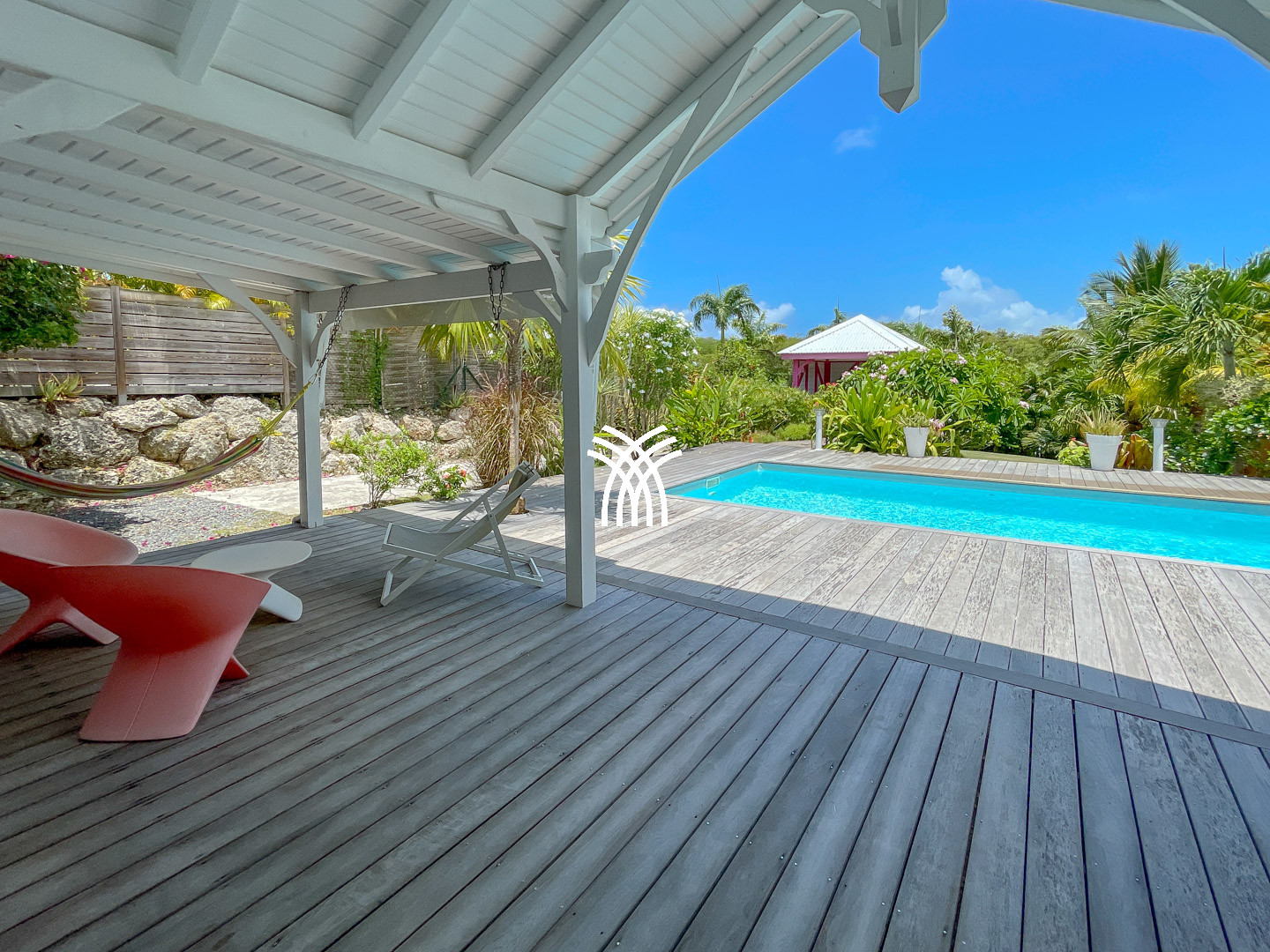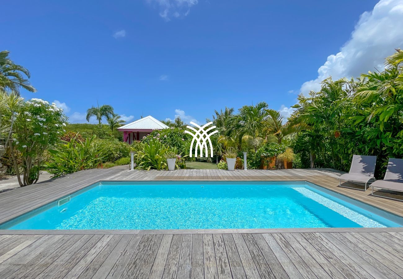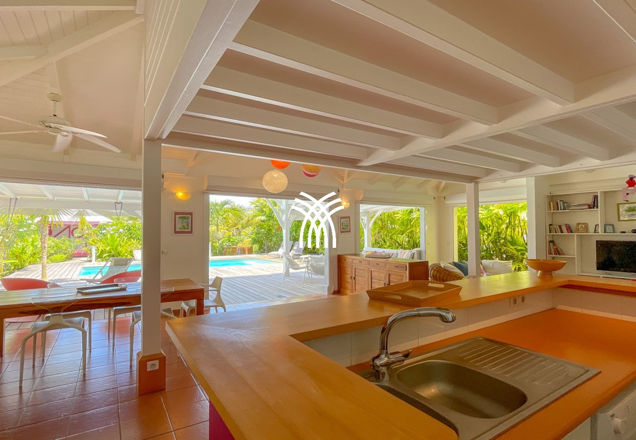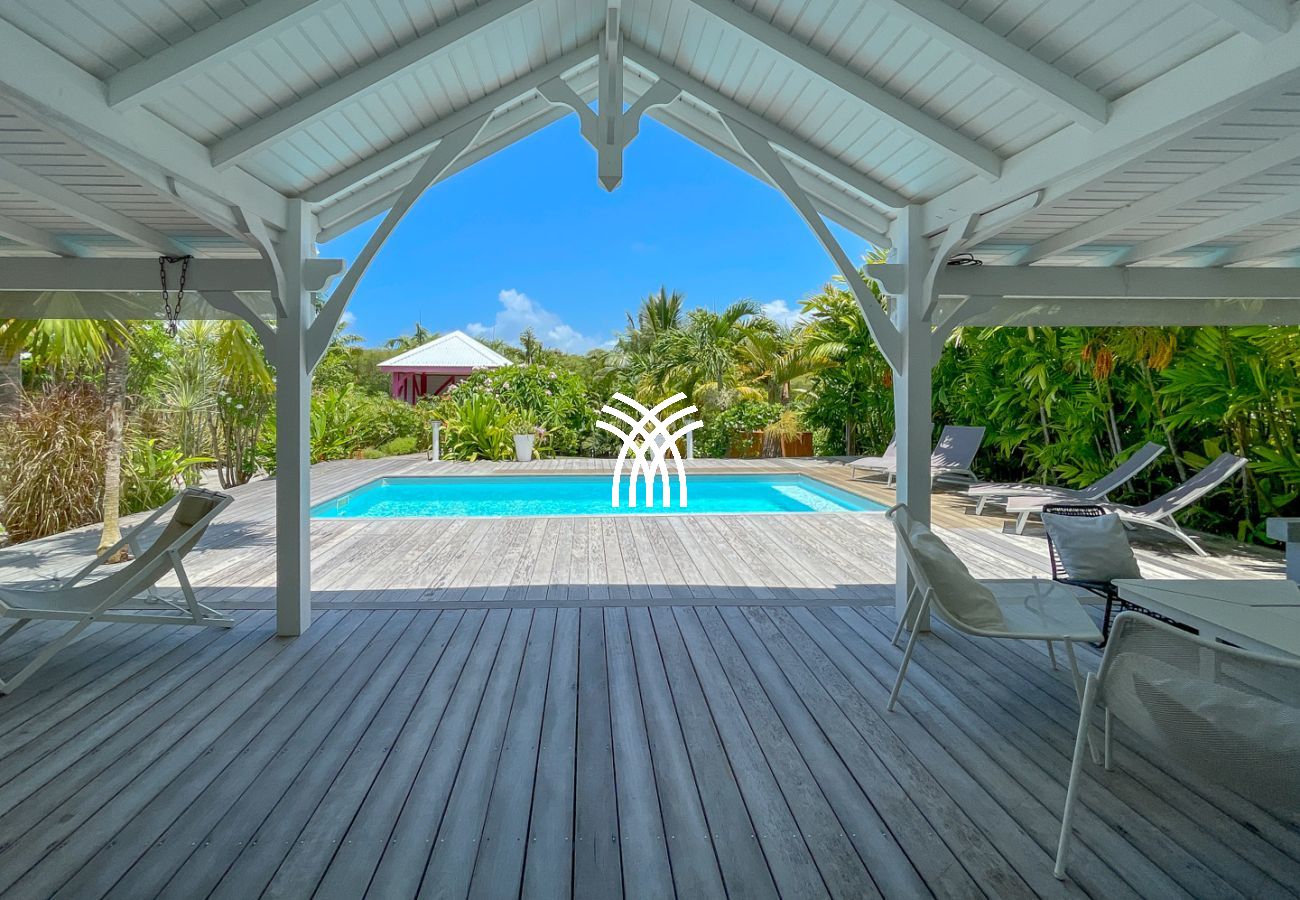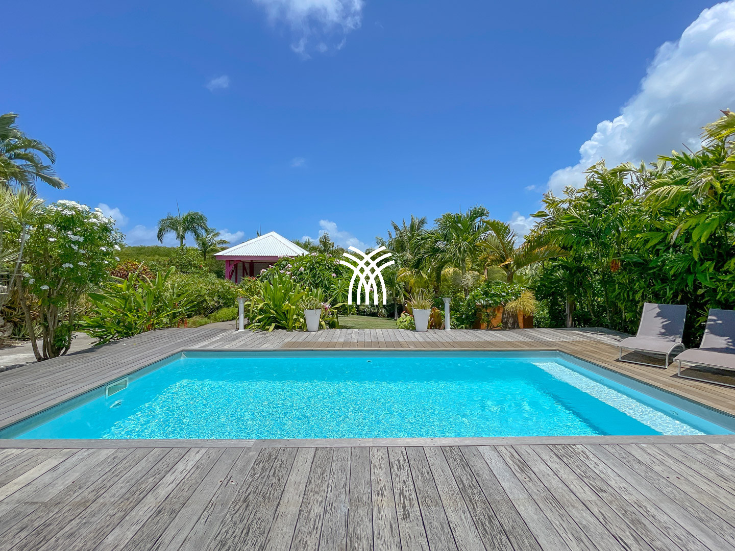 La Villa Katorz est une villa de charme en Guadeloupe située à Saint-François, offrant une vue mer panoramique et une belle piscine privée au sel de 5x10m. Pensée pour des séjours en toute sérénité, cette location de villa à Saint-François combine confort moderne et ambiance créole dans un cadre verdoyant et intime. La pièce de vie spacieuse s’ouvre sur une terrasse couverte donnant sur la piscine et un carbet, parfaits pour profiter de la douceur des soirées guadeloupéennes face à la mer.