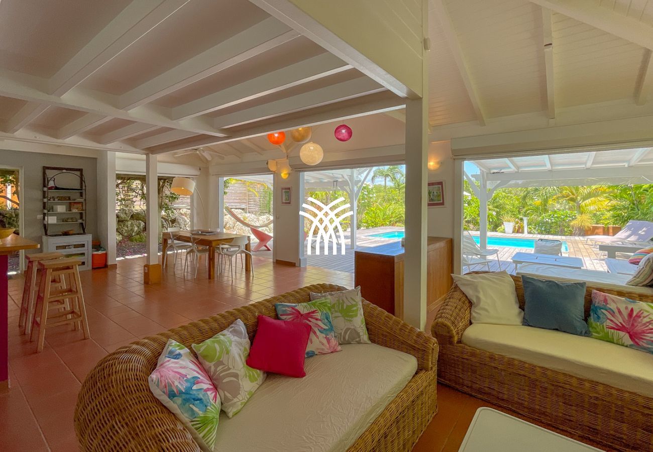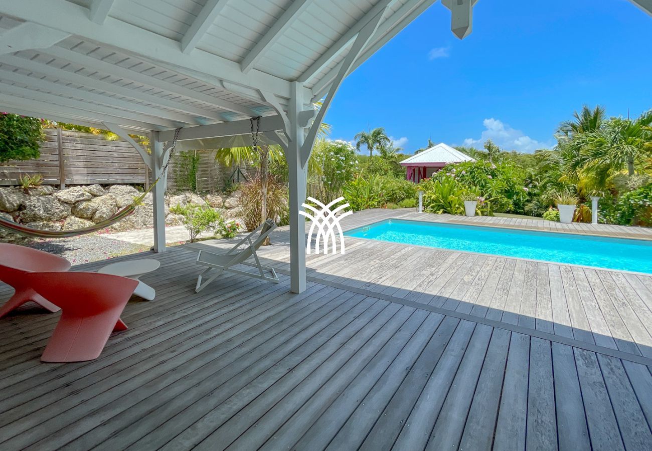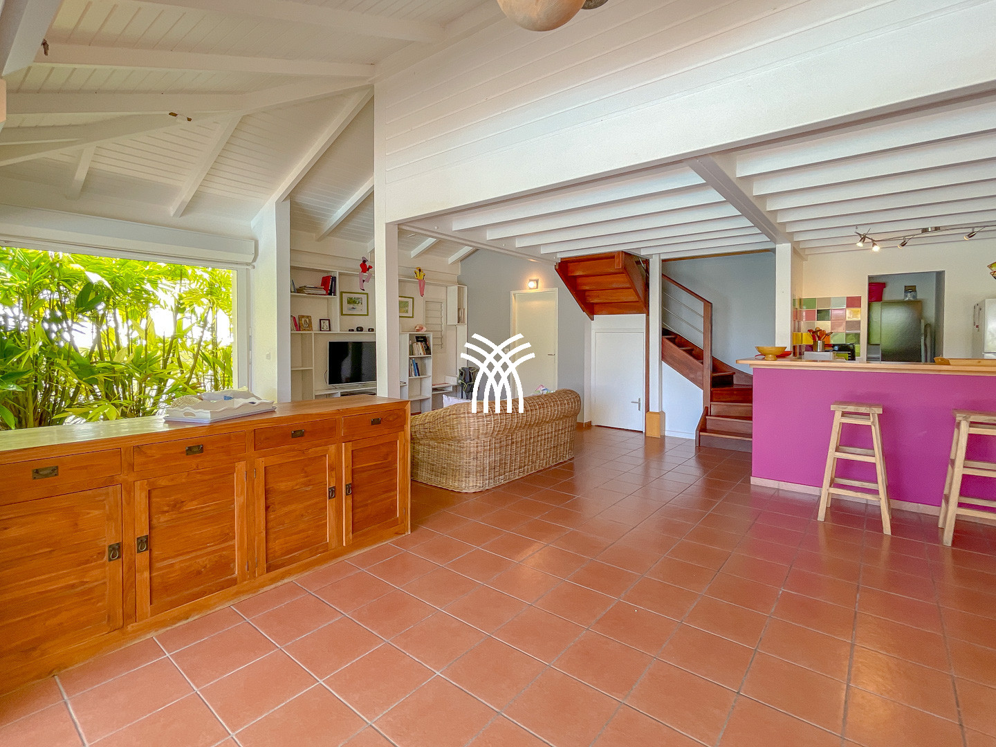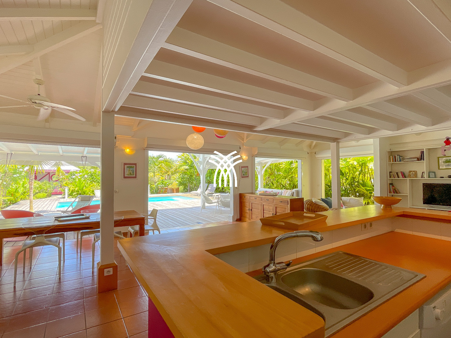La Villa Katorz est une villa de charme en Guadeloupe située à Saint-François, offrant une vue mer panoramique et une belle piscine privée au sel de 5x10m. Pensée pour des séjours en toute sérénité, cette location de villa à Saint-François combine confort moderne et ambiance créole dans un cadre verdoyant et intime. La pièce de vie spacieuse s’ouvre sur une terrasse couverte donnant sur la piscine et un carbet, parfaits pour profiter de la douceur des soirées guadeloupéennes face à la mer.