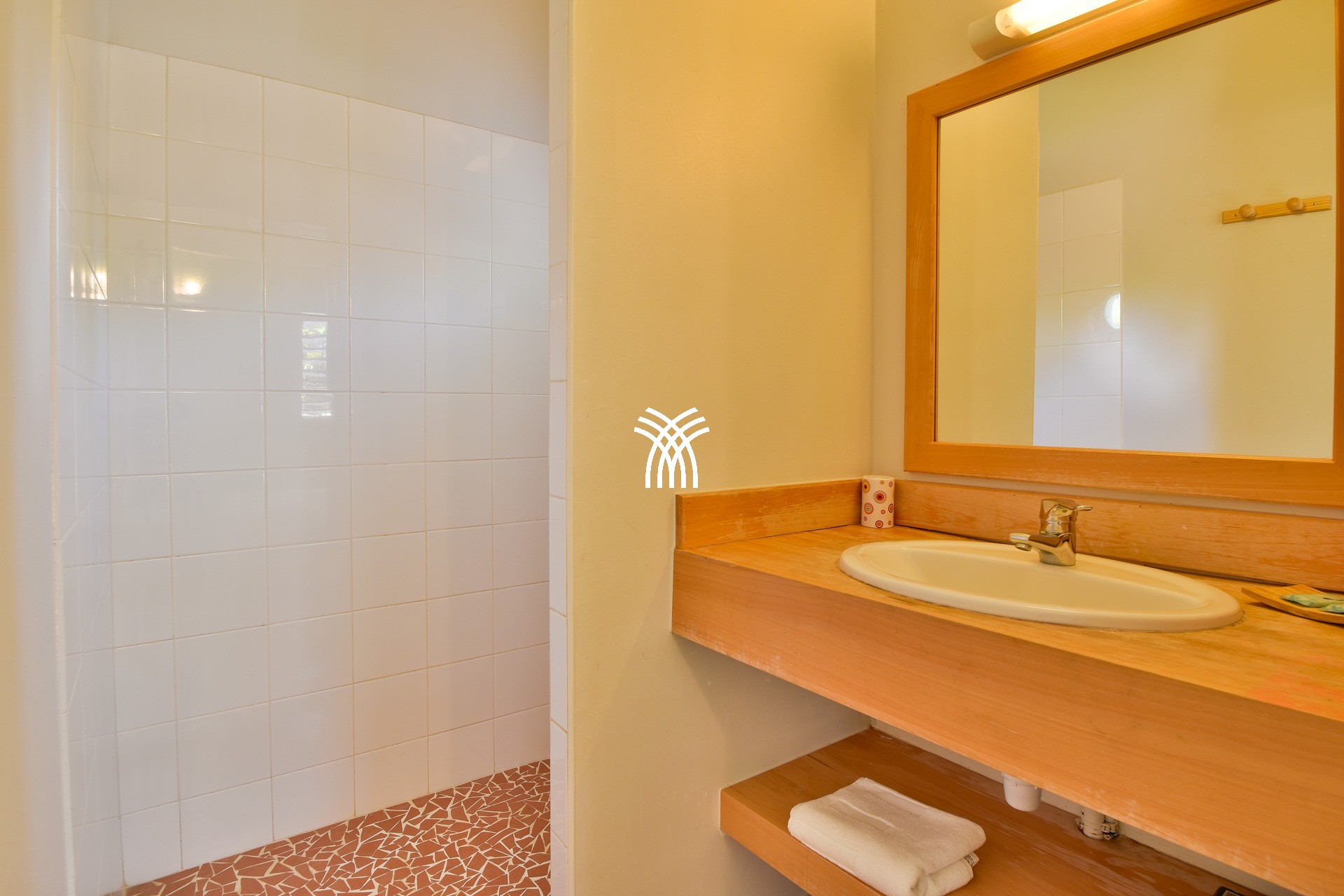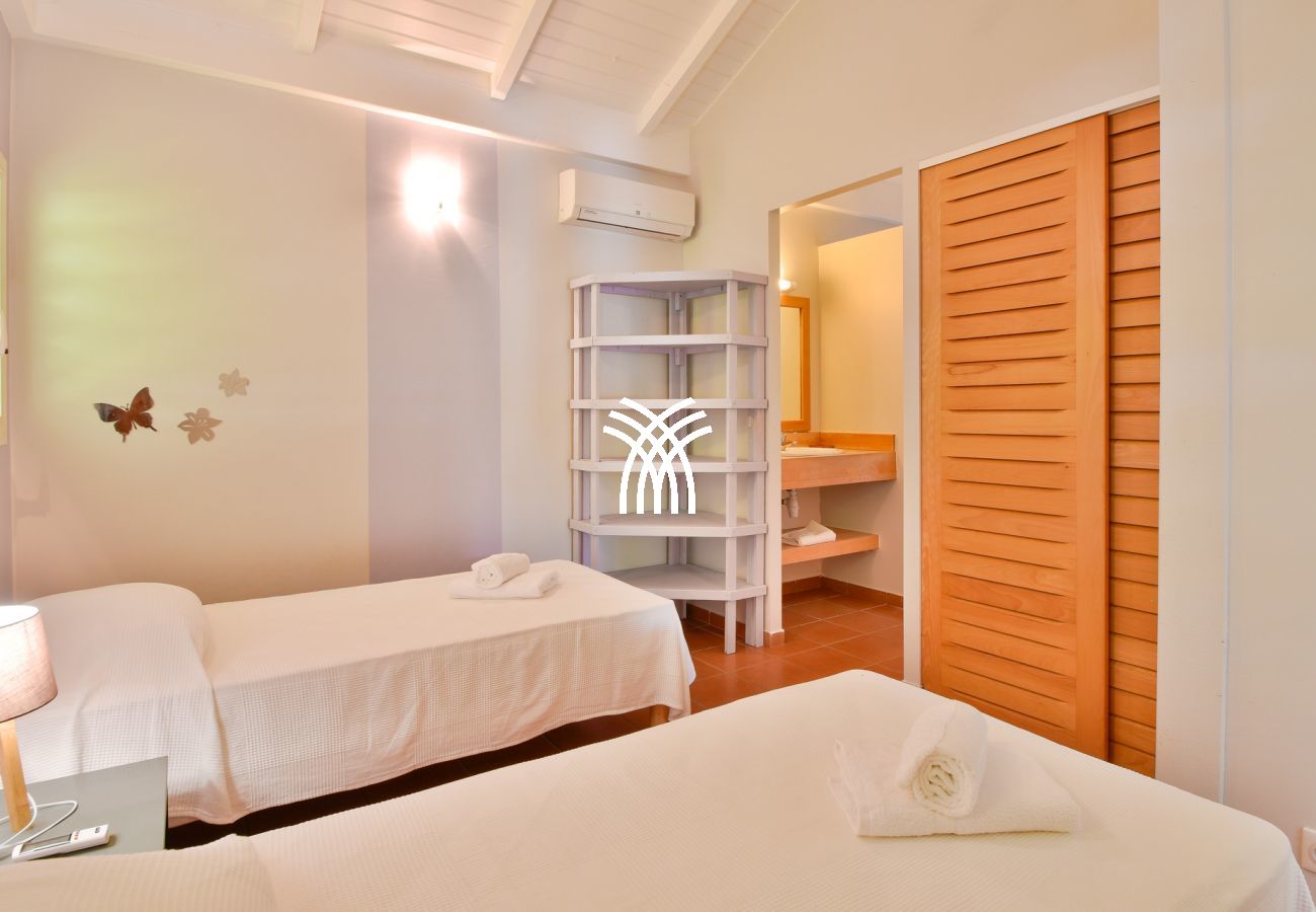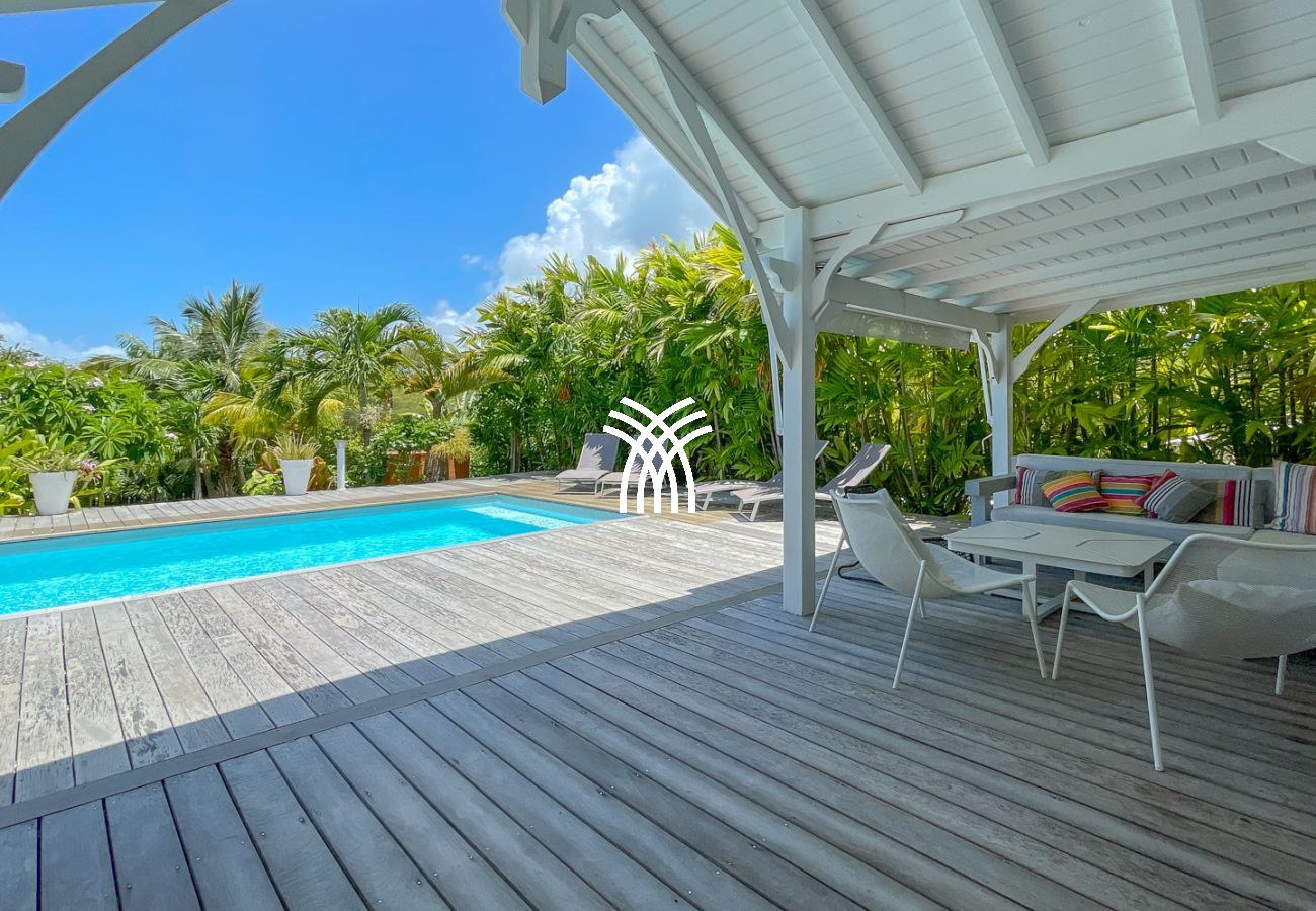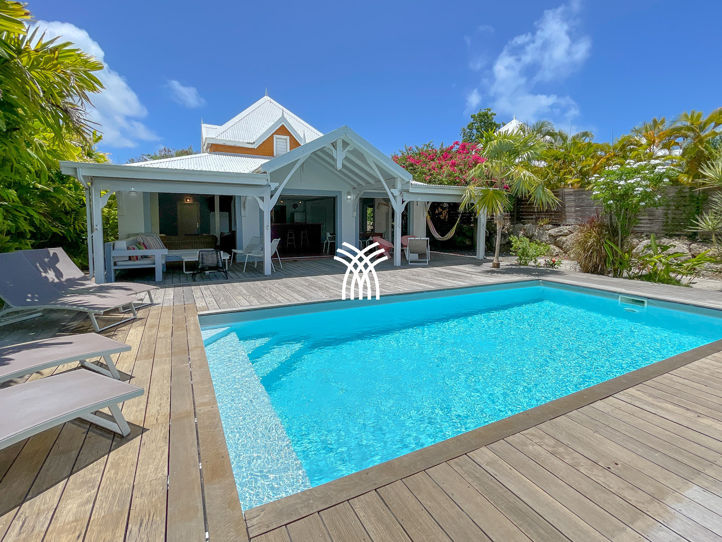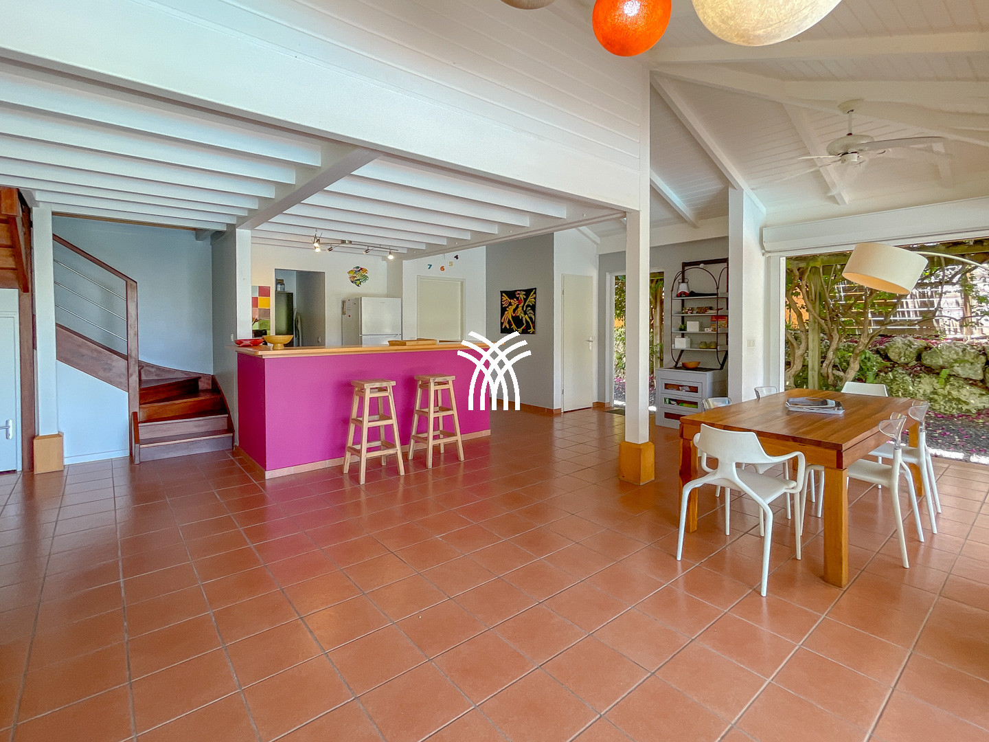 La Villa Katorz est une villa de charme en Guadeloupe située à Saint-François, offrant une vue mer panoramique et une belle piscine privée au sel de 5x10m. Pensée pour des séjours en toute sérénité, cette location de villa à Saint-François combine confort moderne et ambiance créole dans un cadre verdoyant et intime. La pièce de vie spacieuse s’ouvre sur une terrasse couverte donnant sur la piscine et un carbet, parfaits pour profiter de la douceur des soirées guadeloupéennes face à la mer.