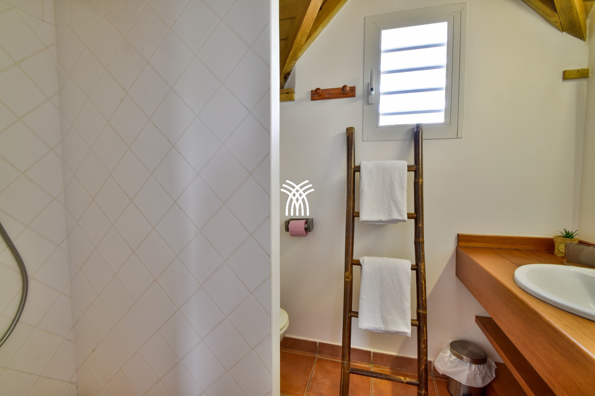 La Villa Katorz est une villa de charme en Guadeloupe située à Saint-François, offrant une vue mer panoramique et une belle piscine privée au sel de 5x10m. Pensée pour des séjours en toute sérénité, cette location de villa à Saint-François combine confort moderne et ambiance créole dans un cadre verdoyant et intime. La pièce de vie spacieuse s’ouvre sur une terrasse couverte donnant sur la piscine et un carbet, parfaits pour profiter de la douceur des soirées guadeloupéennes face à la mer.