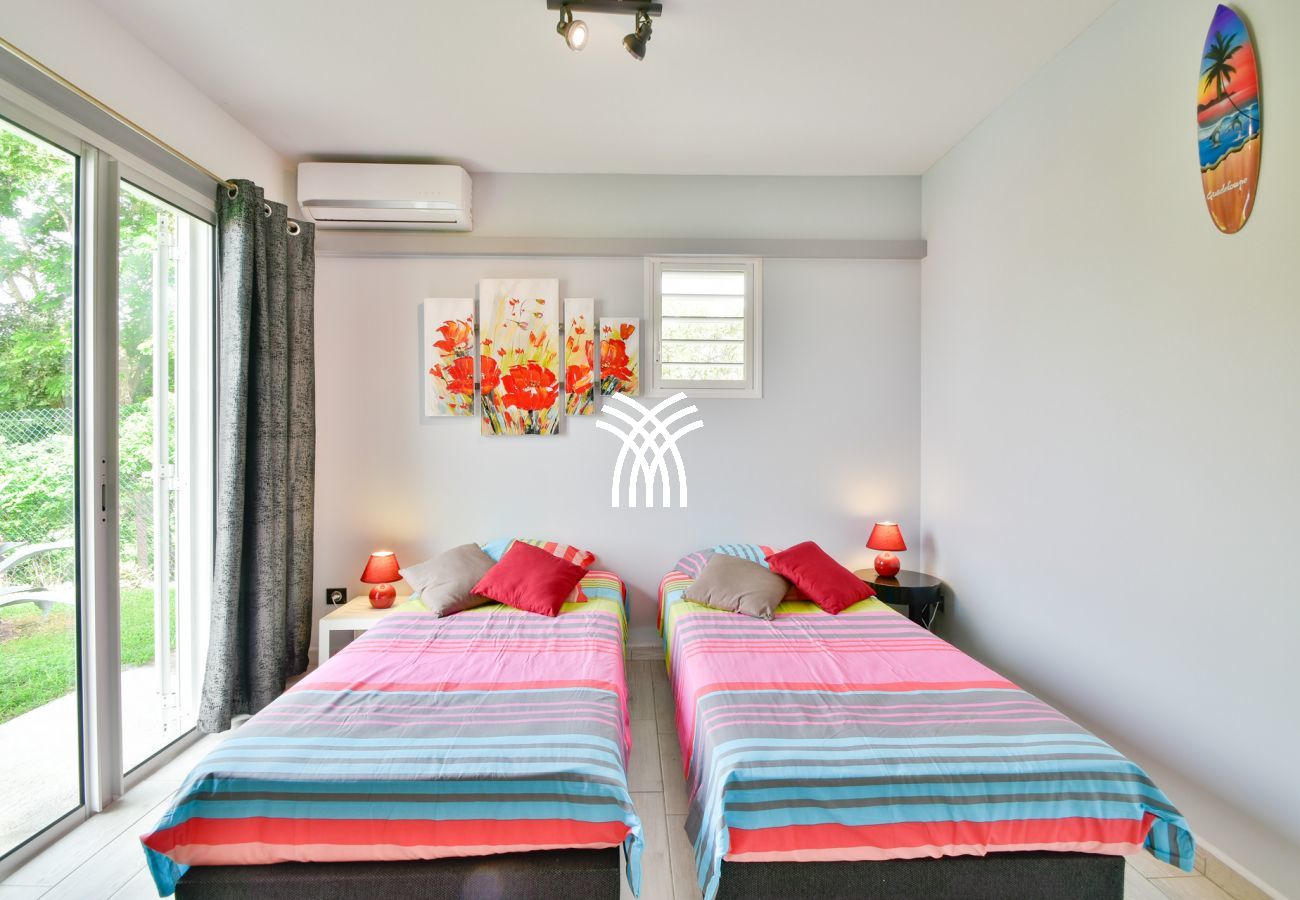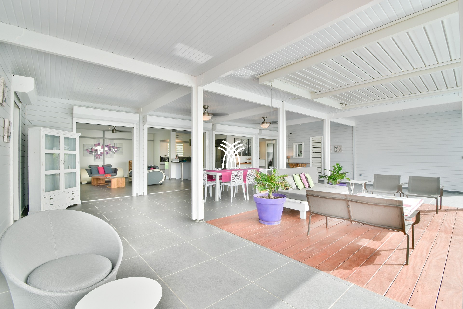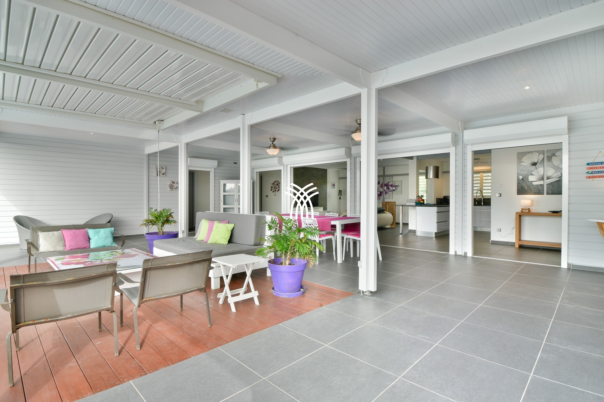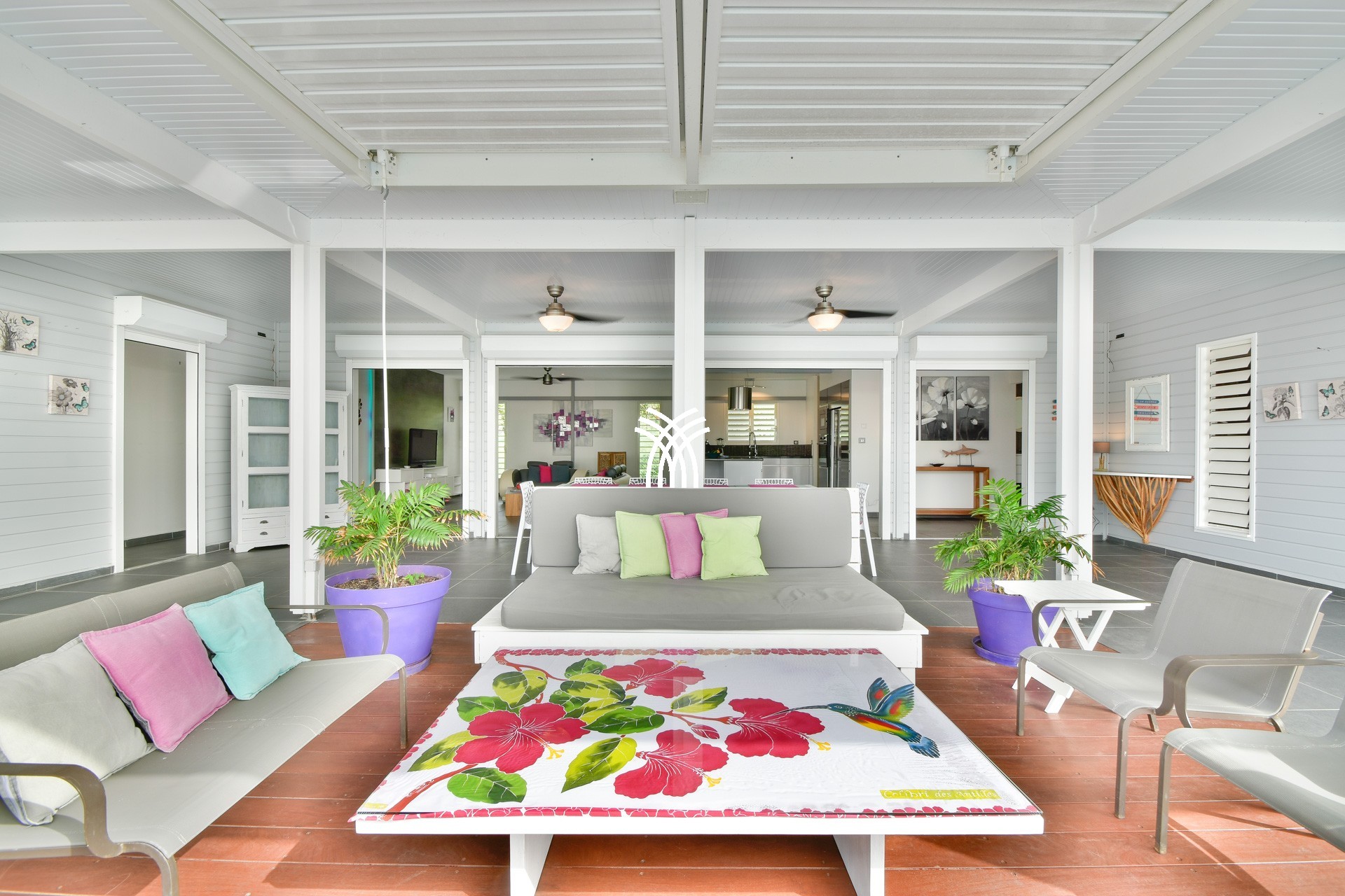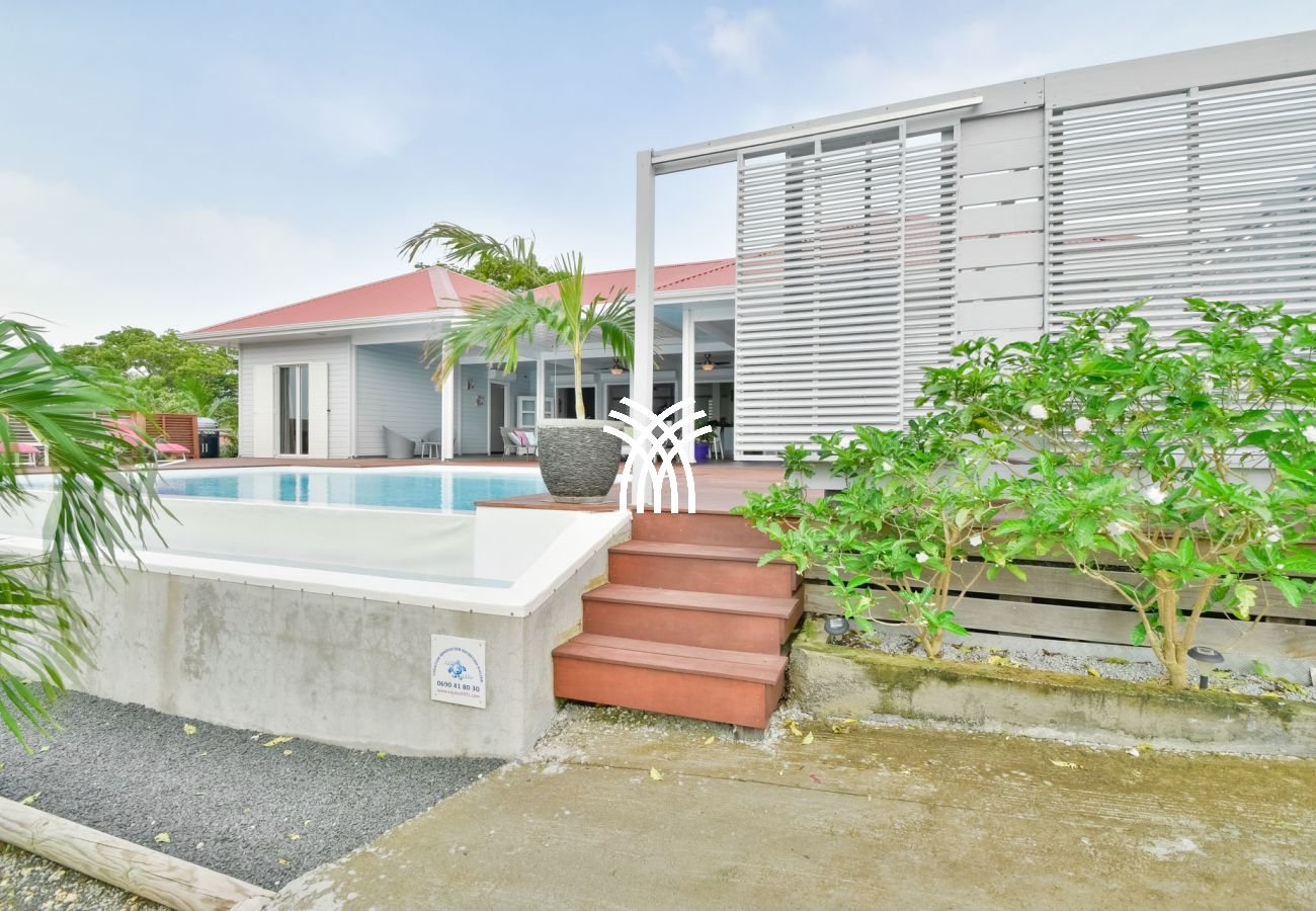La Villa Katorz est une villa de charme en Guadeloupe située à Saint-François, offrant une vue mer panoramique et une belle piscine privée au sel de 5x10m. Pensée pour des séjours en toute sérénité, cette location de villa à Saint-François combine confort moderne et ambiance créole dans un cadre verdoyant et intime. La pièce de vie spacieuse s’ouvre sur une terrasse couverte donnant sur la piscine et un carbet, parfaits pour profiter de la douceur des soirées guadeloupéennes face à la mer.