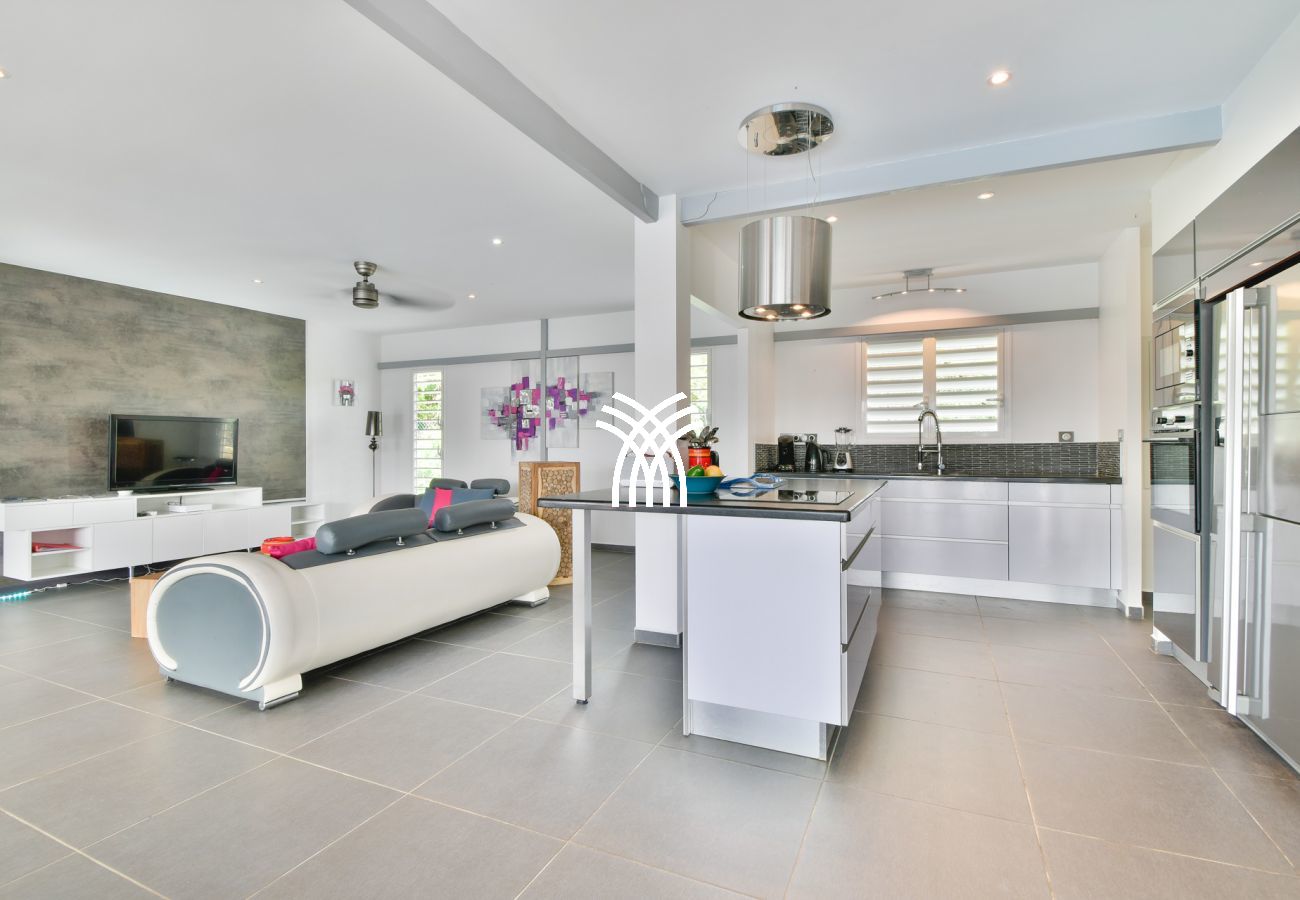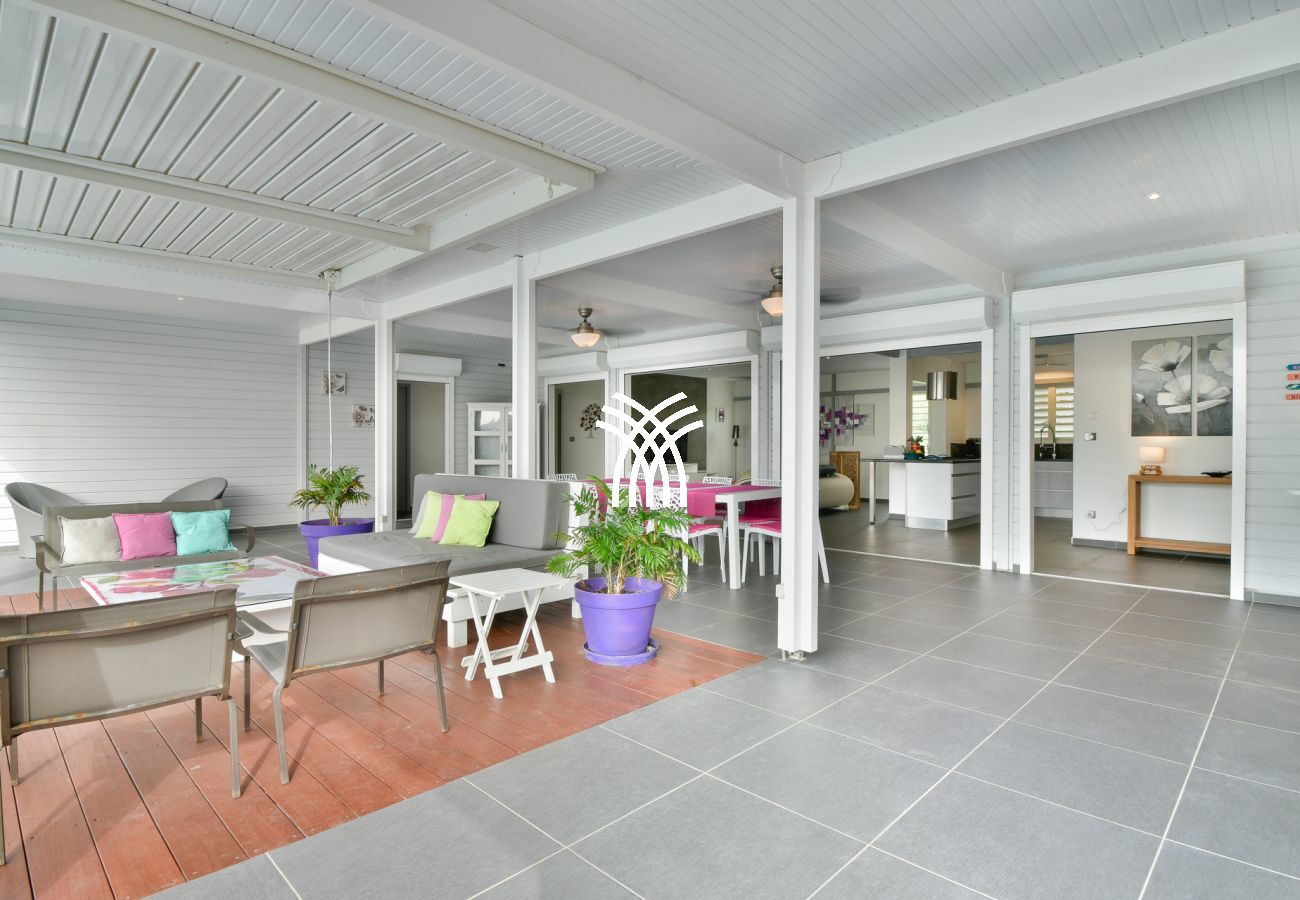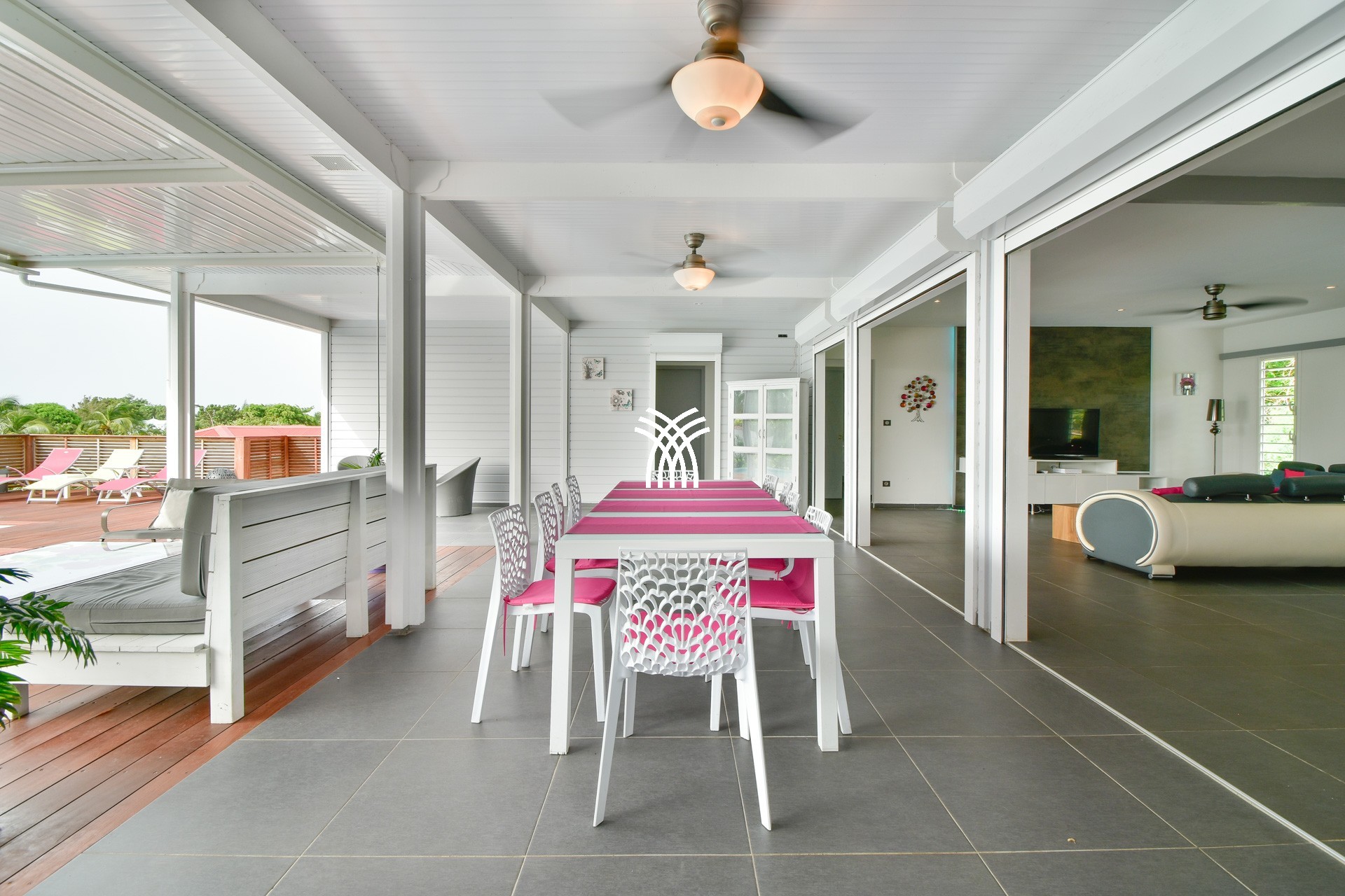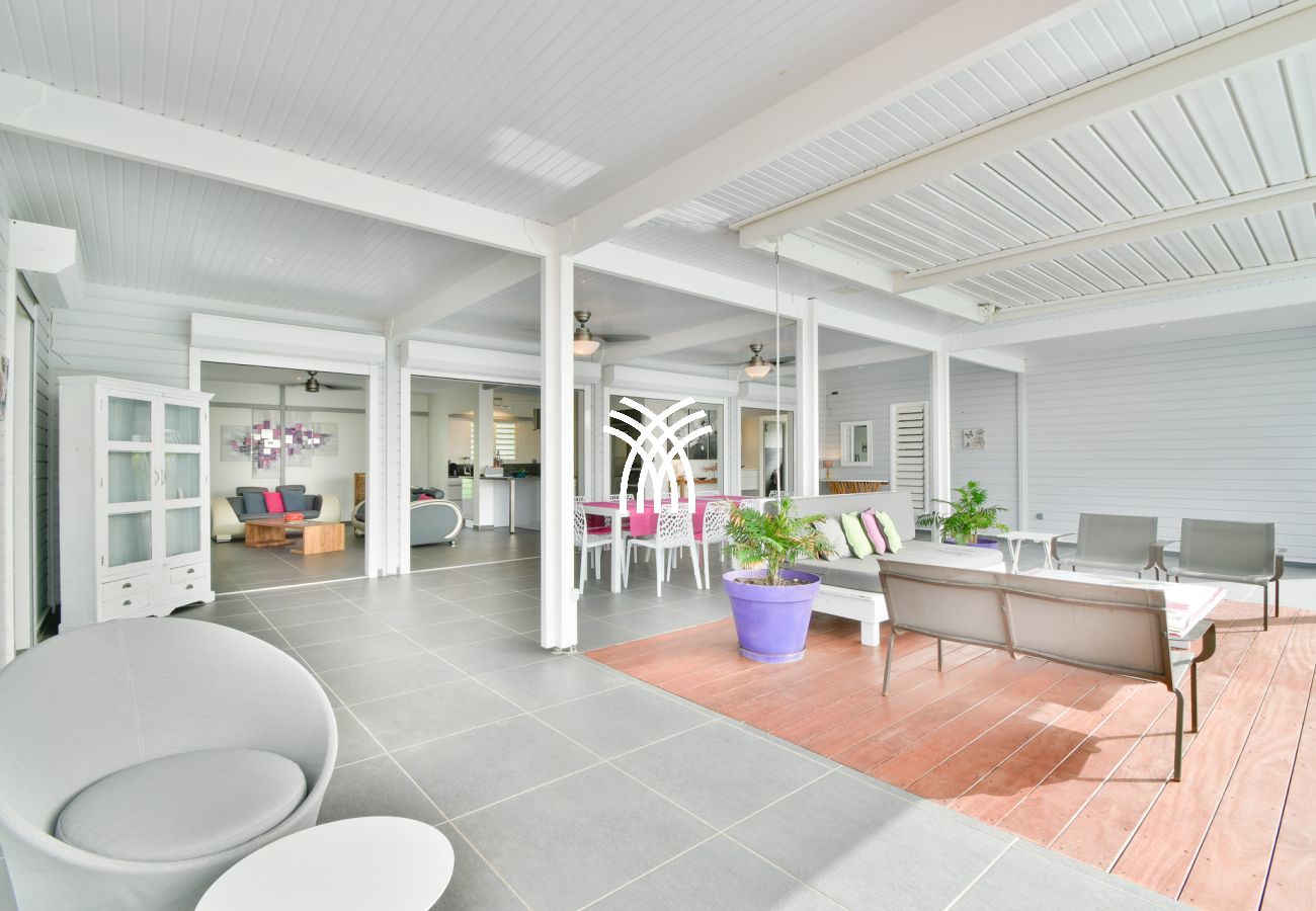 La Villa Katorz est une villa de charme en Guadeloupe située à Saint-François, offrant une vue mer panoramique et une belle piscine privée au sel de 5x10m. Pensée pour des séjours en toute sérénité, cette location de villa à Saint-François combine confort moderne et ambiance créole dans un cadre verdoyant et intime. La pièce de vie spacieuse s’ouvre sur une terrasse couverte donnant sur la piscine et un carbet, parfaits pour profiter de la douceur des soirées guadeloupéennes face à la mer.
