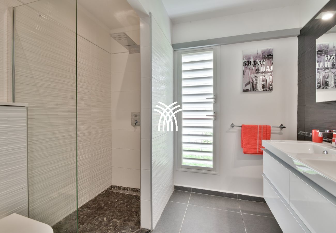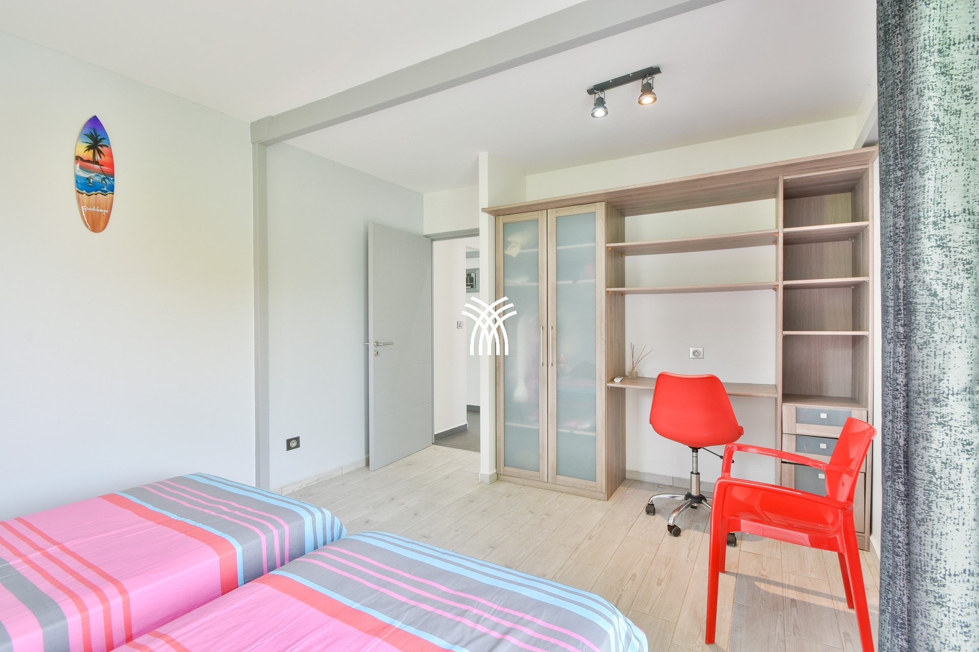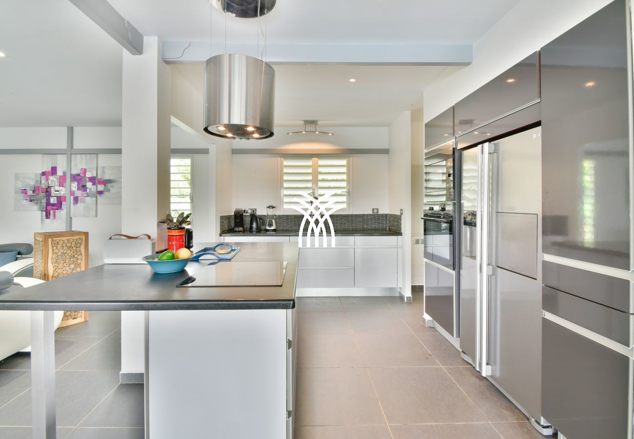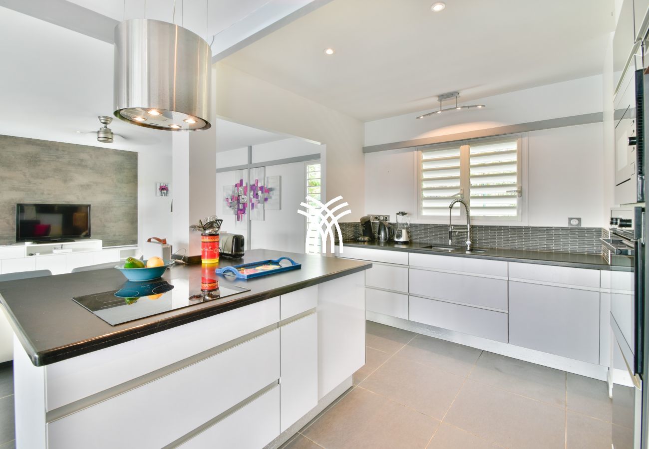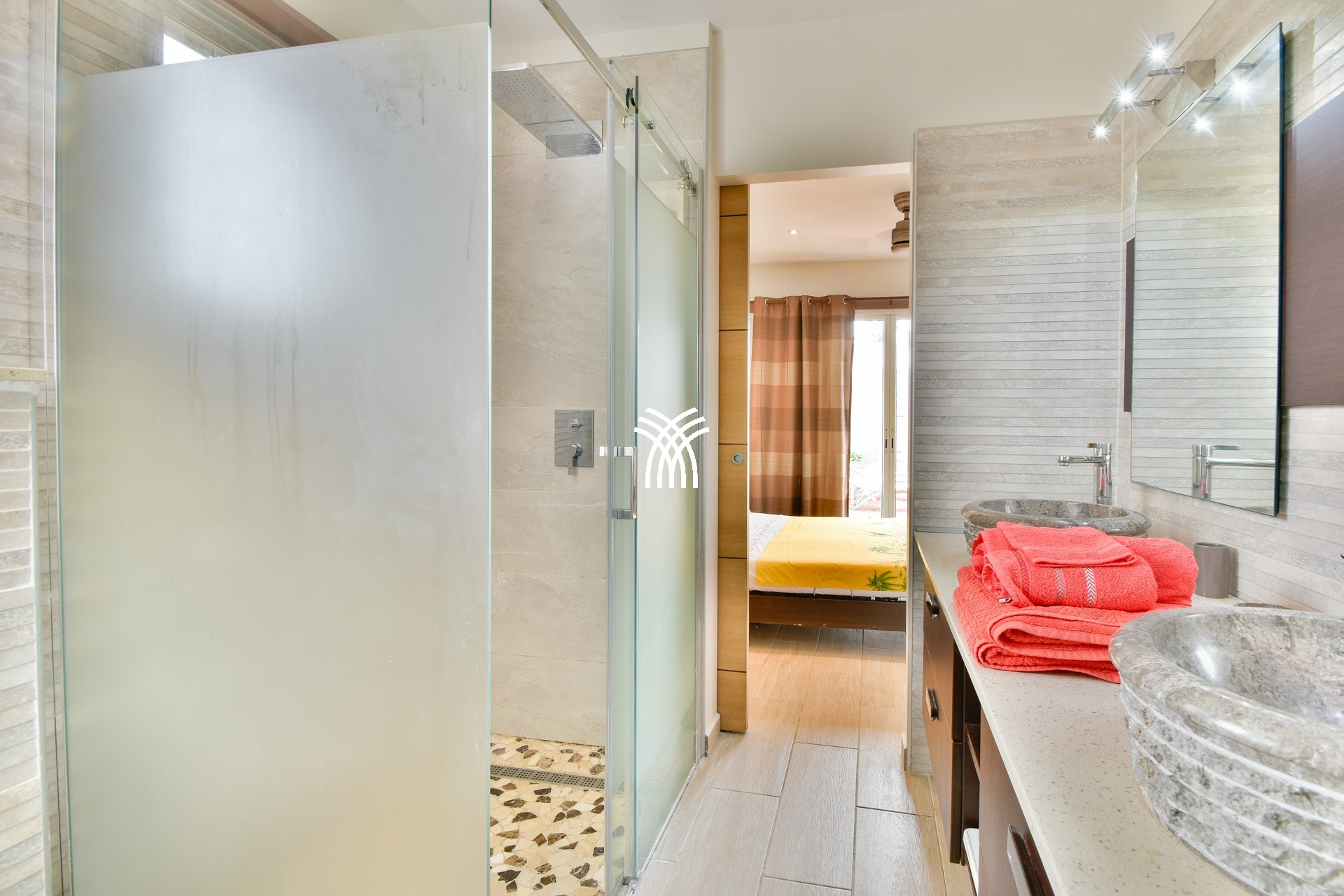 La Villa Katorz est une villa de charme en Guadeloupe située à Saint-François, offrant une vue mer panoramique et une belle piscine privée au sel de 5x10m. Pensée pour des séjours en toute sérénité, cette location de villa à Saint-François combine confort moderne et ambiance créole dans un cadre verdoyant et intime. La pièce de vie spacieuse s’ouvre sur une terrasse couverte donnant sur la piscine et un carbet, parfaits pour profiter de la douceur des soirées guadeloupéennes face à la mer.