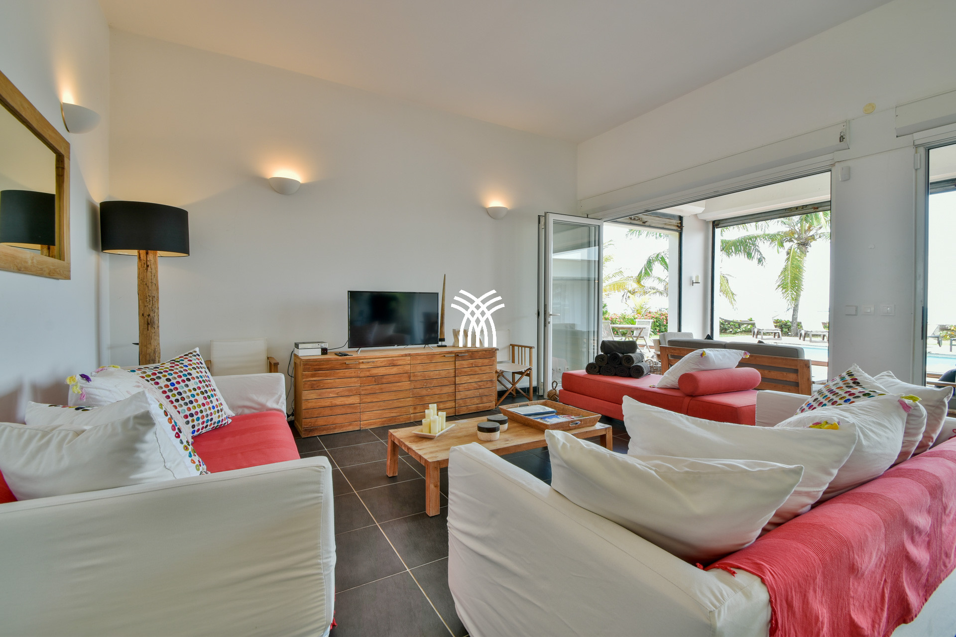 La situation de cette villa haut de gamme, en bord de mer, est exceptionnelle. La plage aux pieds de la maison, un splendide panorama, de beaux volumes et une élégante décoration, en font une location de vacances d’exception.