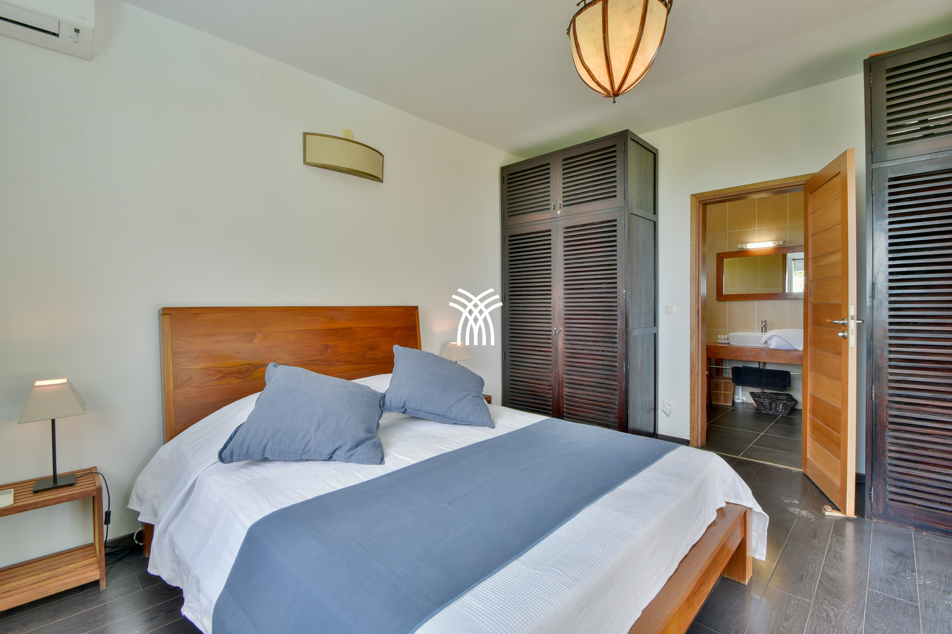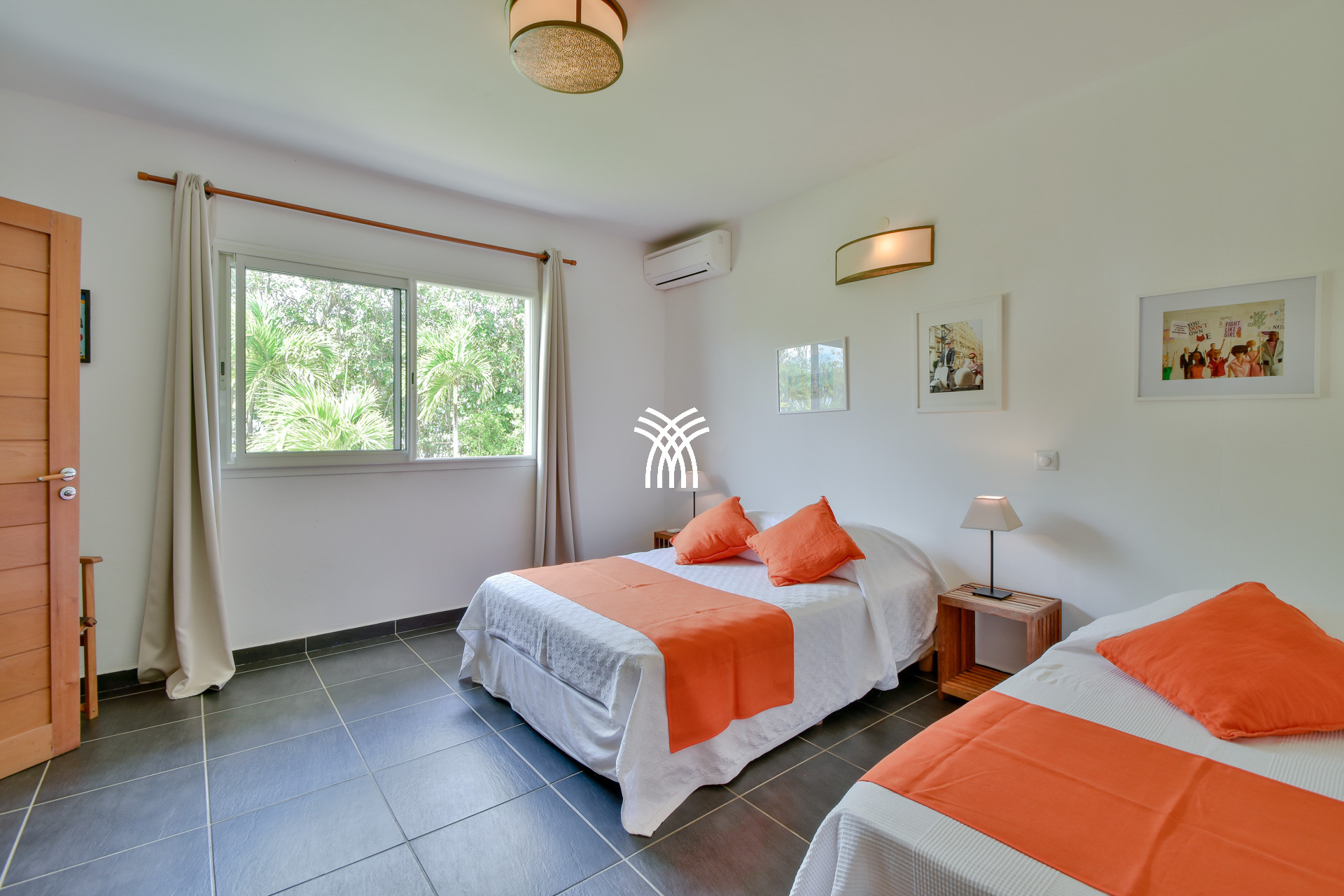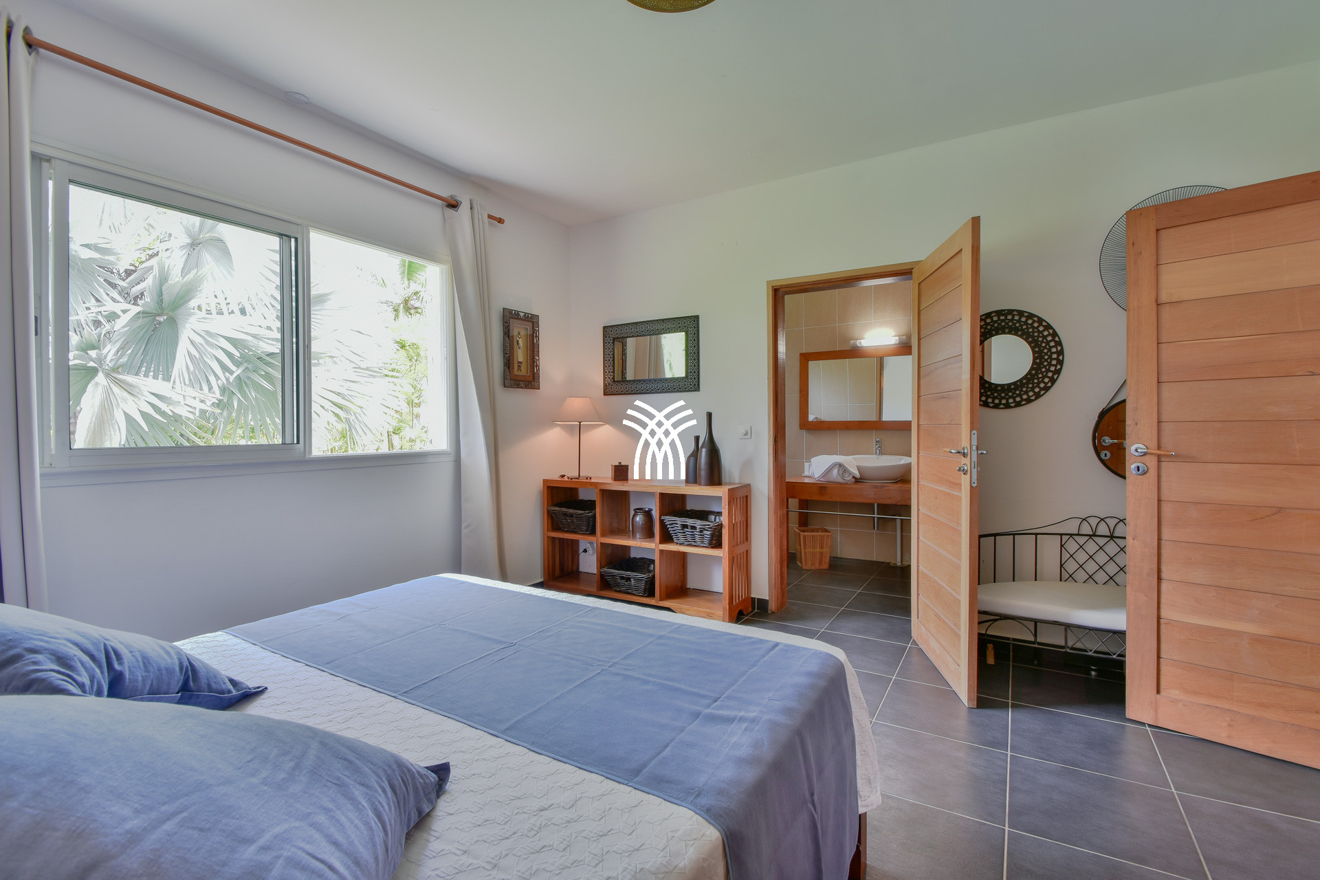 La villa Abawak, de plain-pied, dispose de 4 chambres climatisées décorées avec goût pour offrir confort et sérénité. La suite parentale principale est un véritable cocon avec lit king-size, dressing et salle d'eau privée. Une seconde suite parentale offre une expérience unique avec une douche en plein air sous le ciel étoilé de la Guadeloupe.