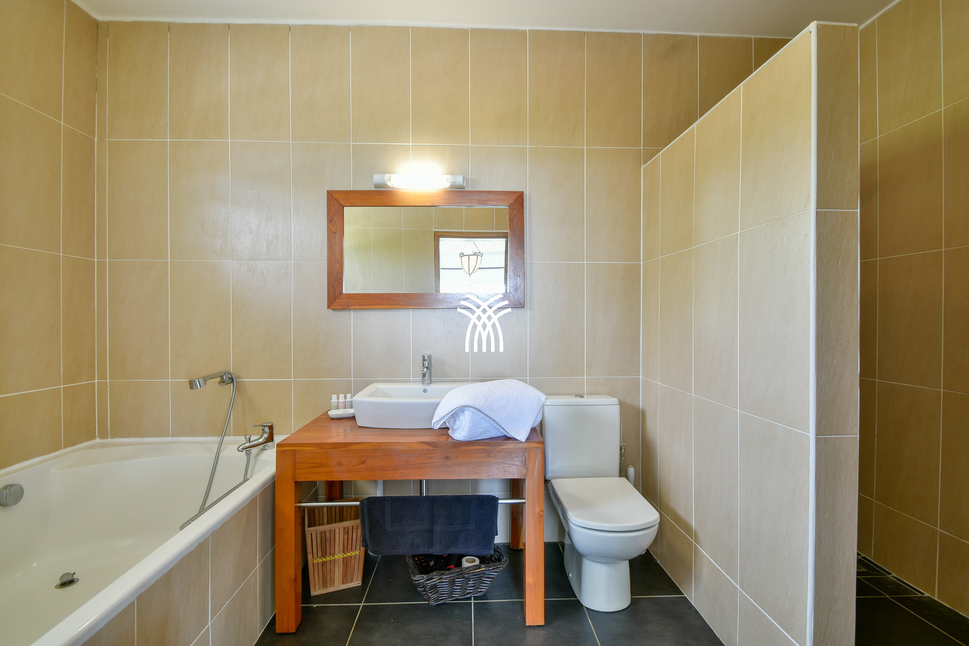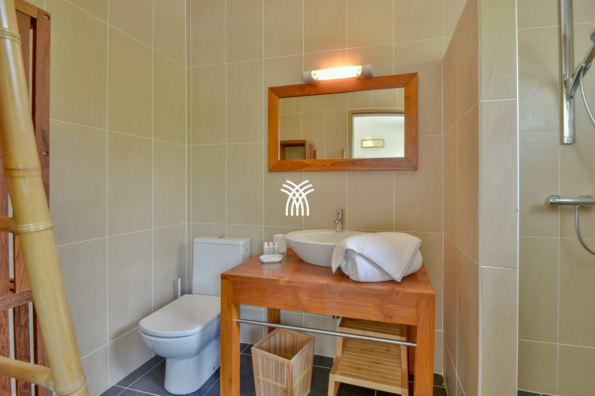 Les deux chambres jumelles, avec lits queen-size, s'ouvrent sur une galerie couverte et partagent une salle d'eau moderne.