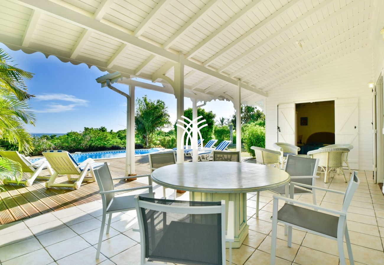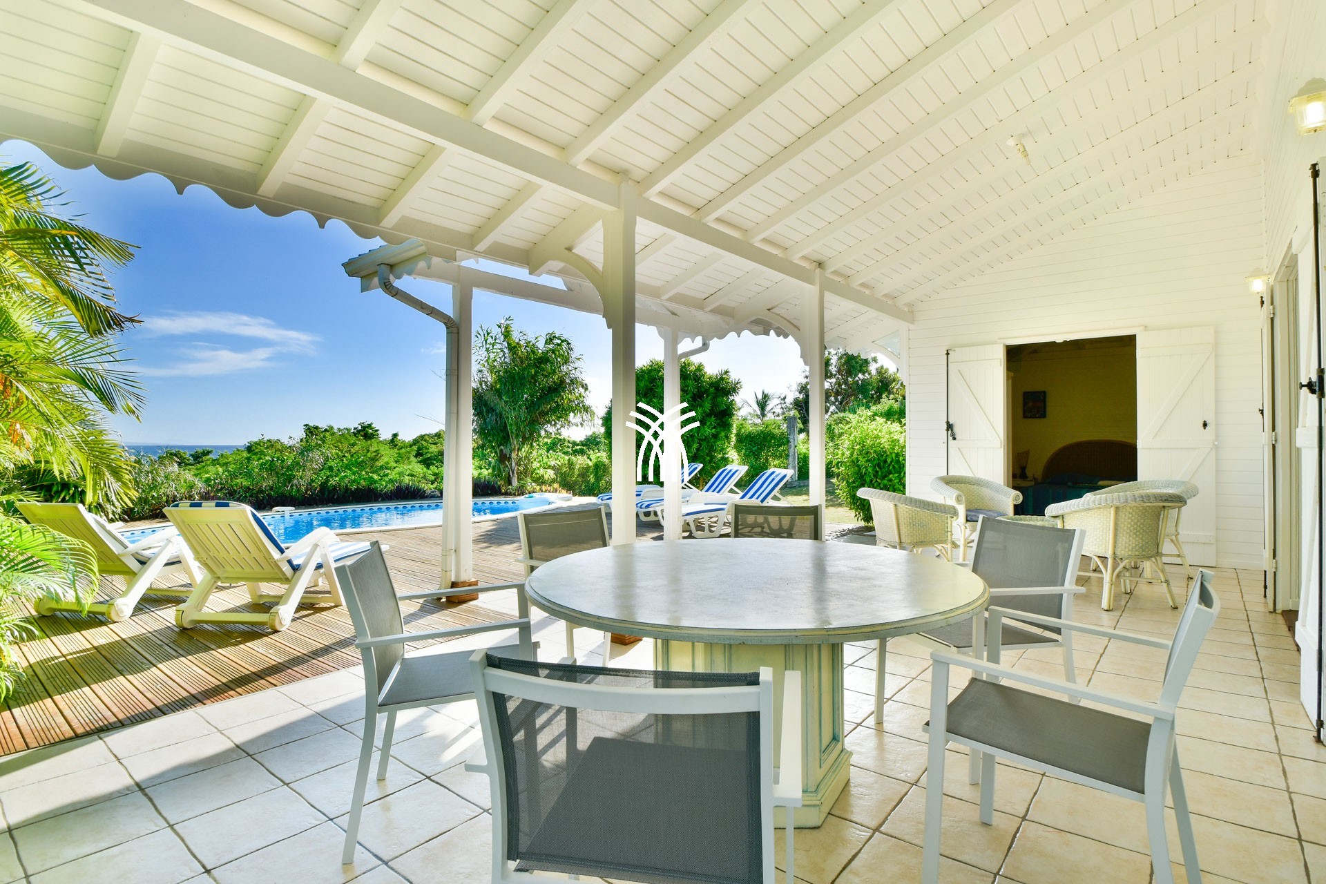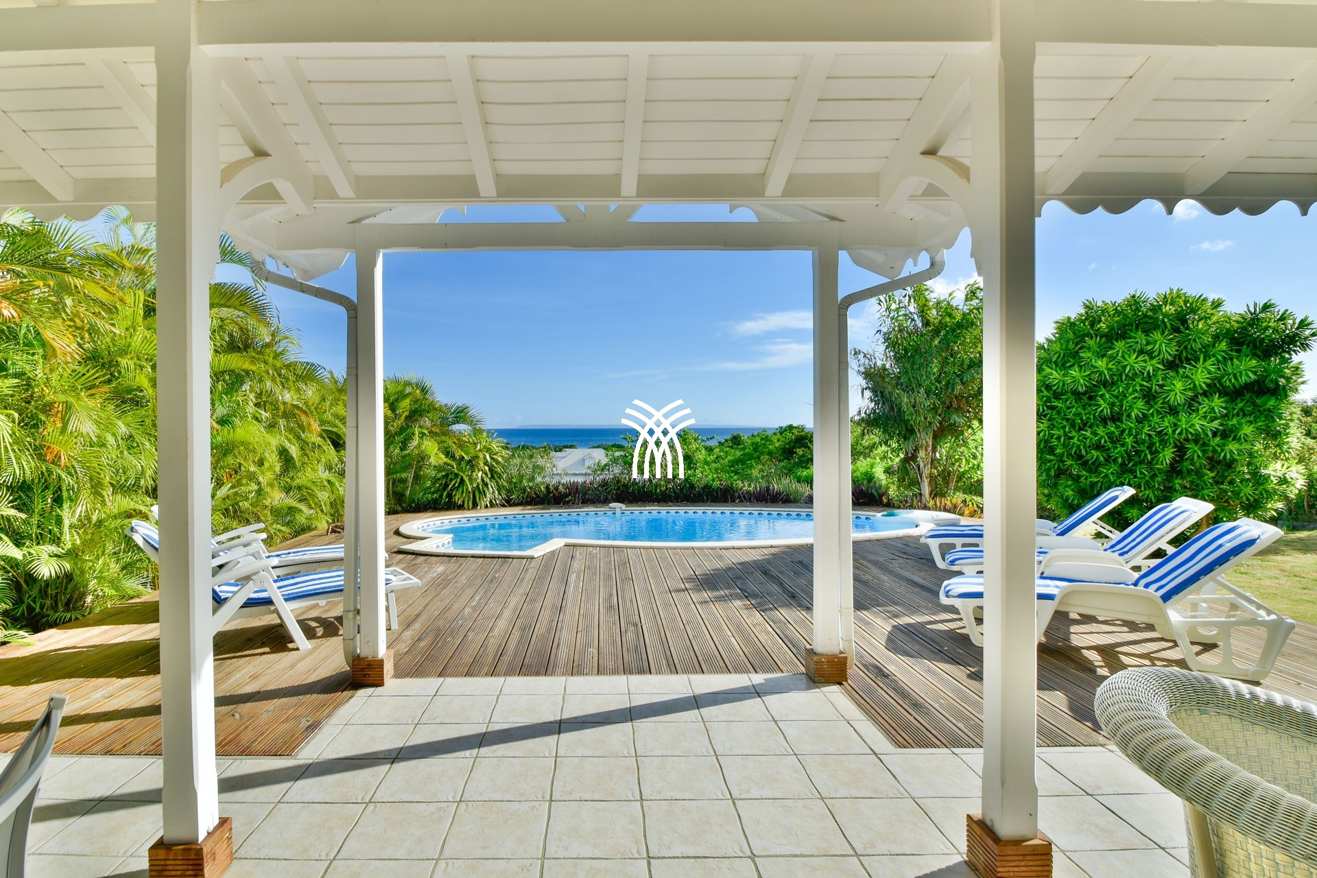 La Villa Katorz est une villa de charme en Guadeloupe située à Saint-François, offrant une vue mer panoramique et une belle piscine privée au sel de 5x10m. Pensée pour des séjours en toute sérénité, cette location de villa à Saint-François combine confort moderne et ambiance créole dans un cadre verdoyant et intime. La pièce de vie spacieuse s’ouvre sur une terrasse couverte donnant sur la piscine et un carbet, parfaits pour profiter de la douceur des soirées guadeloupéennes face à la mer.