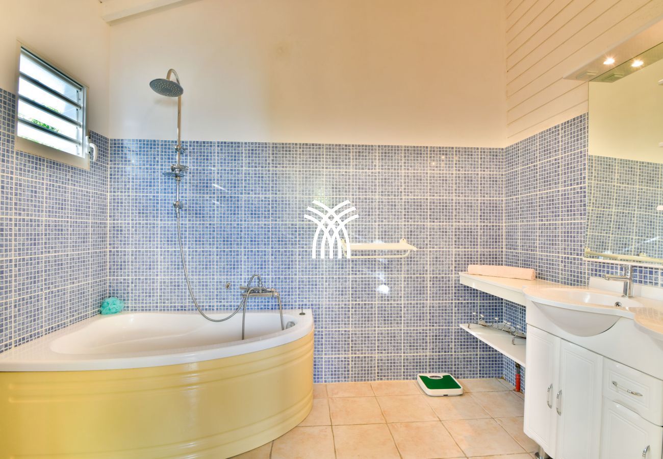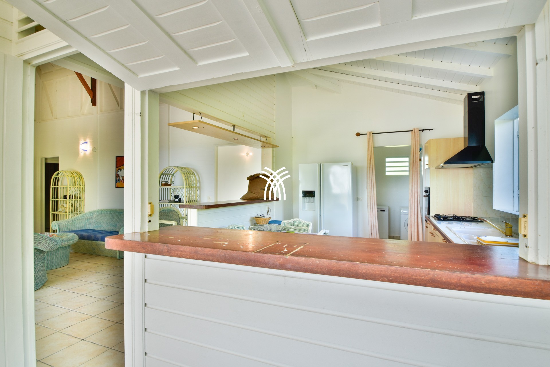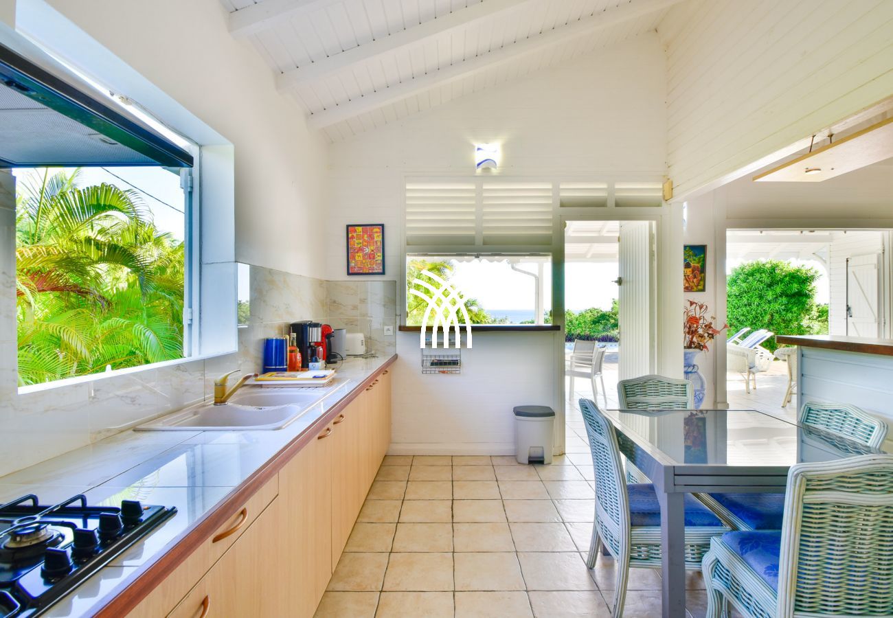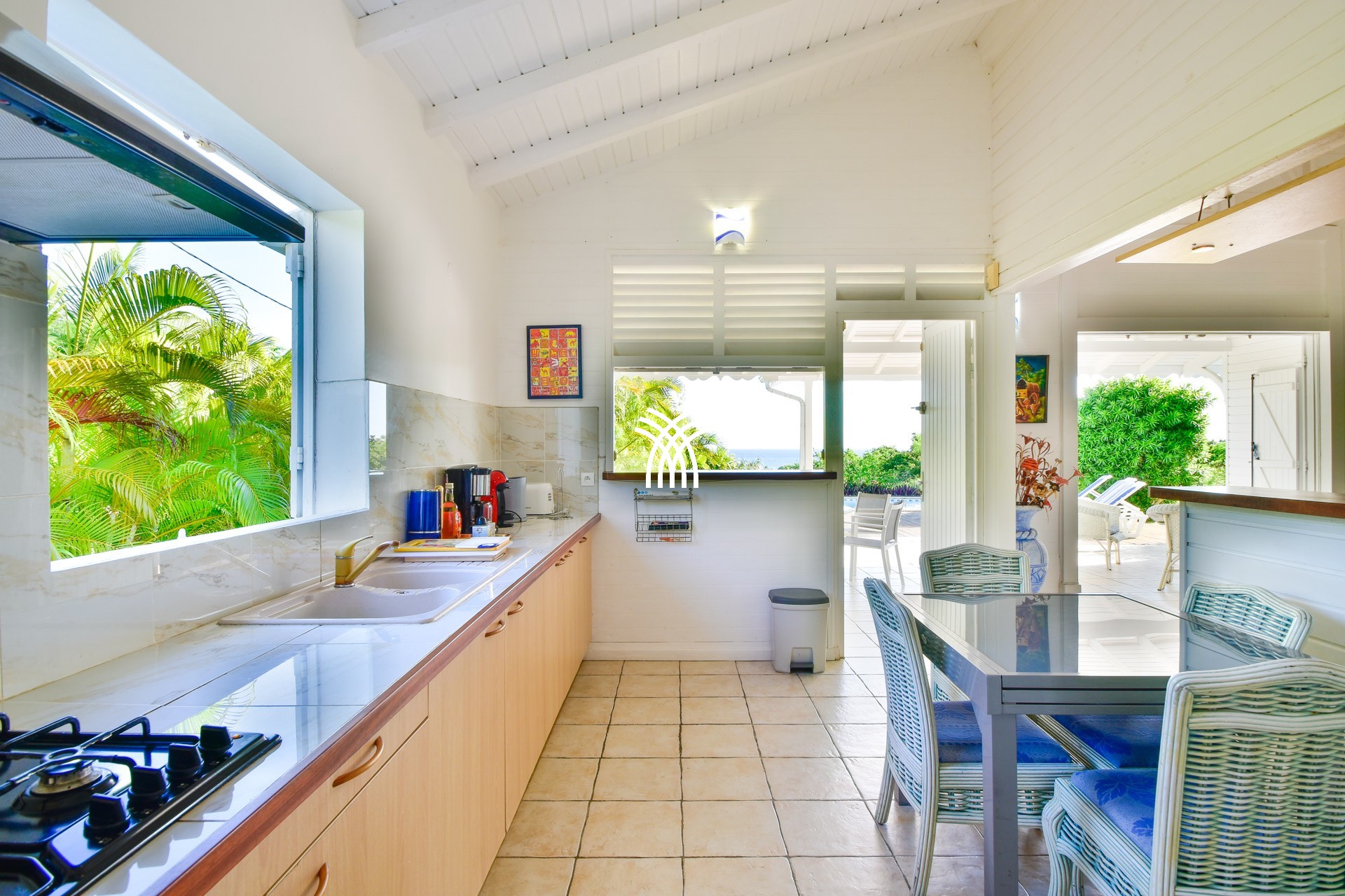 La Villa Katorz est une villa de charme en Guadeloupe située à Saint-François, offrant une vue mer panoramique et une belle piscine privée au sel de 5x10m. Pensée pour des séjours en toute sérénité, cette location de villa à Saint-François combine confort moderne et ambiance créole dans un cadre verdoyant et intime. La pièce de vie spacieuse s’ouvre sur une terrasse couverte donnant sur la piscine et un carbet, parfaits pour profiter de la douceur des soirées guadeloupéennes face à la mer.