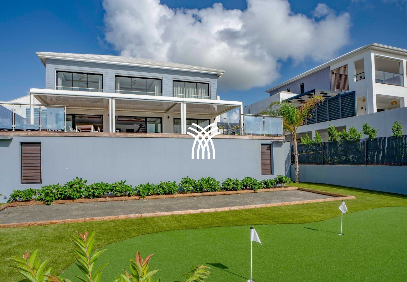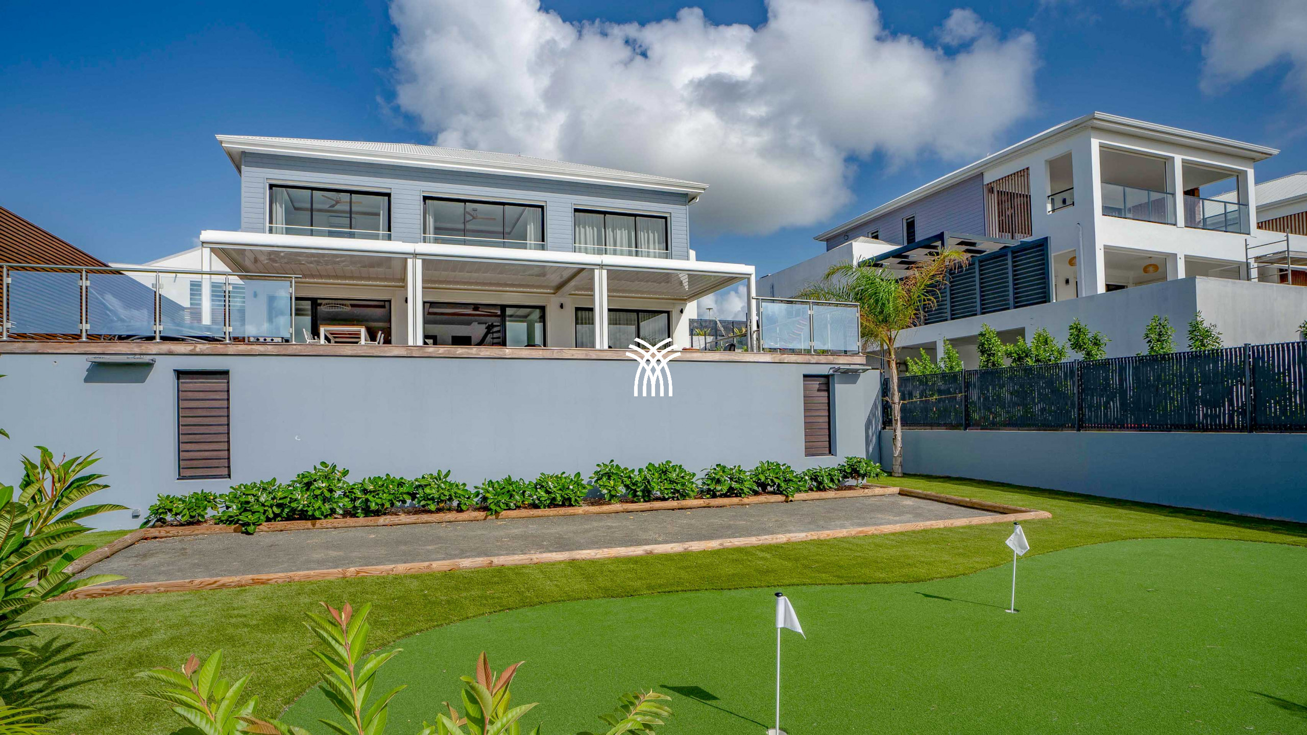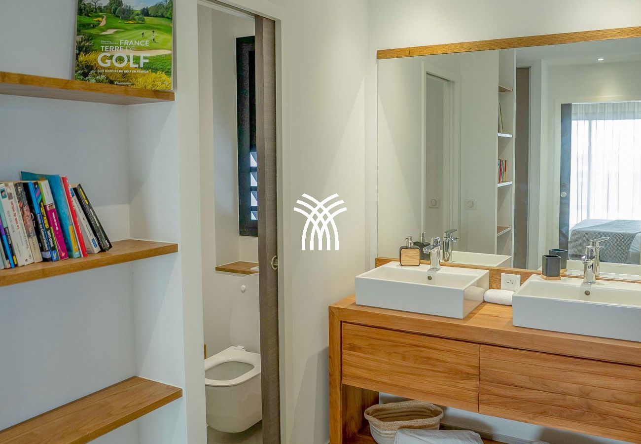 Les espaces extérieurs de la villa sont un véritable havre de détente. Une piscine privée de 8 x 3,5 mètres entourée de chaises longues vous invite à vous détendre, tandis qu'un green de golf ajoute une touche ludique et unique à votre séjour. Les multiples espaces de détente, répartis entre l'intérieur et l'extérieur, offrent des espaces parfaits pour se reposer, se retrouver en famille ou entre amis, ou simplement admirer le paysage.