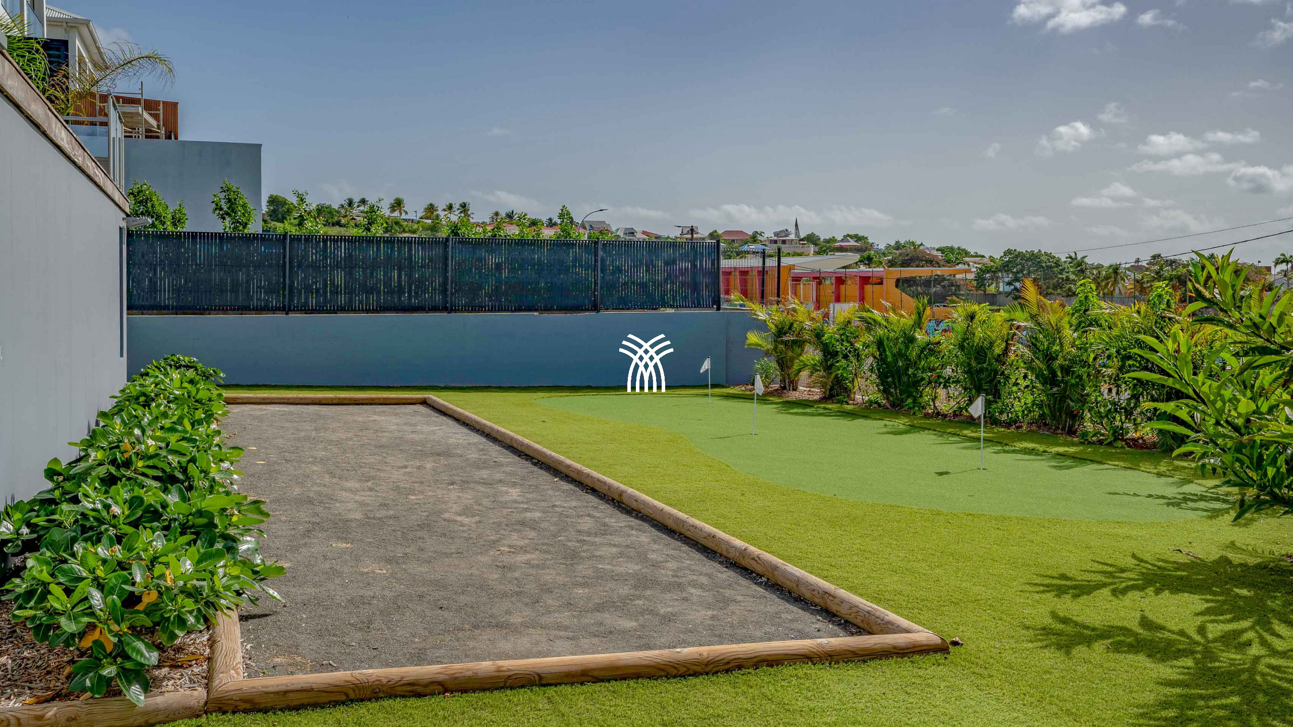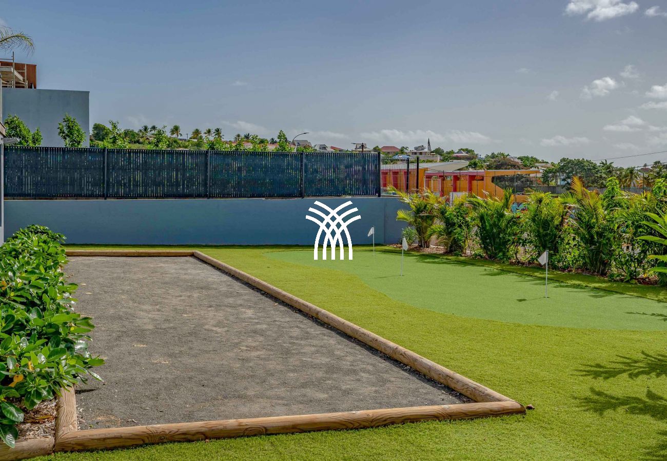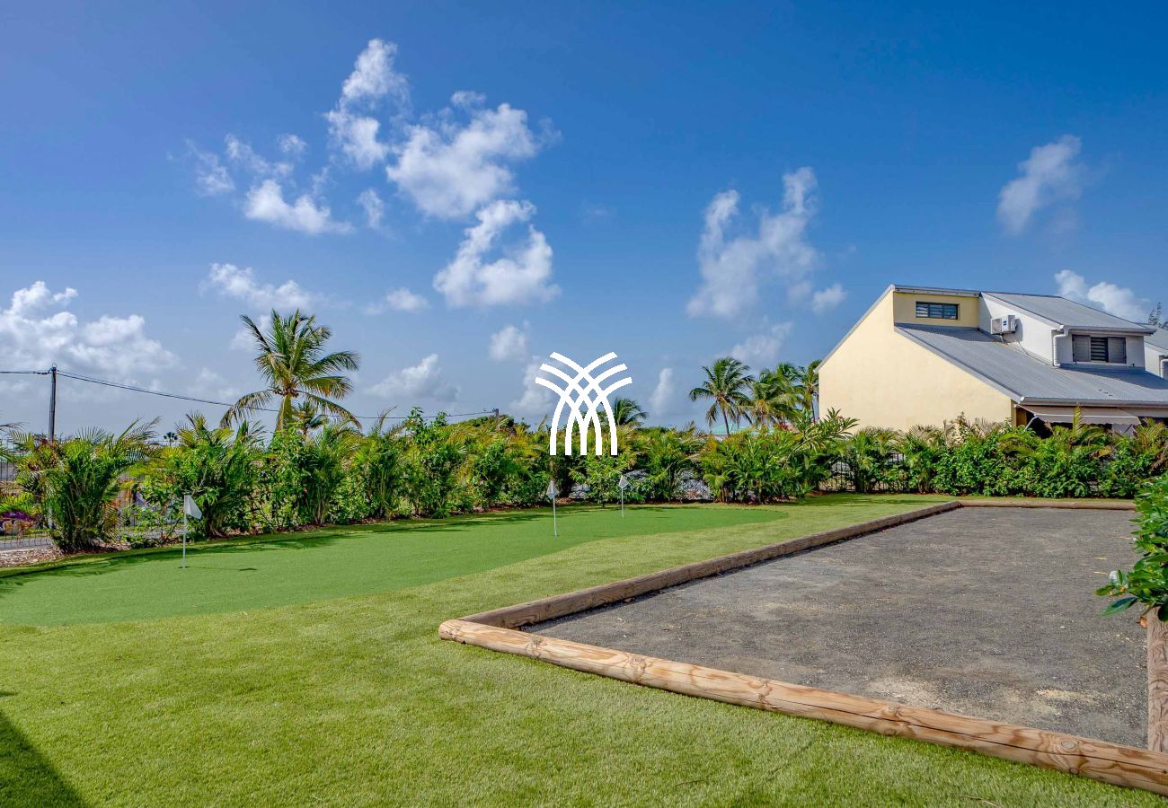 L'emplacement privilégié de la Villa Karucot vous permet de rejoindre à pied la célèbre plage des Raisins Clairs en seulement deux minutes, ainsi que des commerces essentiels tels qu'une boulangerie, une supérette, des restaurants et un institut de beauté. À seulement dix minutes en voiture, le parcours de golf de Saint-François vous attend pour des parties mémorables dans un cadre tropical.