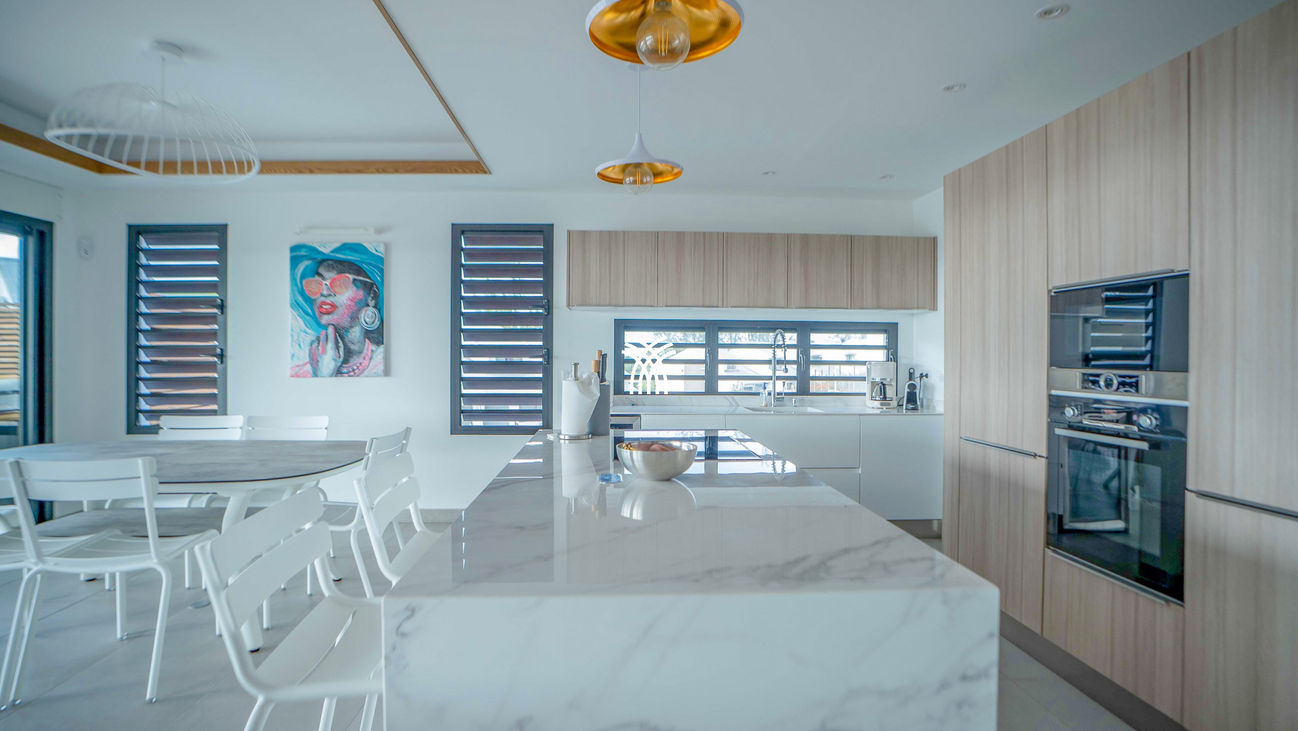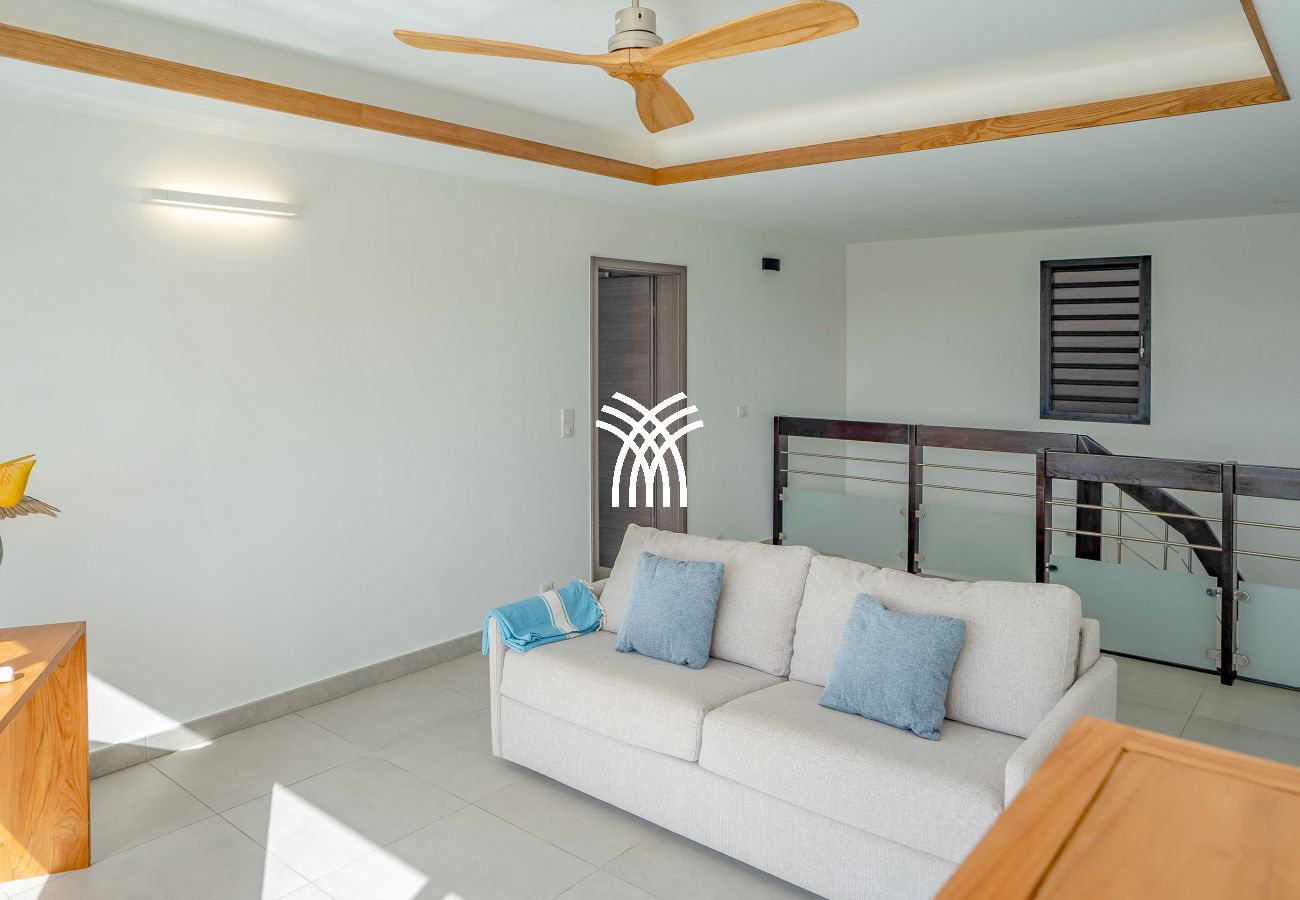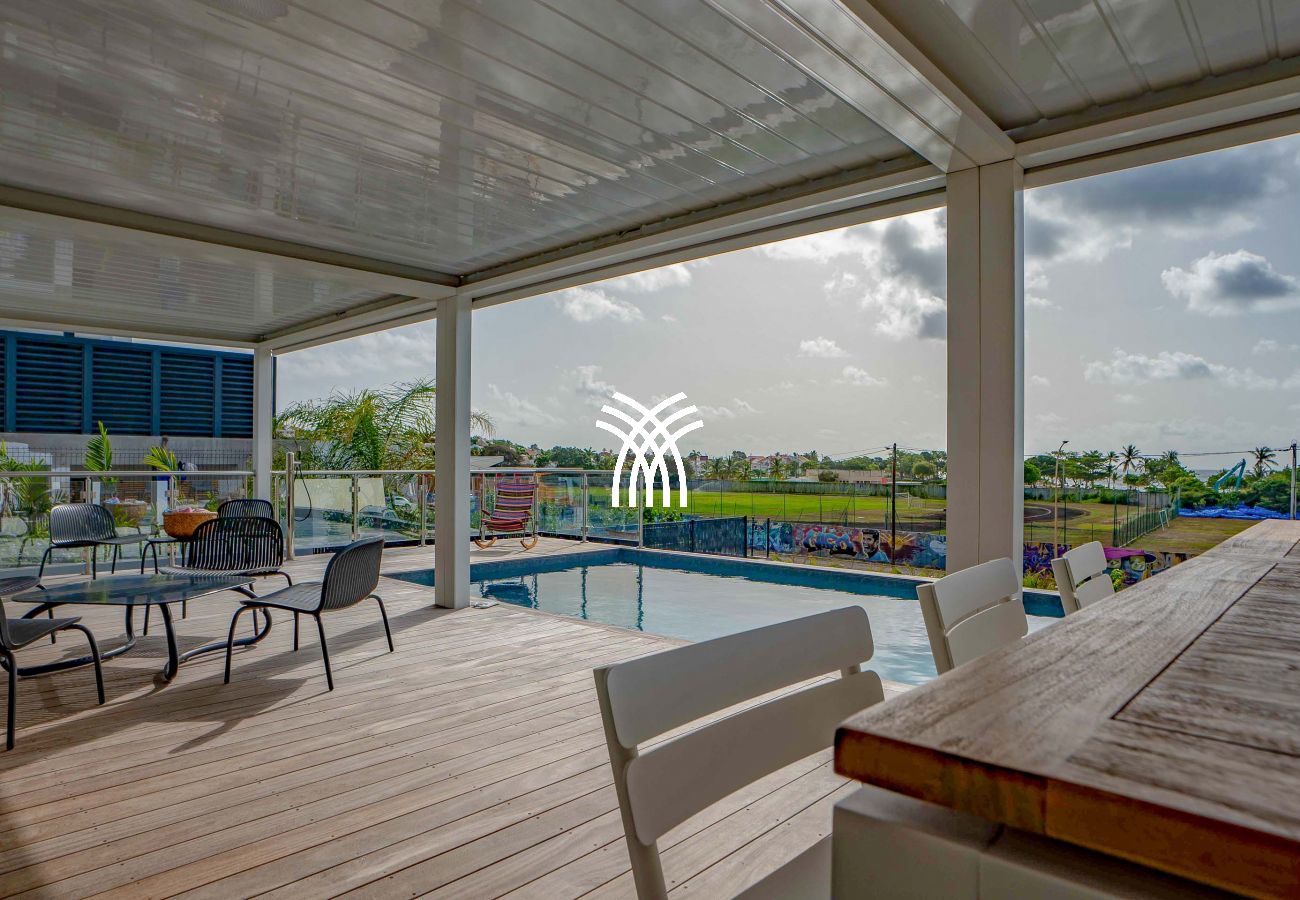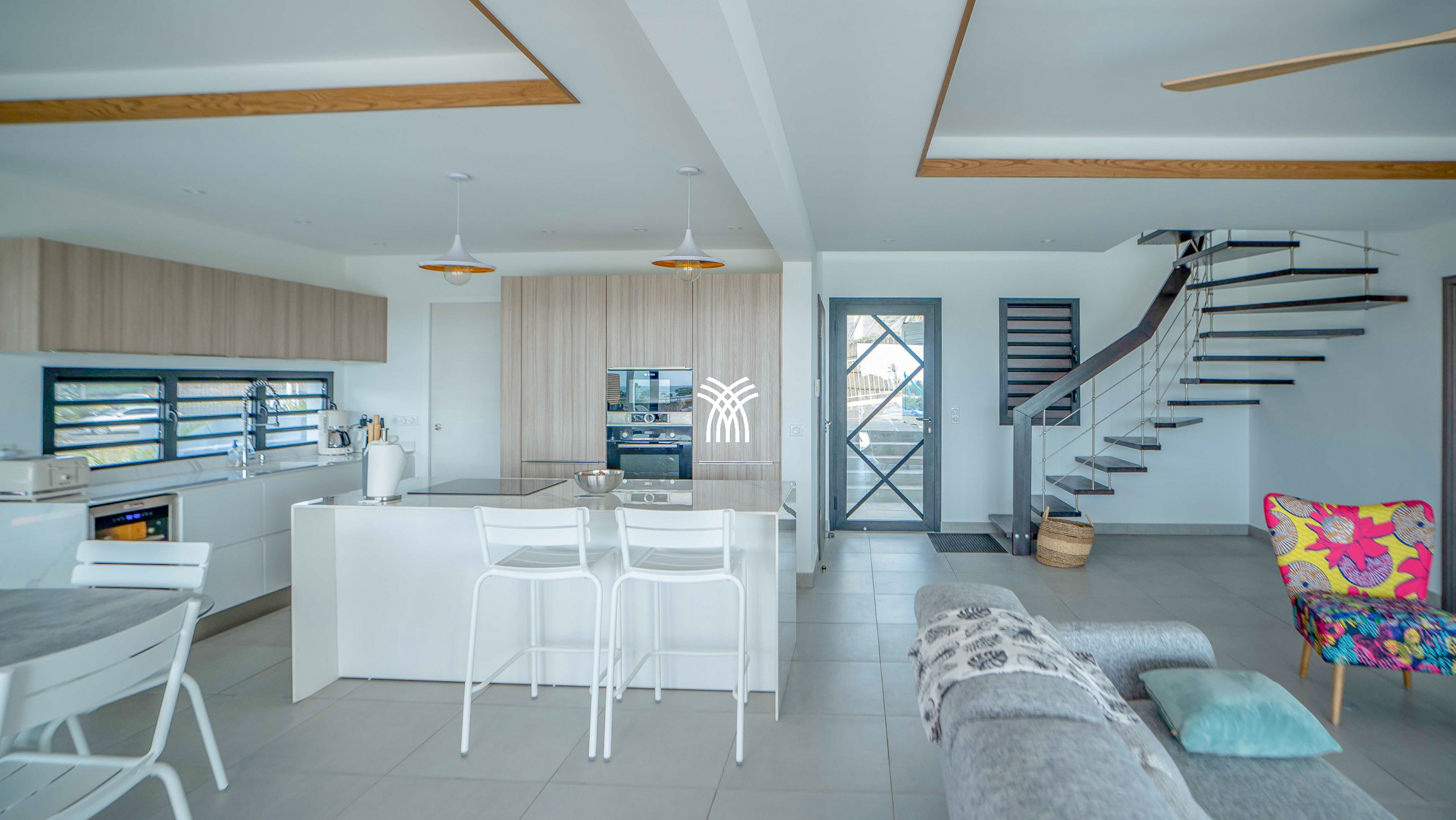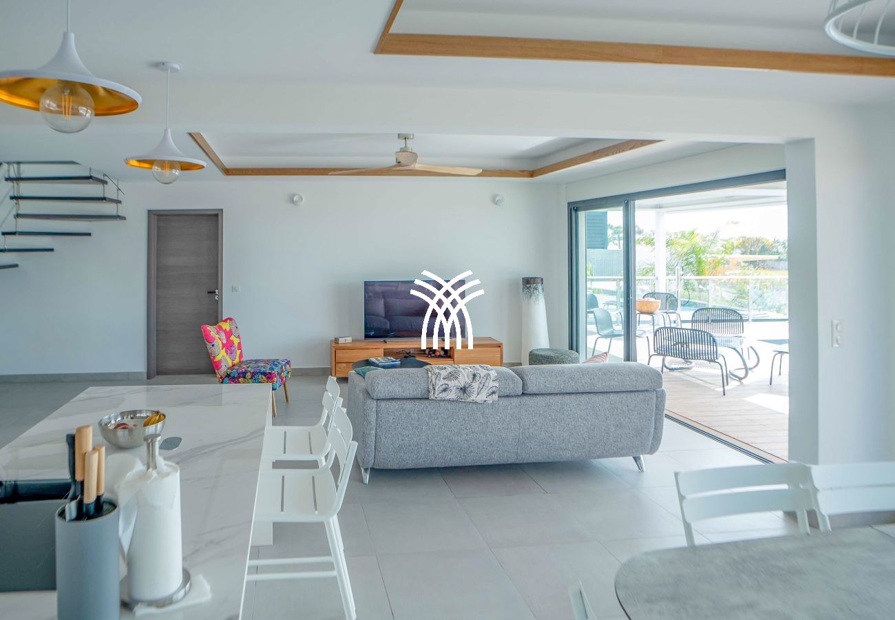 La Villa Katorz est une villa de charme en Guadeloupe située à Saint-François, offrant une vue mer panoramique et une belle piscine privée au sel de 5x10m. Pensée pour des séjours en toute sérénité, cette location de villa à Saint-François combine confort moderne et ambiance créole dans un cadre verdoyant et intime. La pièce de vie spacieuse s’ouvre sur une terrasse couverte donnant sur la piscine et un carbet, parfaits pour profiter de la douceur des soirées guadeloupéennes face à la mer.