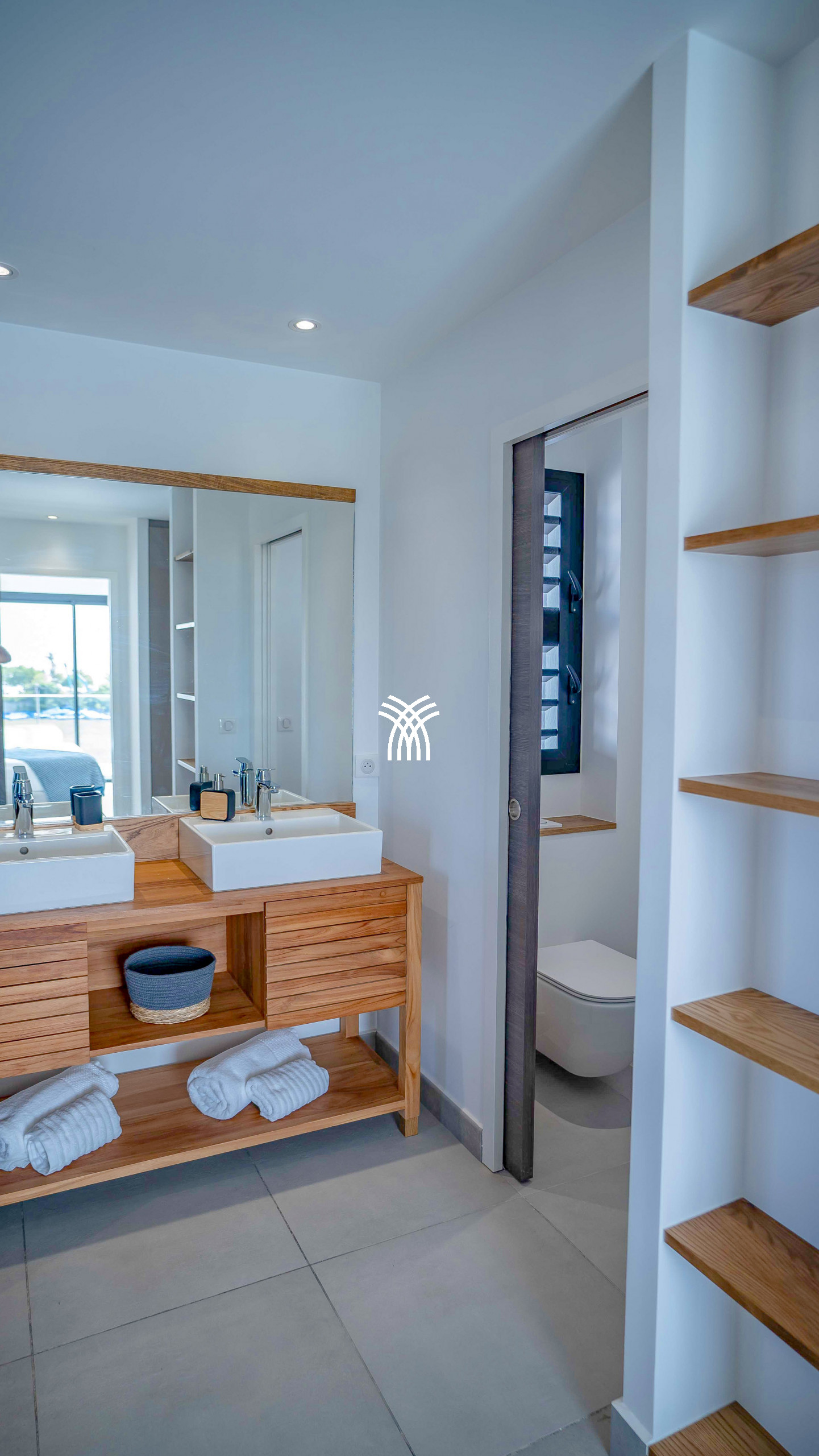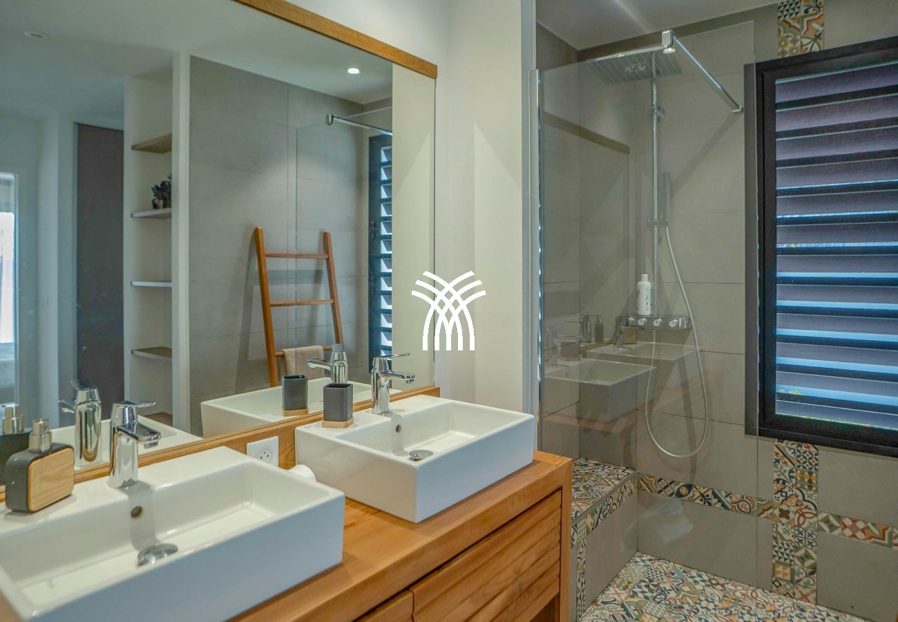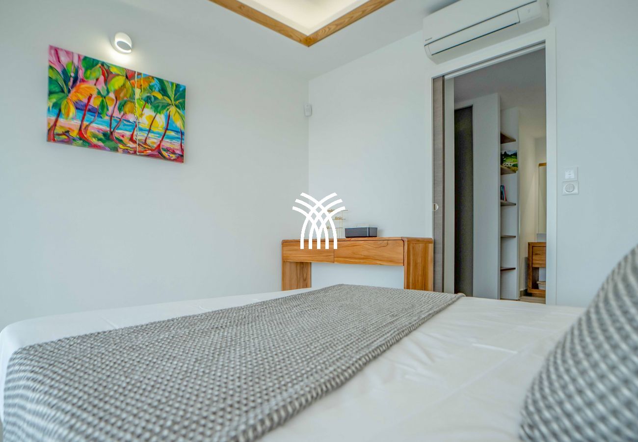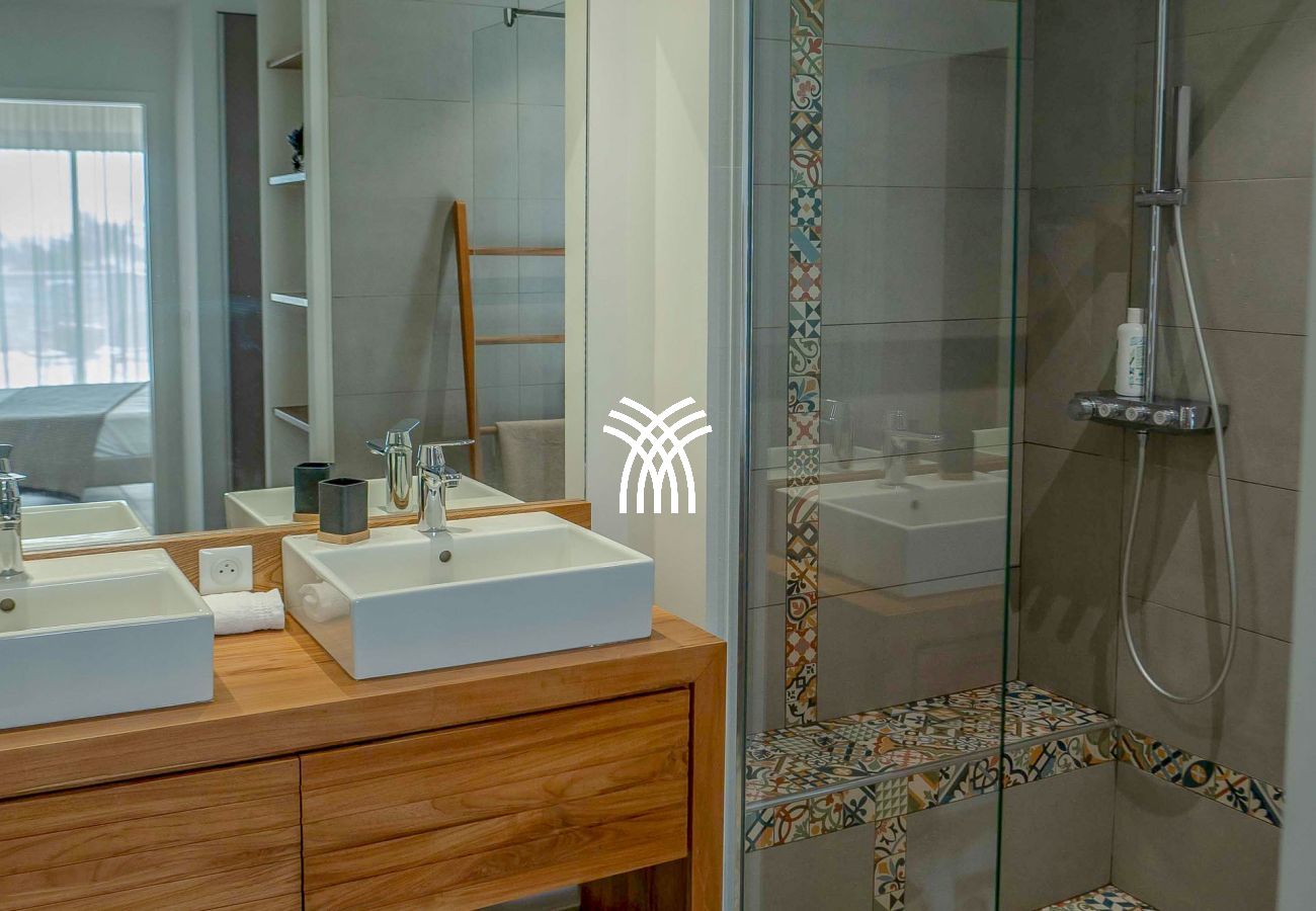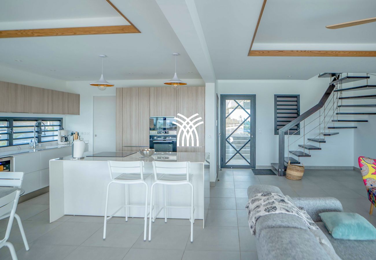 Avec sa vue imprenable sur la plage des Raisins Clairs, la Villa Karucot propose trois chambres spacieuses, chacune avec sa propre salle de bains privative, garantissant intimité et confort à chaque client. Les espaces de vie sont conçus avec soin et mettent en valeur un mobilier contemporain et élégant. La cuisine entièrement équipée est idéale pour préparer des repas gastronomiques, et la villa dispose également d'un lave-linge et d'un sèche-linge pour votre confort.
