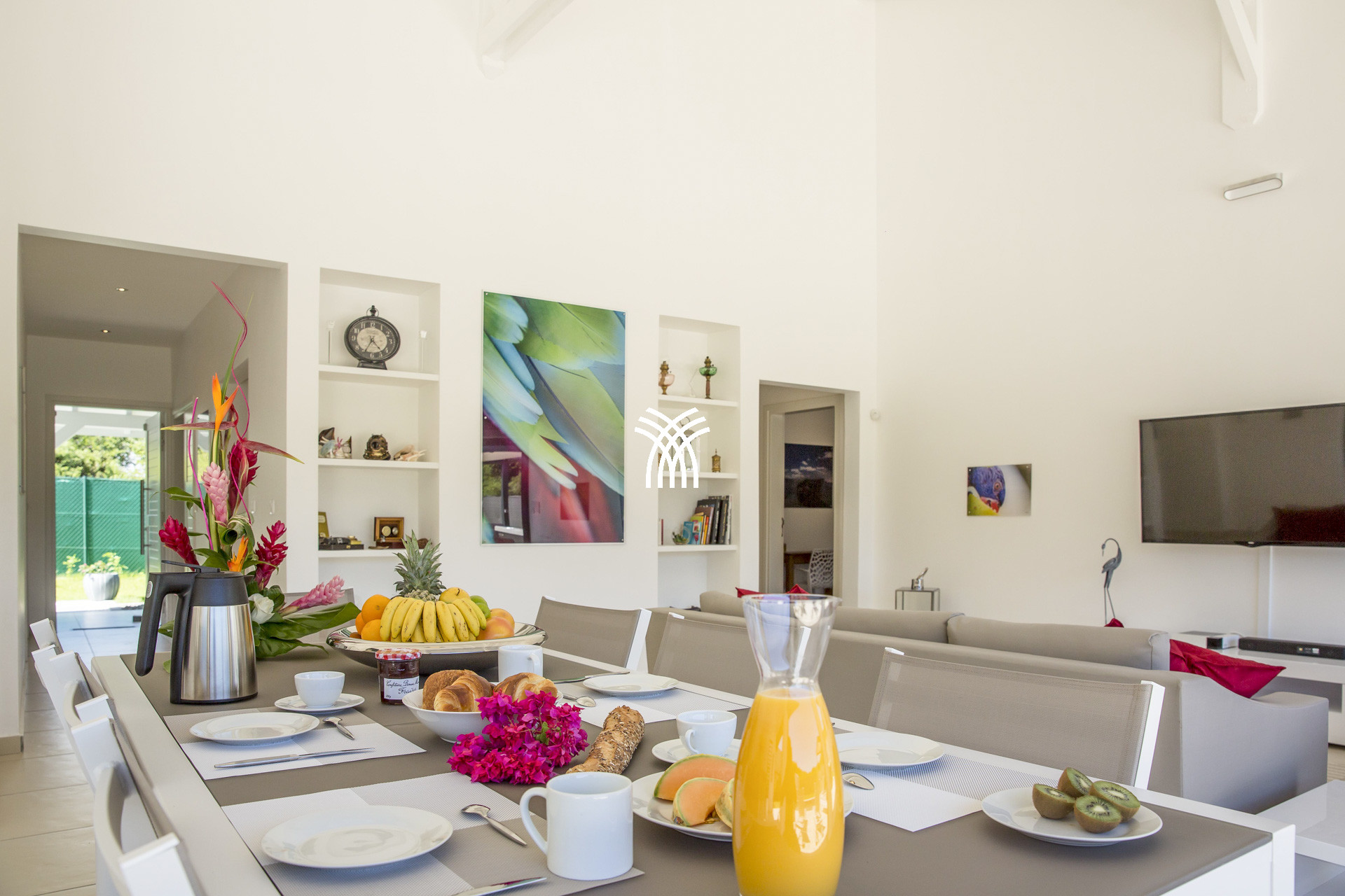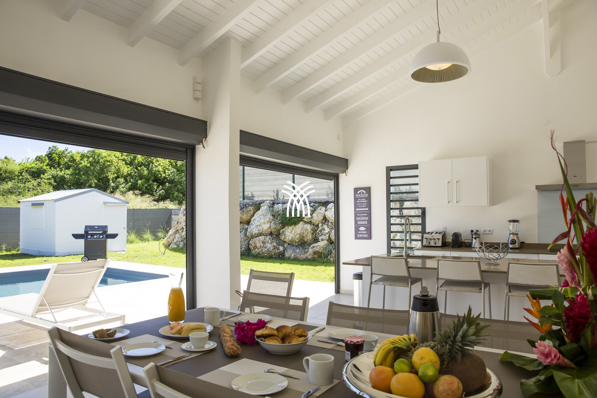 La cuisine américaine toute équipée s'ouvre sur le salon et la terrasse pour des moments farniente garantis. La jacuzzi est un des plus de cette villa qui fera le bonheur de tous les invités. La villa Bellini Guadeloupe, proche des plus belles plages comme Anse à la Gourde, plage des Salines, vous invite à la détente pour des vacances sous le signe de la relaxation.