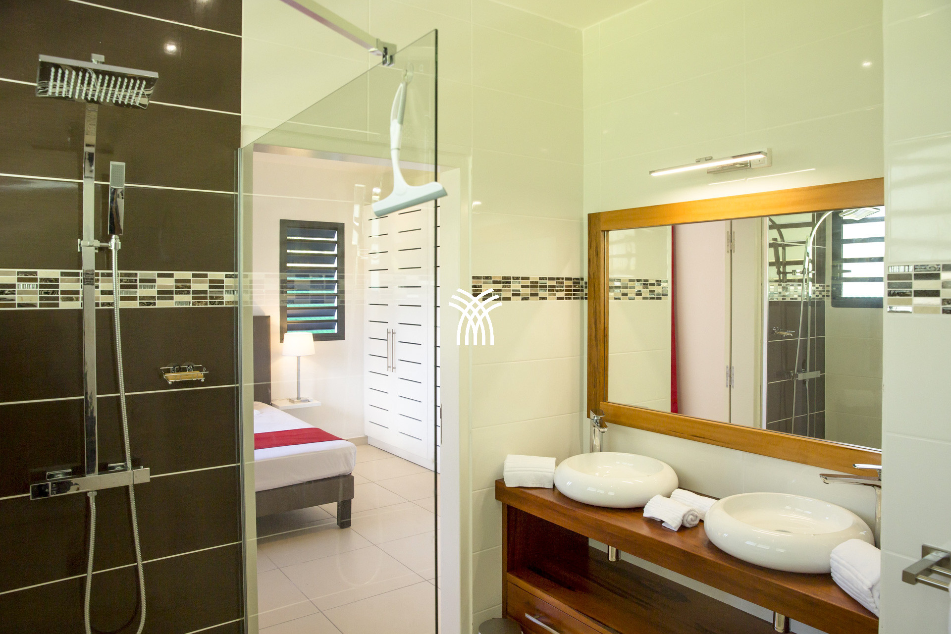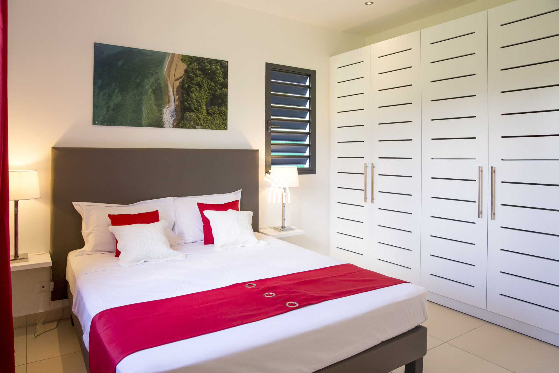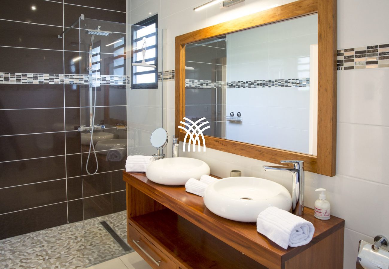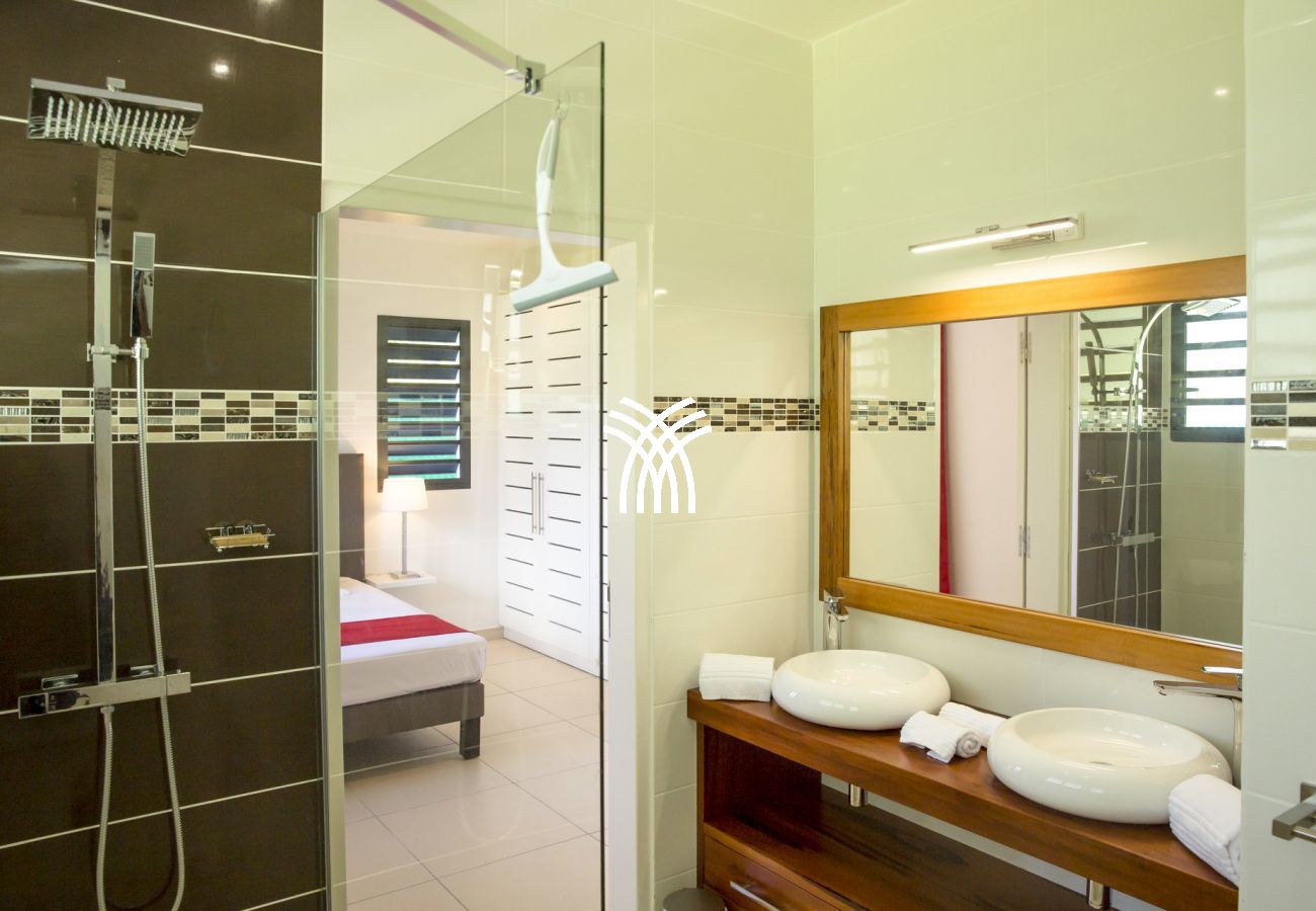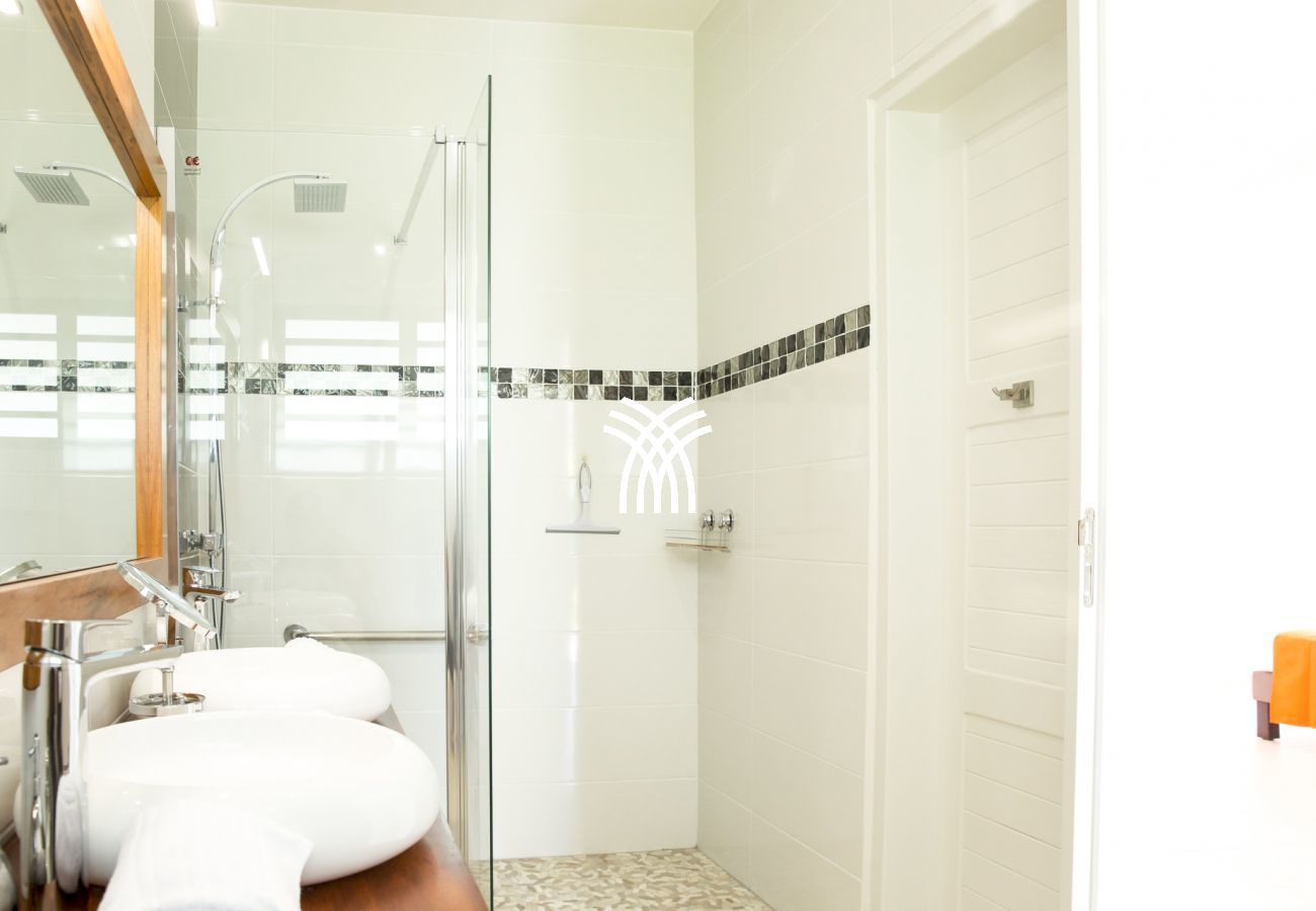 La villa Abawak, de plain-pied, dispose de 4 chambres climatisées décorées avec goût pour offrir confort et sérénité. La suite parentale principale est un véritable cocon avec lit king-size, dressing et salle d'eau privée. Une seconde suite parentale offre une expérience unique avec une douche en plein air sous le ciel étoilé de la Guadeloupe.