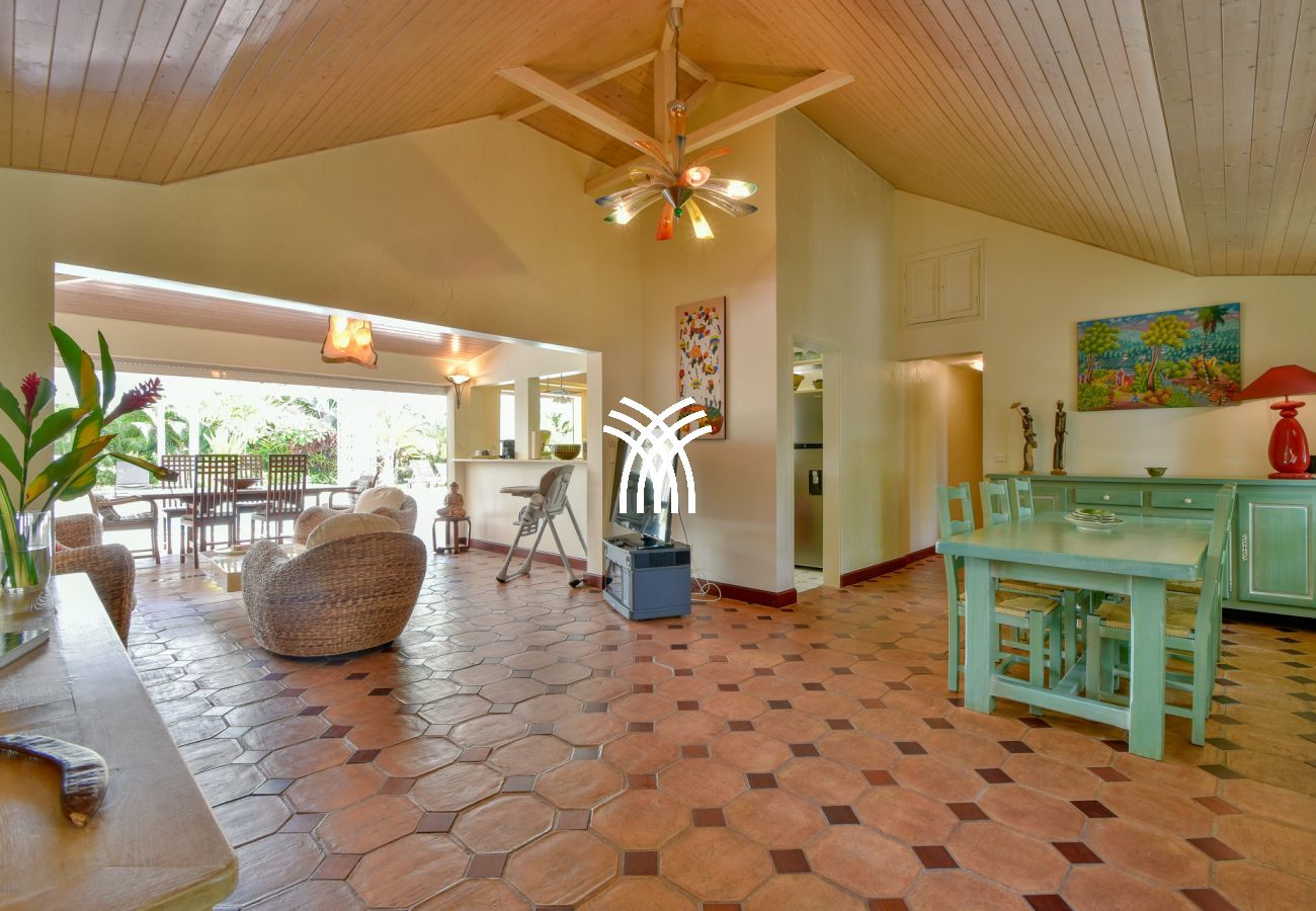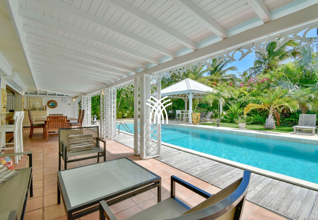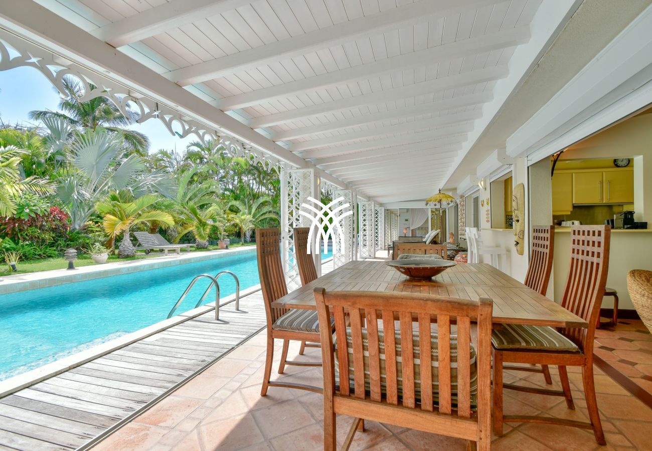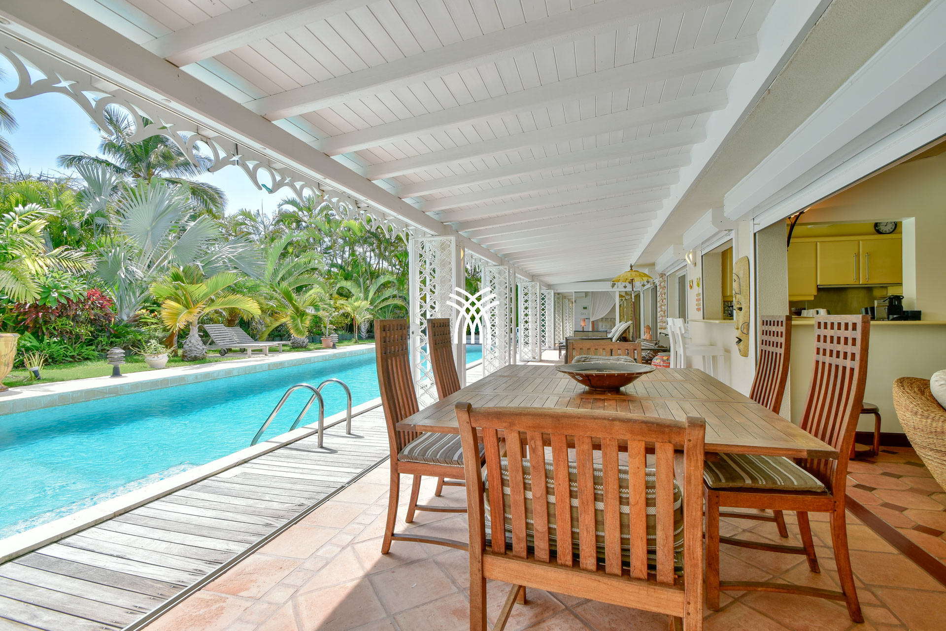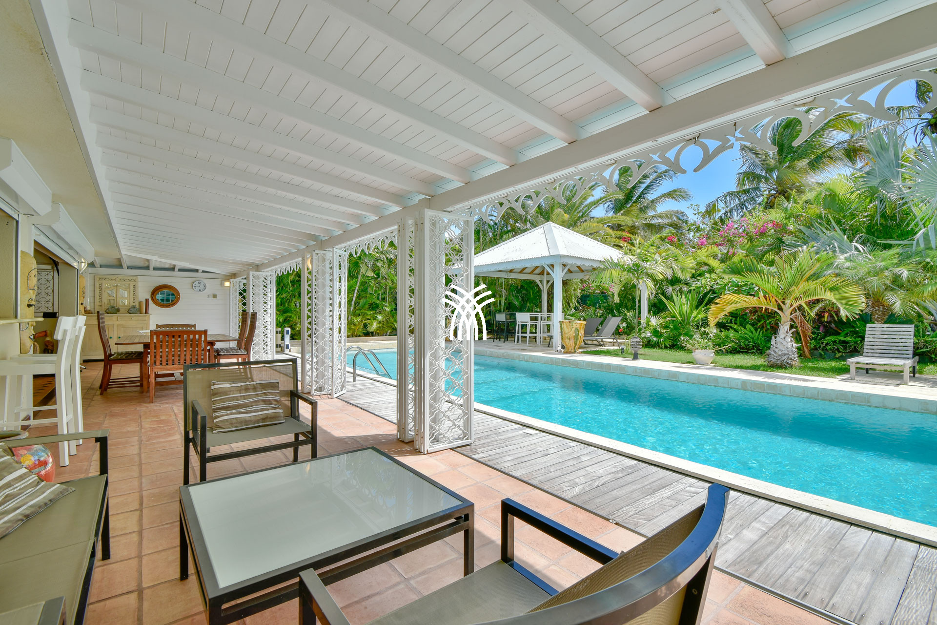 L’espace extérieur de la villa Abawak est idéal pour se retrouver en famille ou entre amis. La terrasse couverte permet de partager des repas avec vue sur la piscine au sel et le jardin tropical. Le carbet privé est parfait pour se relaxer autour d'un ti-punch ou de spécialités locales.