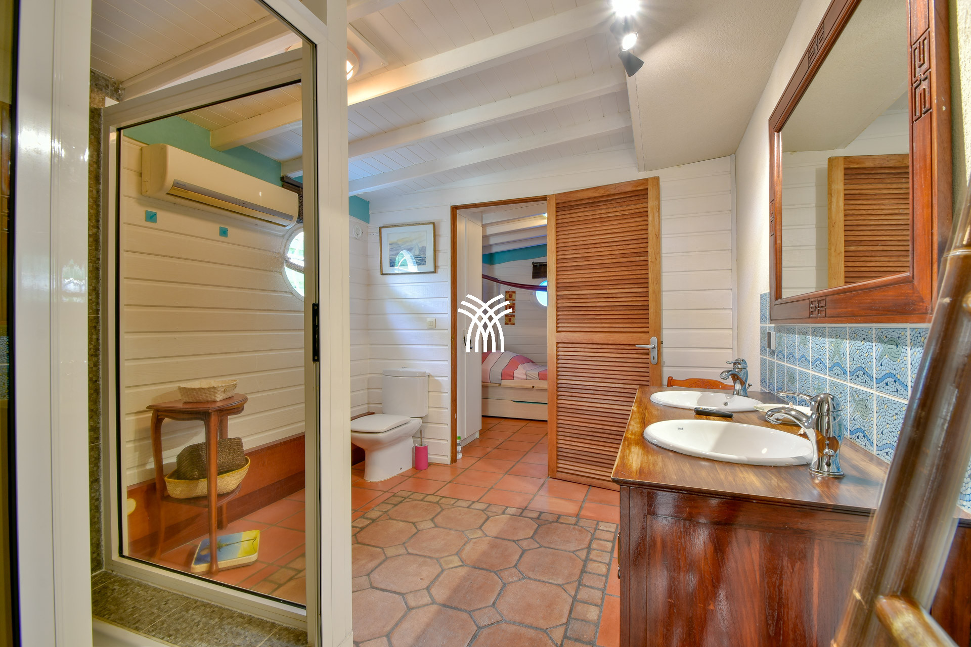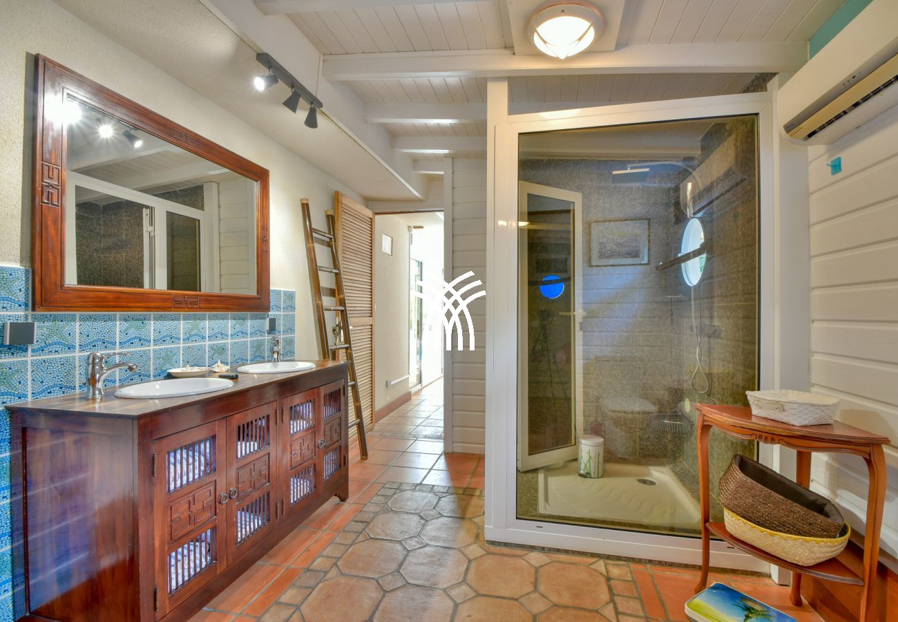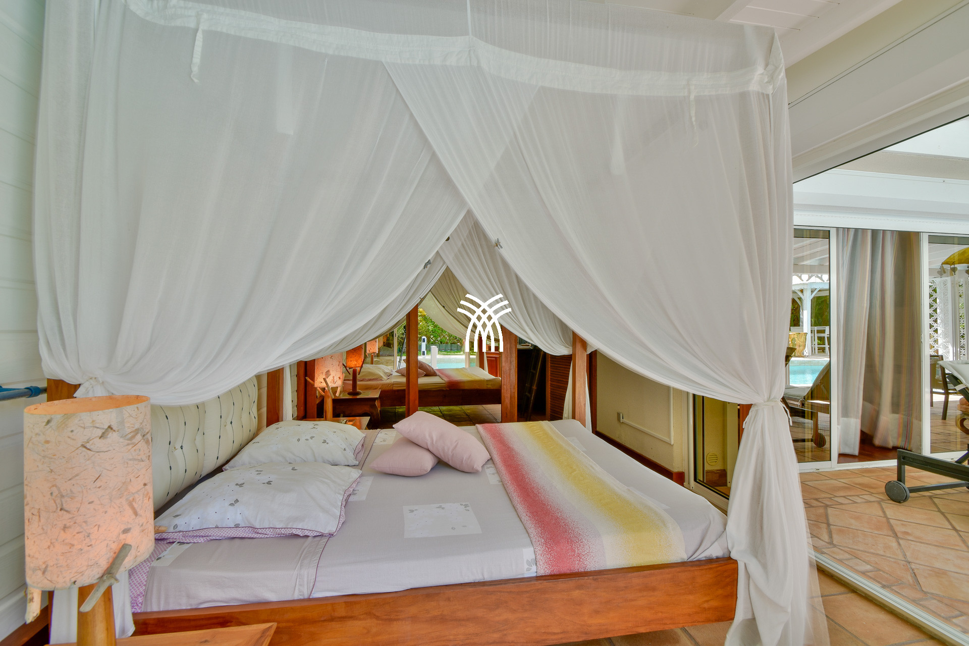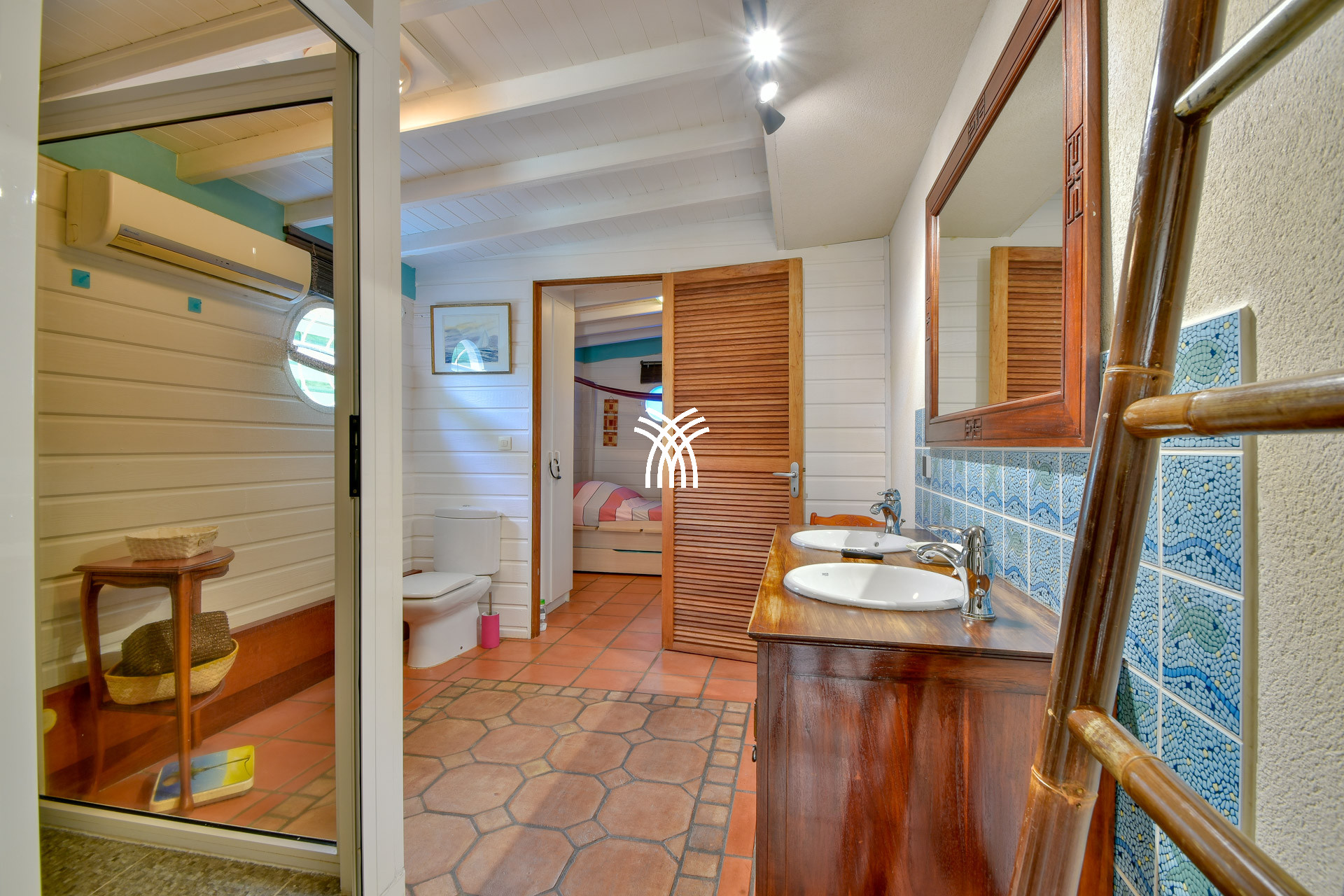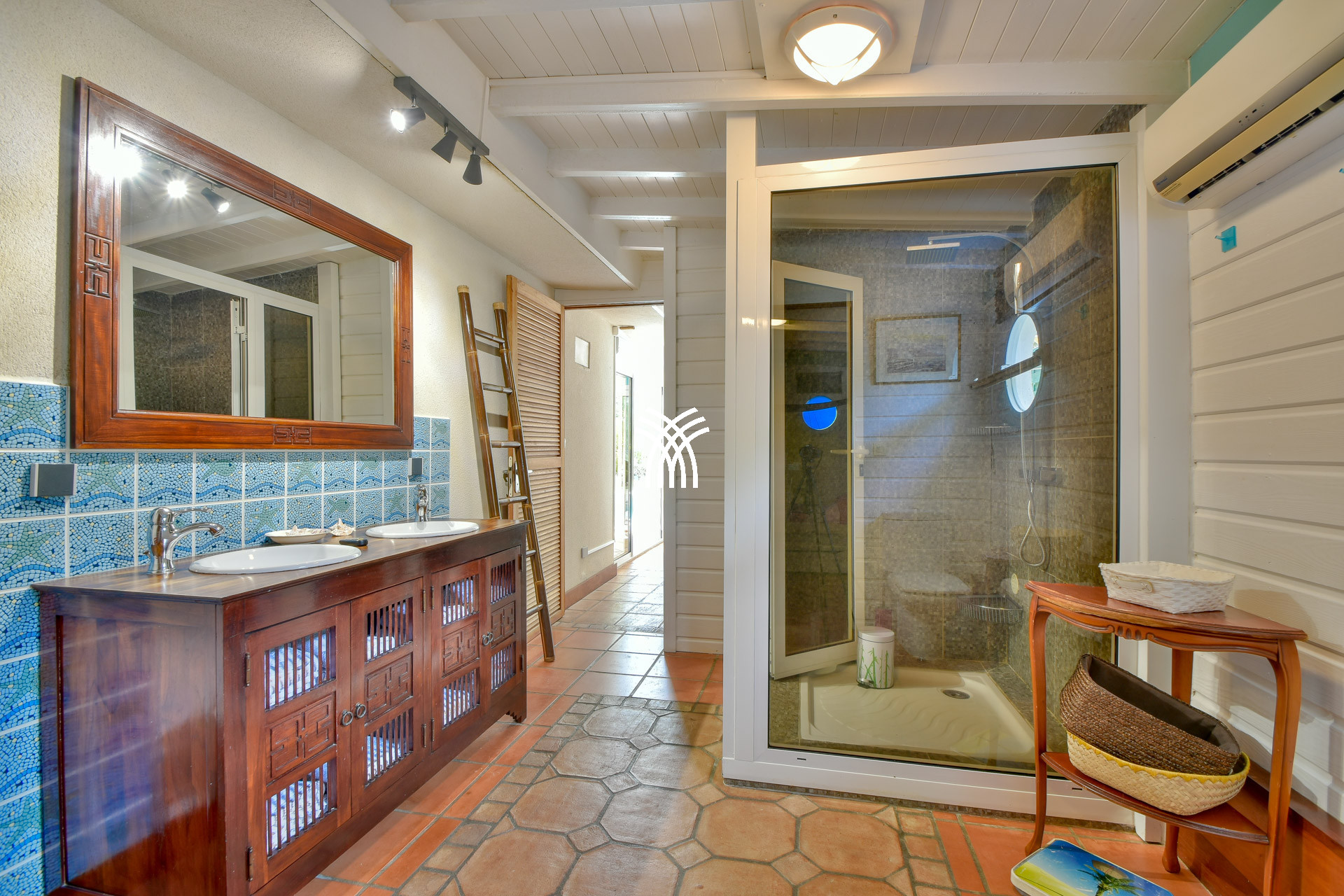 La villa Abawak, de plain-pied, dispose de 4 chambres climatisées décorées avec goût pour offrir confort et sérénité. La suite parentale principale est un véritable cocon avec lit king-size, dressing et salle d'eau privée. Une seconde suite parentale offre une expérience unique avec une douche en plein air sous le ciel étoilé de la Guadeloupe.