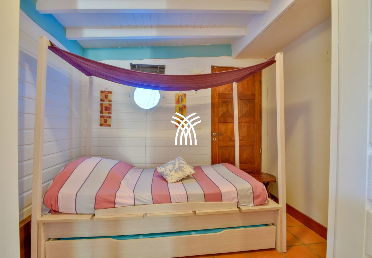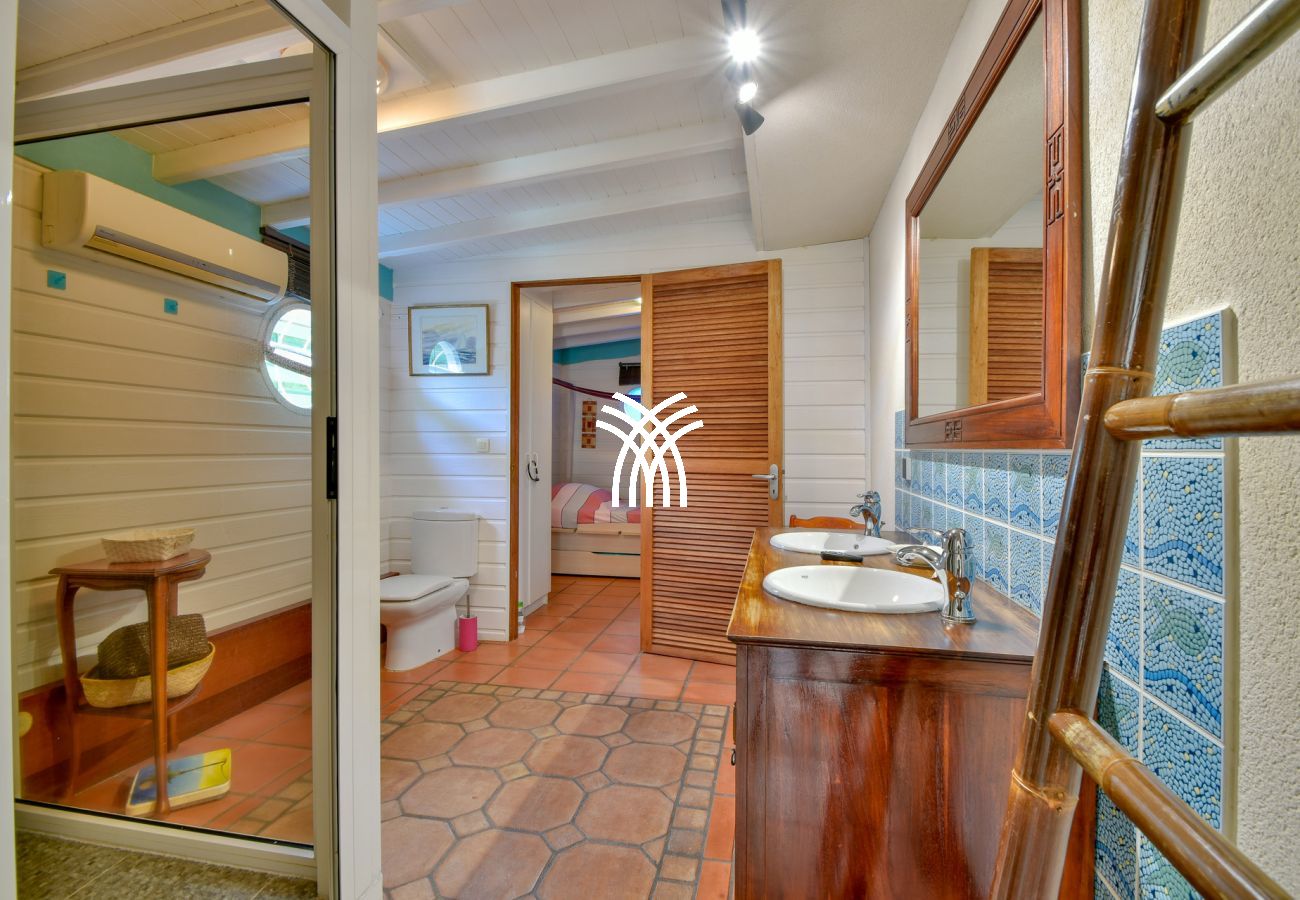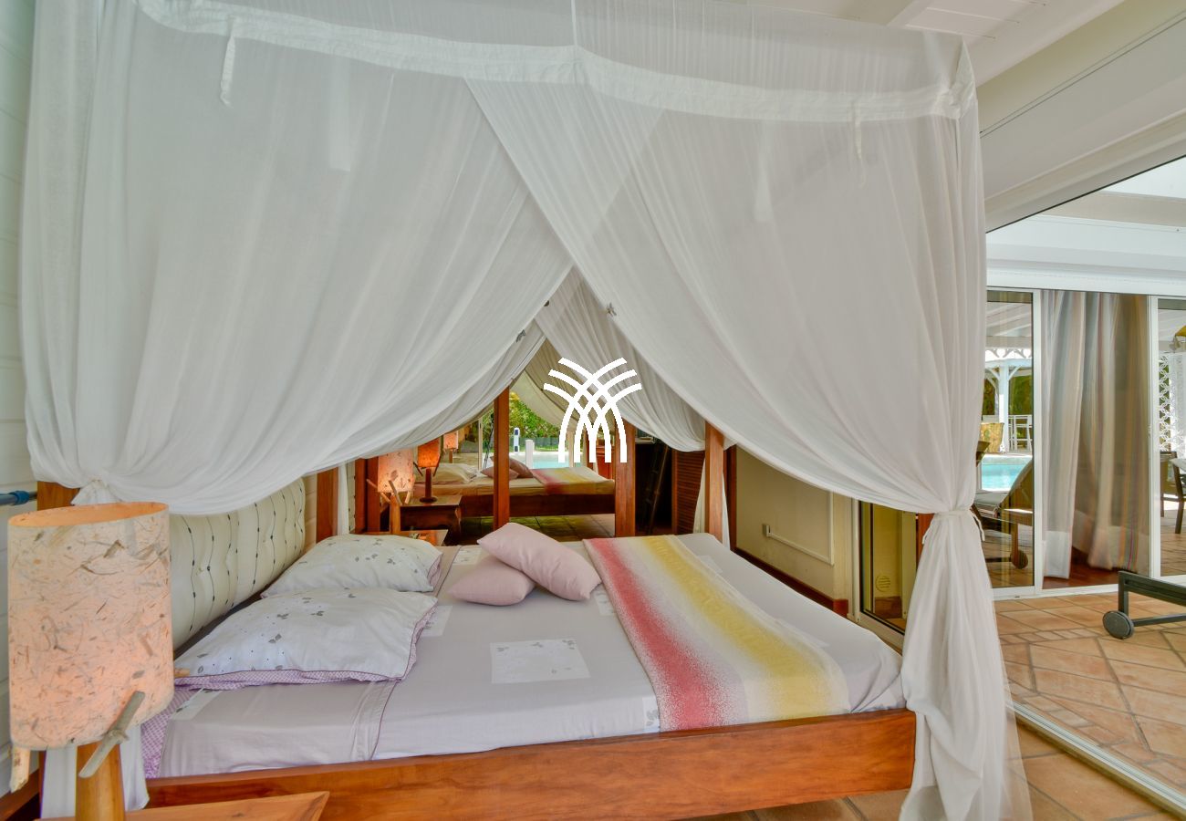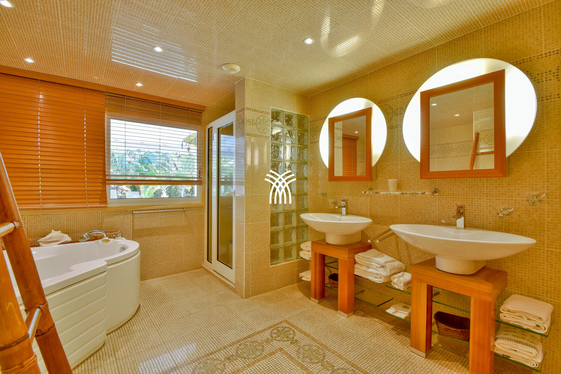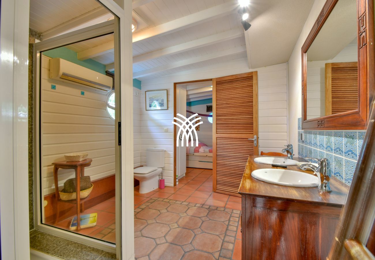La villa Abawak, de plain-pied, dispose de 4 chambres climatisées décorées avec goût pour offrir confort et sérénité. La suite parentale principale est un véritable cocon avec lit king-size, dressing et salle d'eau privée. Une seconde suite parentale offre une expérience unique avec une douche en plein air sous le ciel étoilé de la Guadeloupe.