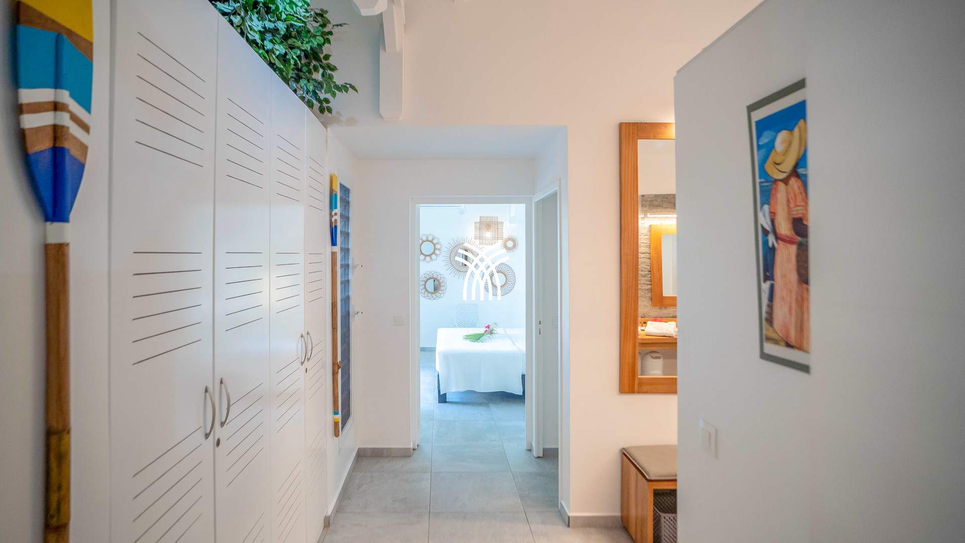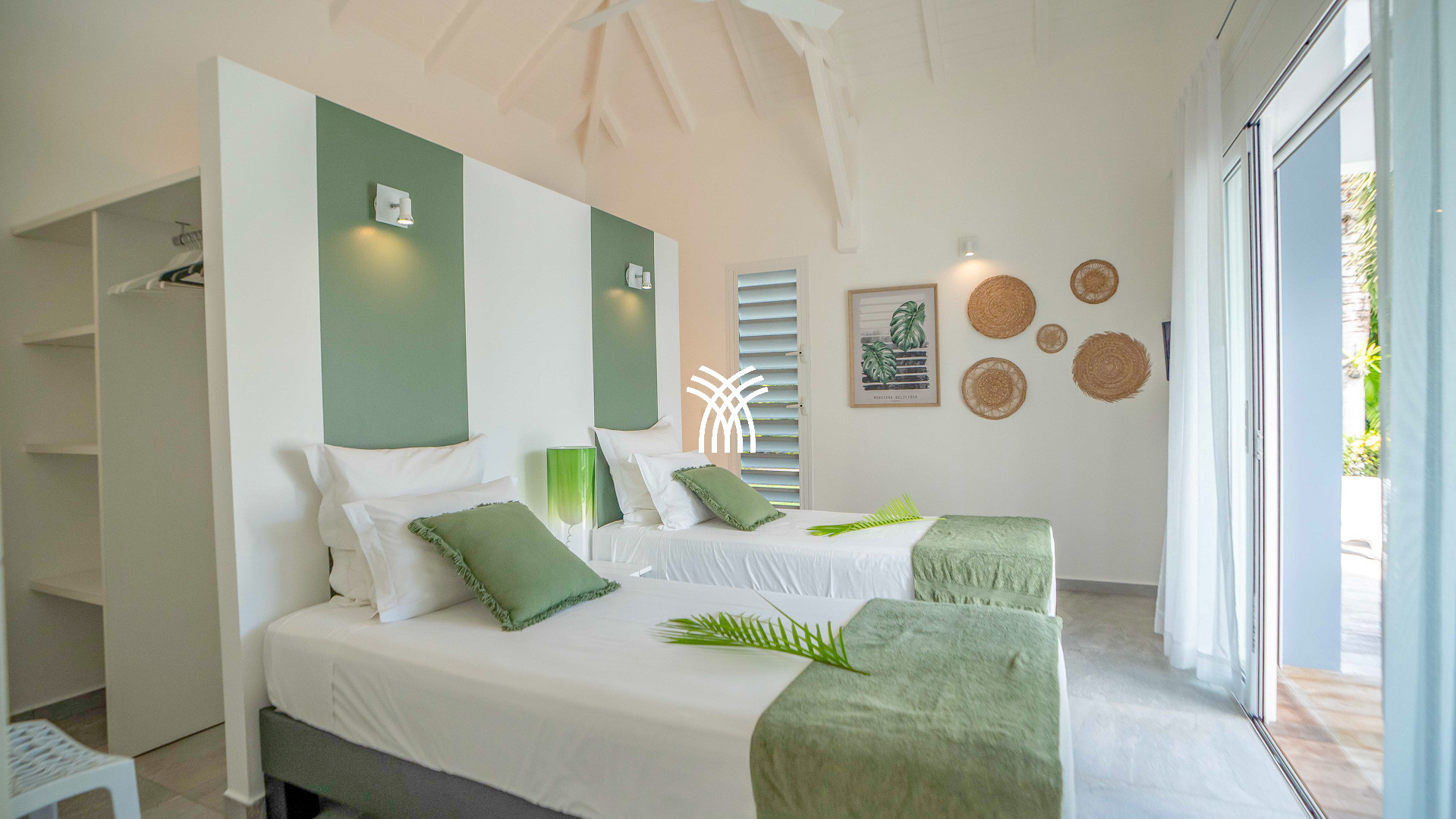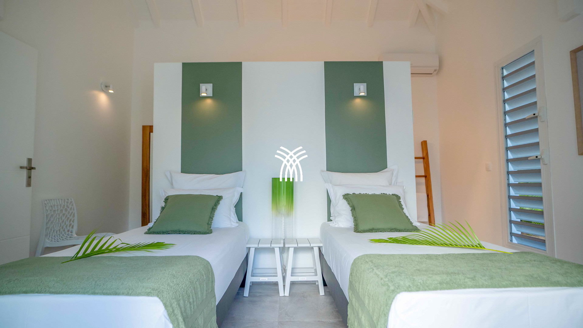 Les deux chambres jumelles, avec lits queen-size, s'ouvrent sur une galerie couverte et partagent une salle d'eau moderne.
