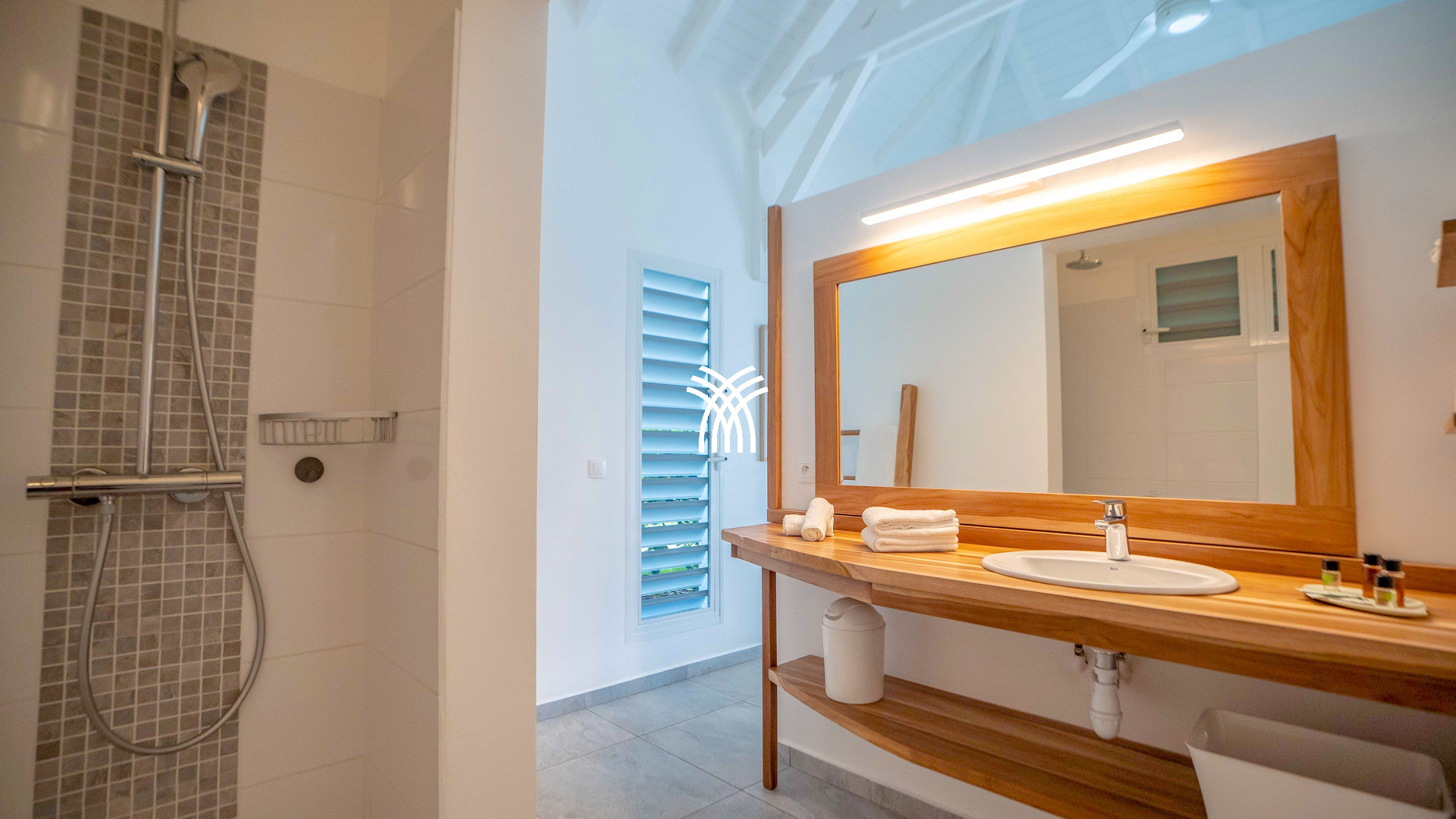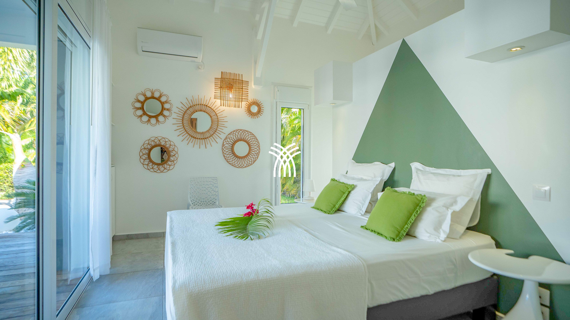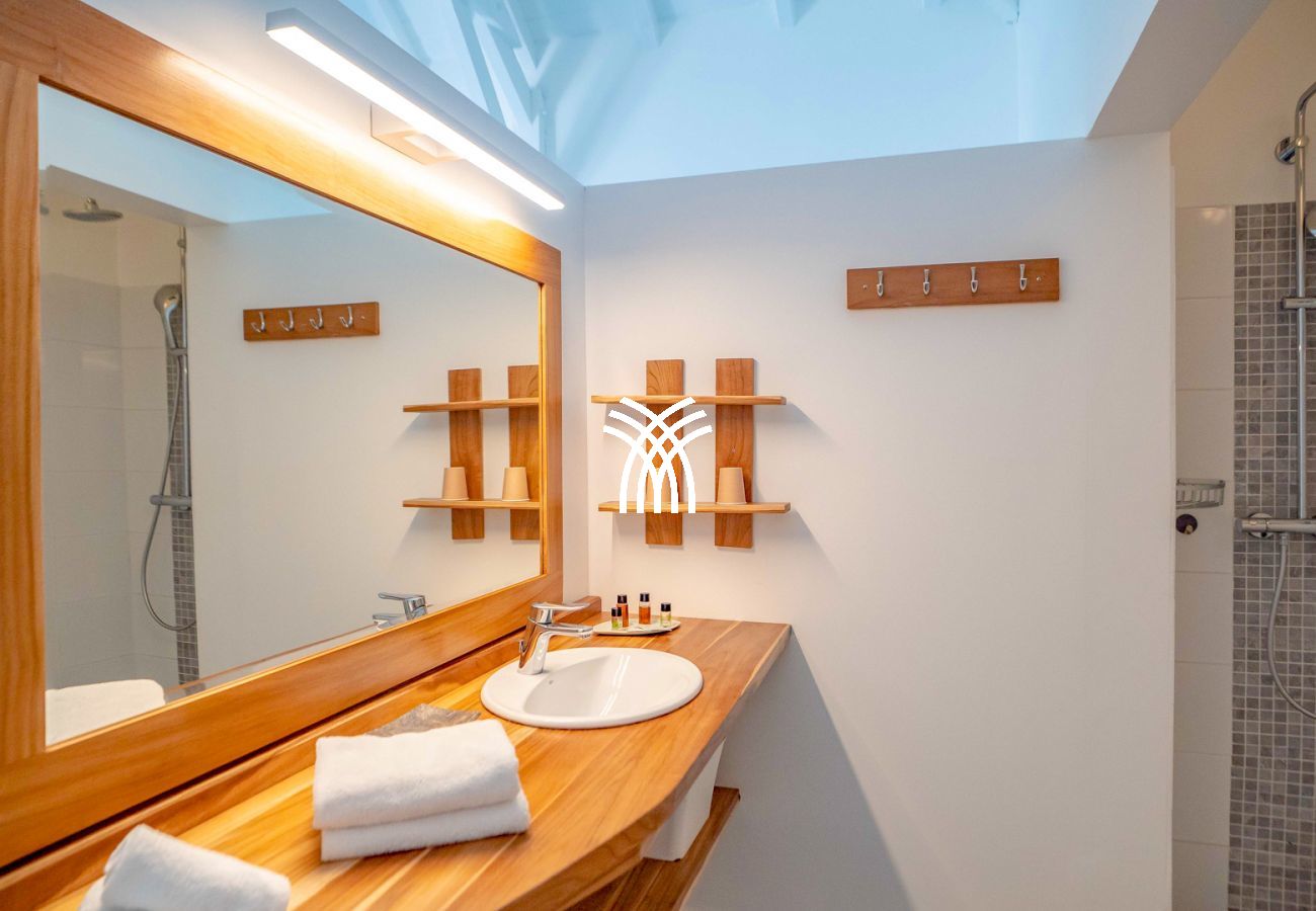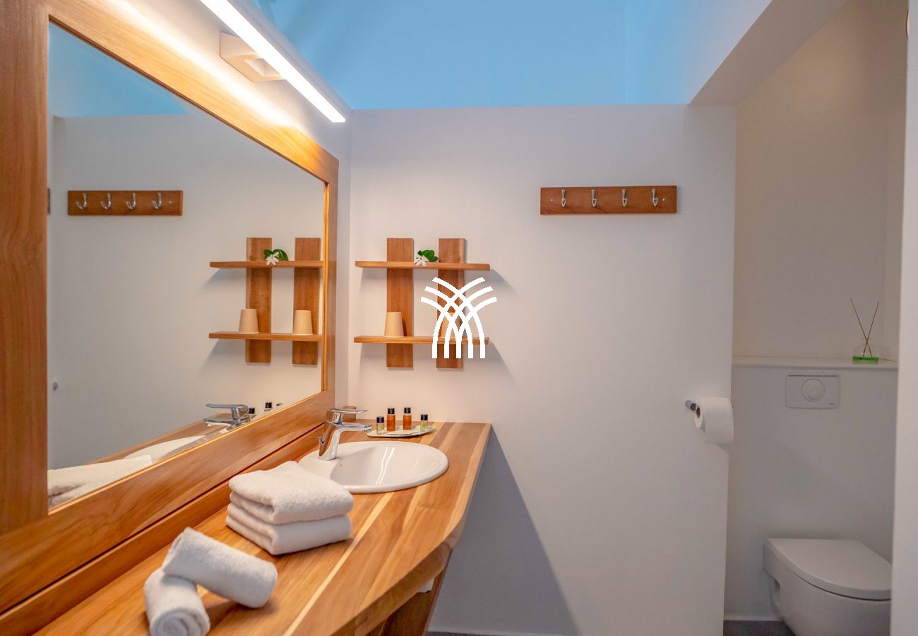 La villa Abawak, de plain-pied, dispose de 4 chambres climatisées décorées avec goût pour offrir confort et sérénité. La suite parentale principale est un véritable cocon avec lit king-size, dressing et salle d'eau privée. Une seconde suite parentale offre une expérience unique avec une douche en plein air sous le ciel étoilé de la Guadeloupe.