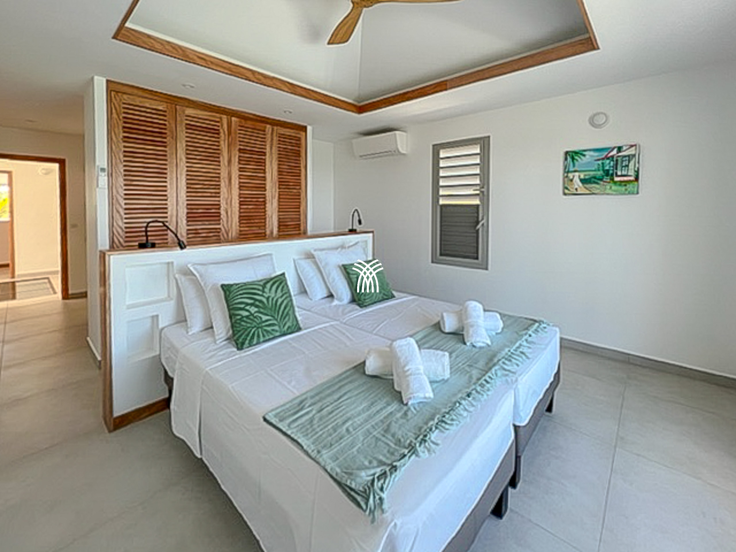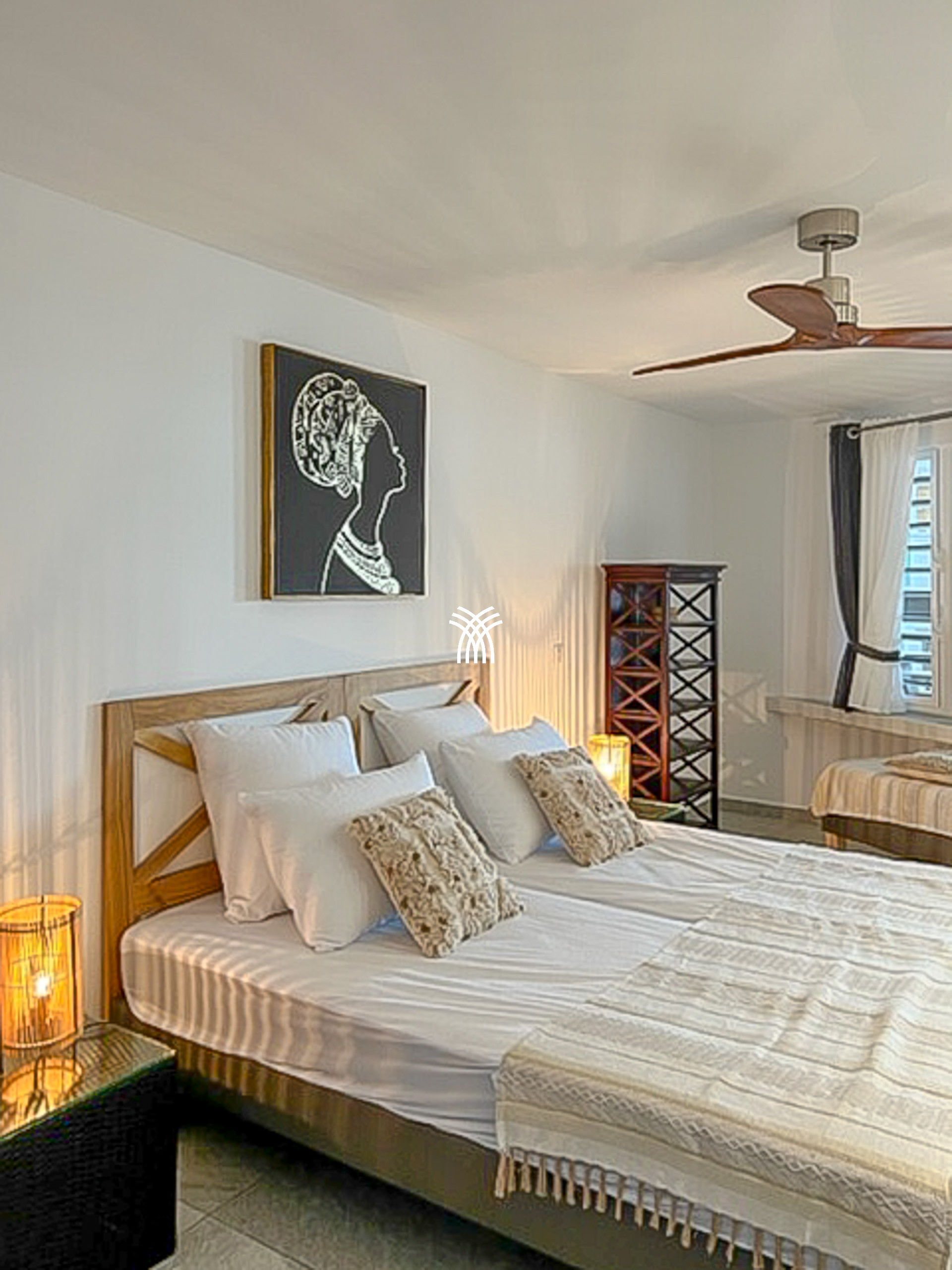 Lits simples (90x190), air conditionné, salle de bains avec douche et WC, moustiquaire, dressing