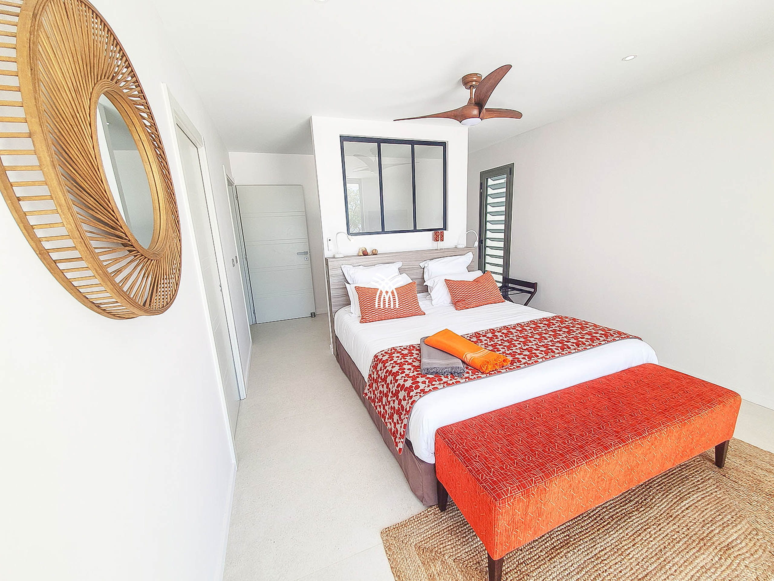 La villa Abawak, de plain-pied, dispose de 4 chambres climatisées décorées avec goût pour offrir confort et sérénité. La suite parentale principale est un véritable cocon avec lit king-size, dressing et salle d'eau privée. Une seconde suite parentale offre une expérience unique avec une douche en plein air sous le ciel étoilé de la Guadeloupe.