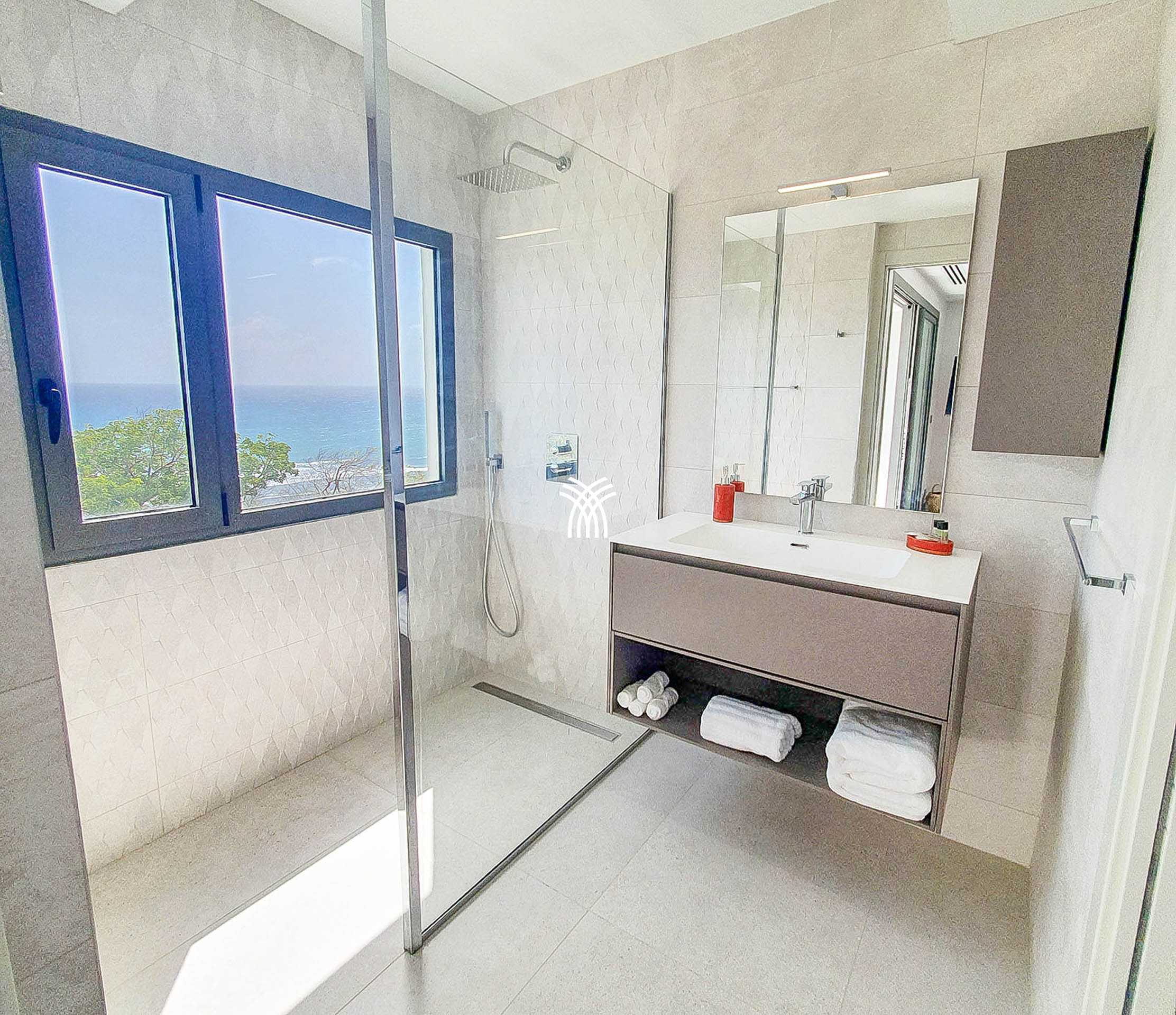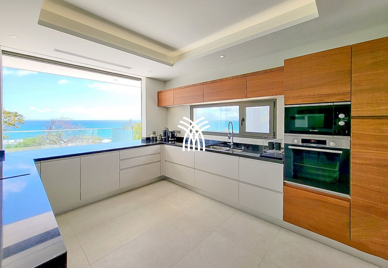 Le rez-de-chaussée dévoile une cuisine entièrement équipée, ouverte sur un salon lumineux et une salle à manger élégante, tous orientés vers l’horizon marin. La terrasse spacieuse est idéale pour partager des moments conviviaux autour d’un repas ou d’un apéritif, tandis que la piscine à débordement, se fondant visuellement dans l’océan, offre une expérience inoubliable de détente et de luxe.